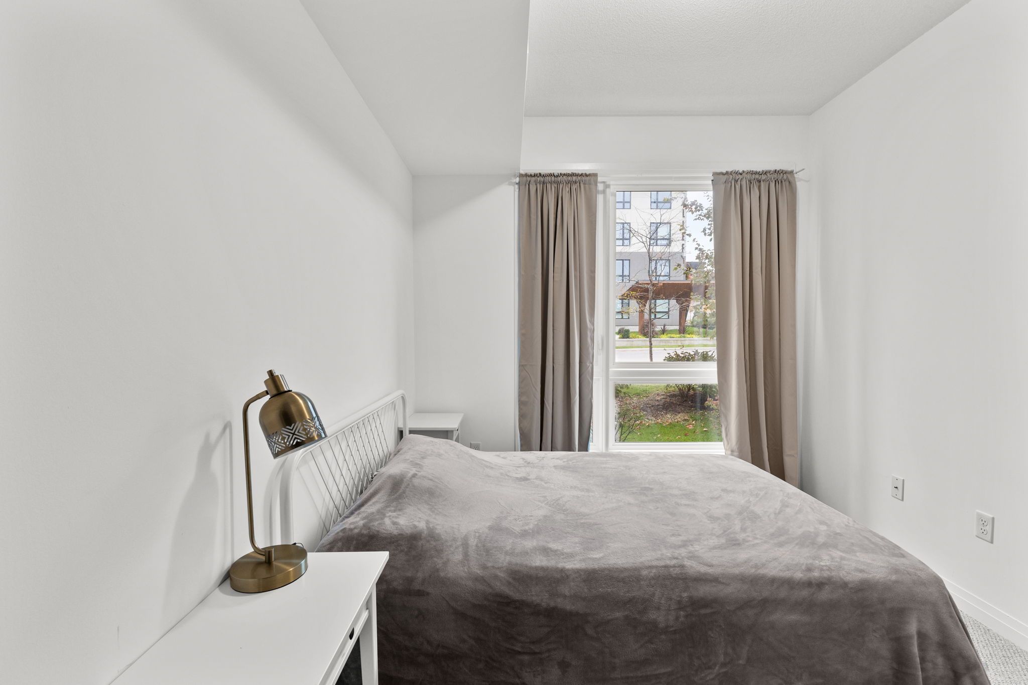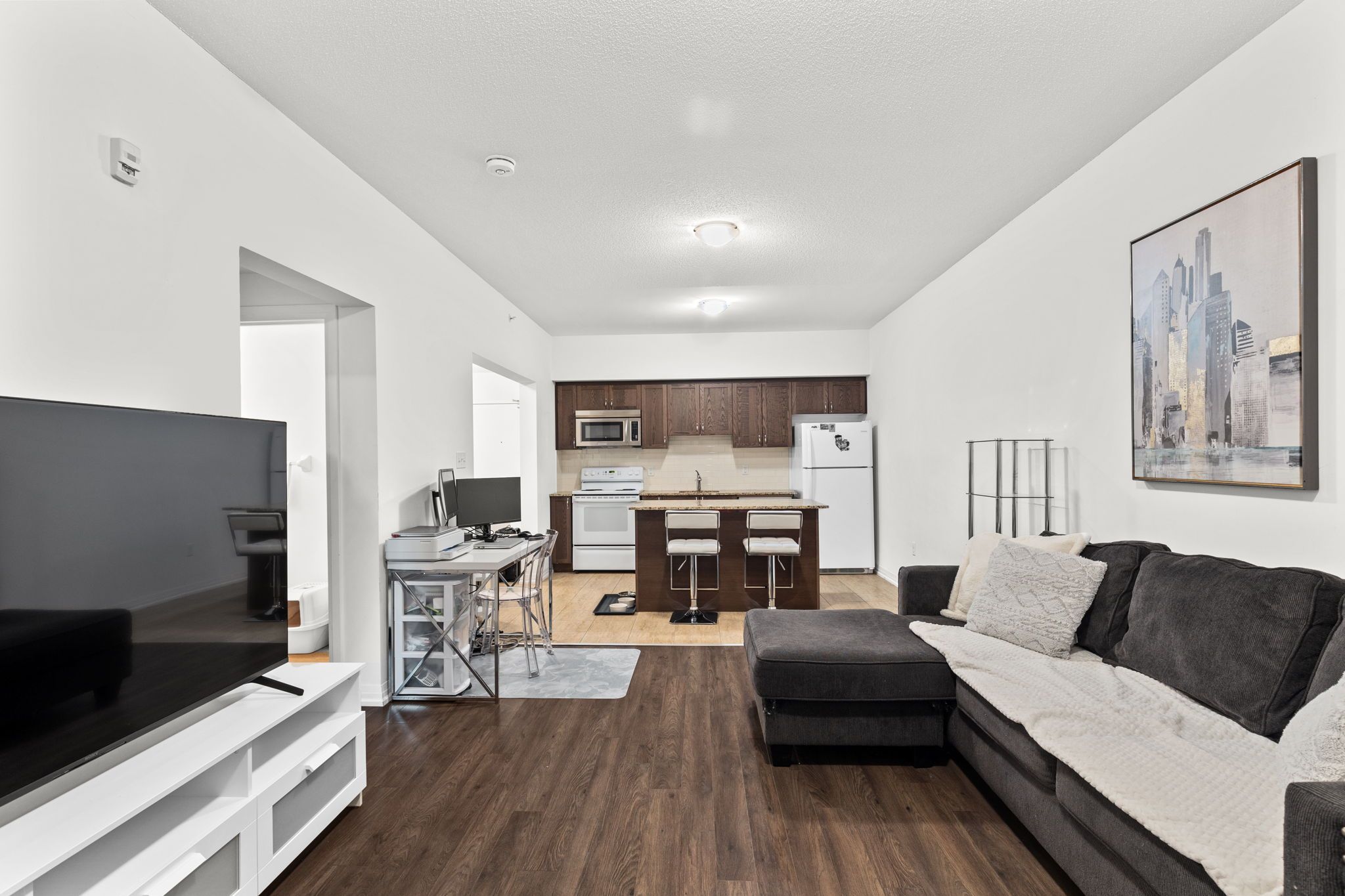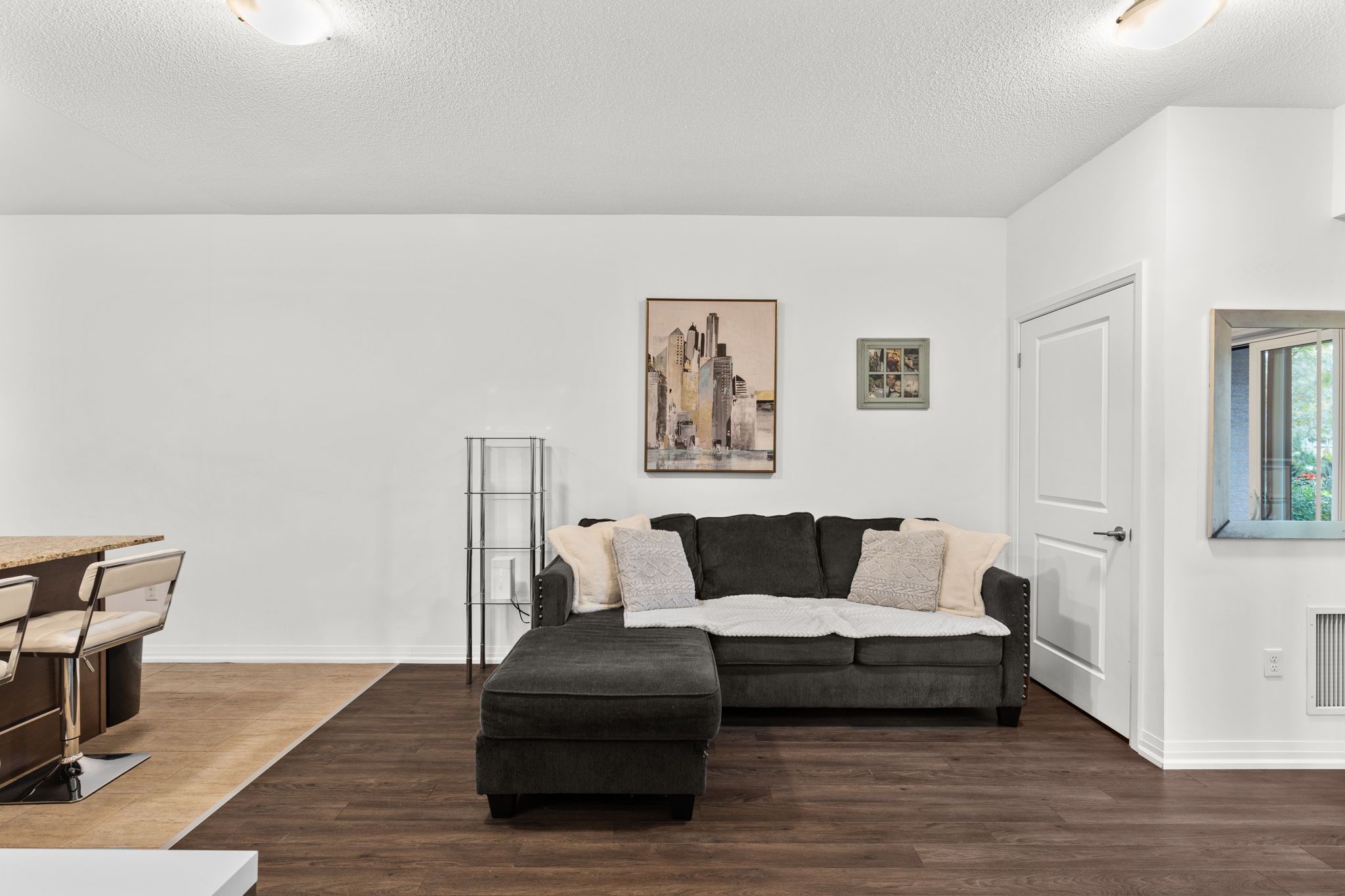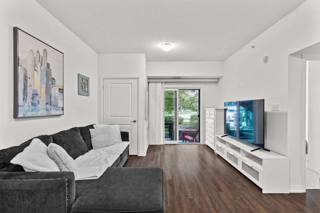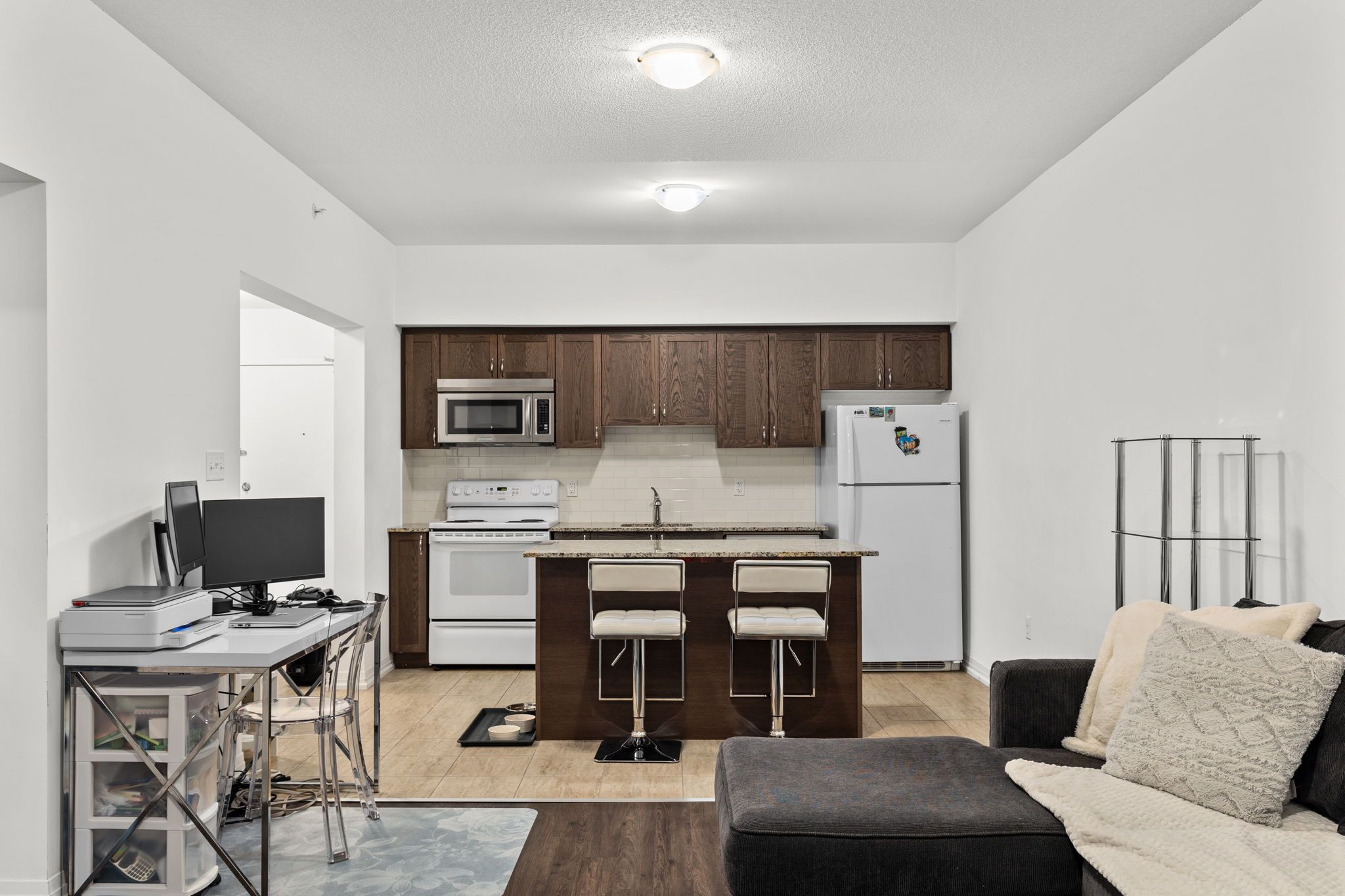 Presenting 300 Essa unit 103. Experience all the benefits of condo living with the added bonus of not needing to use the elevator! This 1 bed, 1 bath suite offers modern comfort and style. Features include a spacious bedroom, a sleek bathroom, and an open concept kitchen. Ensuite laundry and plenty of storage space within the unit as well as exclusive use of a locker on site. Appreciate the luxury of underground parking and never have to shovel snow off your car again! Enjoy a private terrace and access to the exclusive 11,000 sqft rooftop patio! Conveniently located near shopping and transportation, don't wait to call this suite your home!