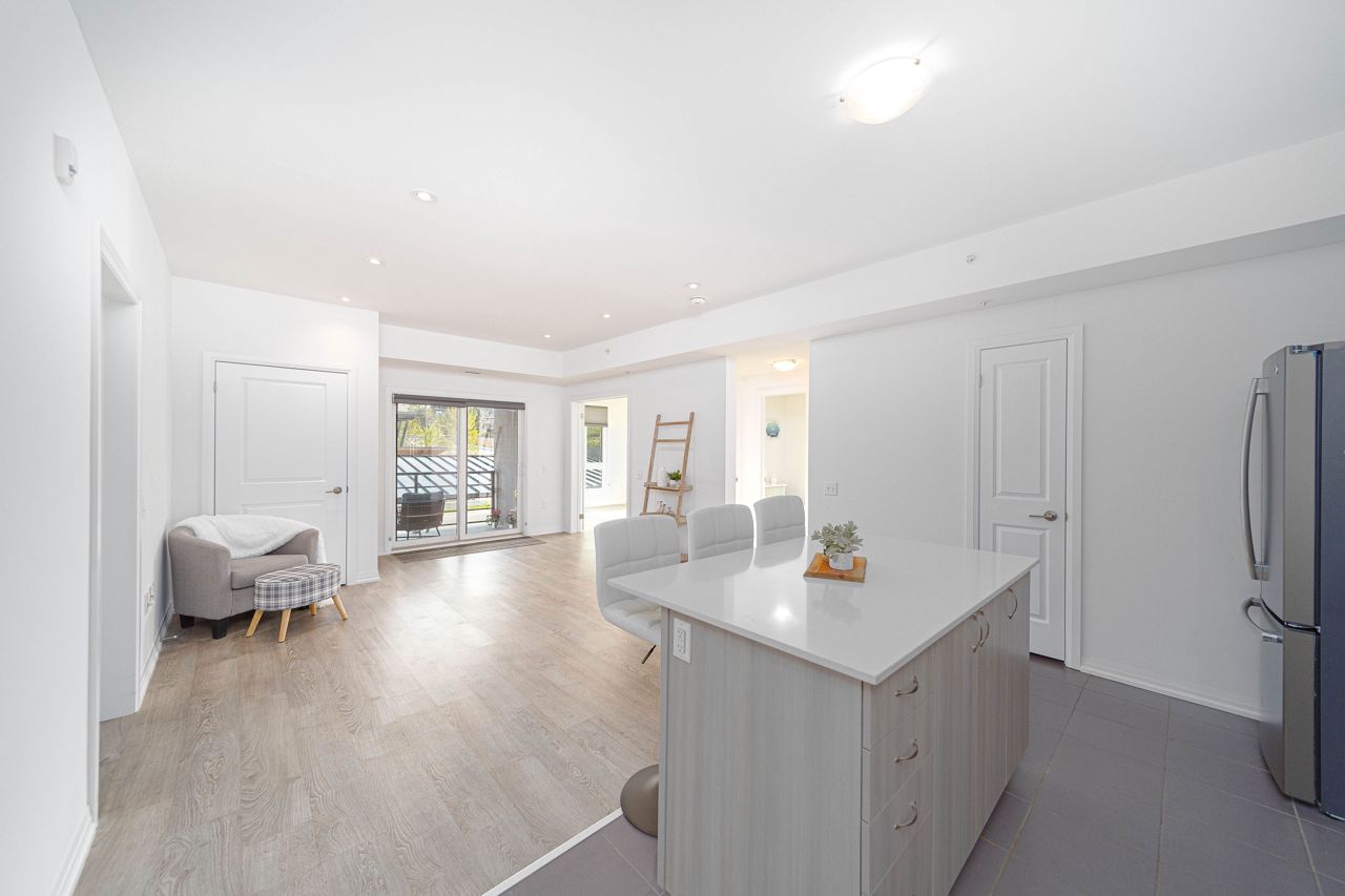 **Experience The Convenience & Luxury Of Condo Living At Gallery Condominiums! A Rare Opportunity To Own One Of The Coveted Corner Units. This Fully Accessible 2nd-Floor Condo Boasts 2 Bdrms, A Den, 2 Baths, A Spacious Kitchen, Liv/Din Area, & In-Suite Laundry. With 1244 Square Feet Of Living Space, This Corner Unit Features Oversized Windows That Flood The Interior W/ Natural Light. Upgrades Include Laminate Flooring In Den & Great Rm, Ceramic Tiles In The Kitchen, Foyer, & Baths, As Well As Modern Upgrades Such As Pot Lighting, 5 New Top Of The Line Appliances & A Kitchen Island W/ Outlets. The Unit Comes With 2 Parking Spaces, 1 Outdoors & The Other In Underground Garage Along With A Storage Locker. The Complex Is Perfectly Suited For Downsizing Or Those Seeking A Carefree Lifestyle. Residents Will Also Have Access To A Stunning Rooftop Patio Offering Breathtaking Views Of Barrie.The Location Is Ideal, Situated Near The Picturesque Ardagh Bluffs With Its Extensive Recreational Trails & Close Proximity To Highways And Local Amenities.