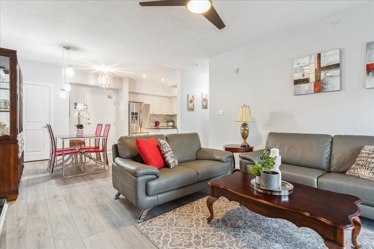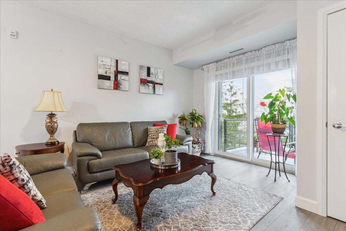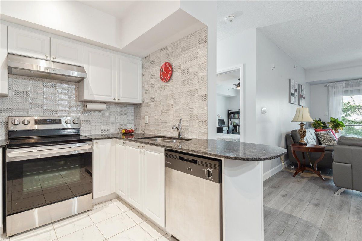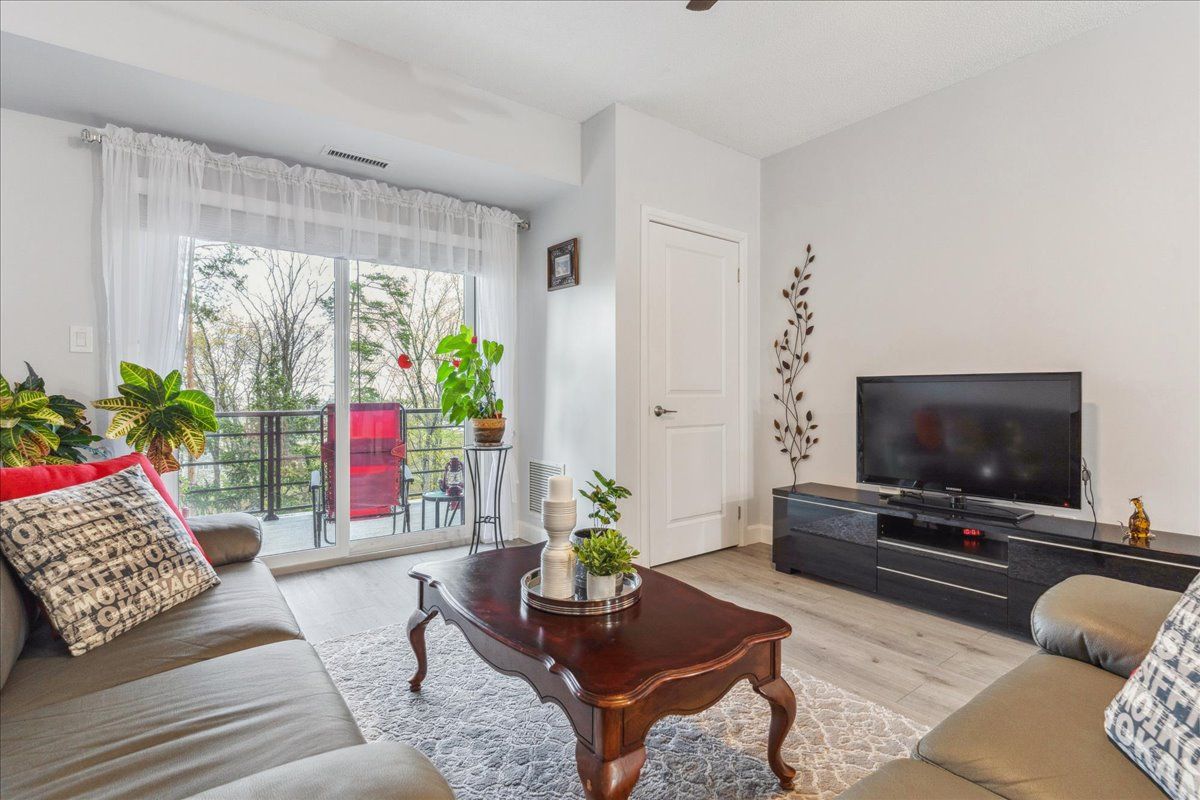 Welcome to this incredible 1,158 sq ft suite at the Gallery. Very stylish 2 bed, 2 full baths, overlooking trees & nature. Beautifully upgraded, premium lighting, quality waterproof floors, neutral paint, 9-ft ceilings, granite countertops. Kitchen has modern tile backsplash, updated S/S appliances including fridge w/ice & water, stove (2022), D/W & loads of cupboards. Upgraded floor plan which includes huge W/I closet in primary bedrm as well a separate linen closet w/ample room to accommodate bedding & towels. Primary bed has 4-pc ensuite w/deep tub. 2nd bedroom is large enough to be a primary, custom shelving built-in’s, main bath is directly across hall, great for guests. Spacious laundry closet, newer front load stacked laundry. Wide living room provides ample living space as well as separate dining area. Premium location, spacious balcony, bbq’s permitted, a great space to enjoy nature. Premium U/G parking & locker located directly across from elevators. Pet friendly bldg.Lots of visitor parking, close to amenities, shopping, walking/hiking trails, hwy 400 & Go Transit. Direct access to amazing roof top terrace overlooking the City & Kempenfelt Bay. Perfect to enjoy air shows & fireworks!