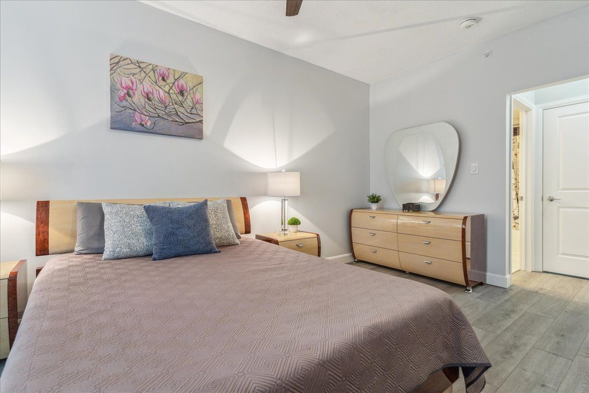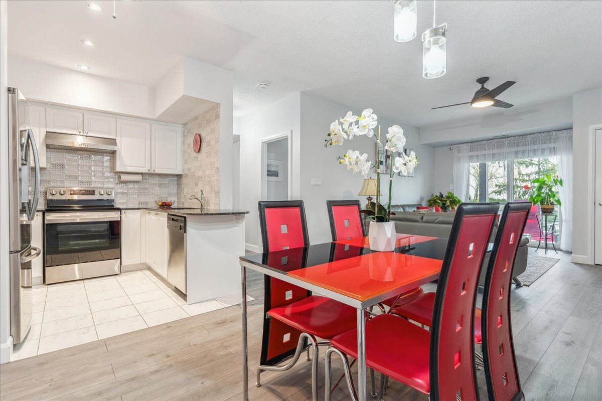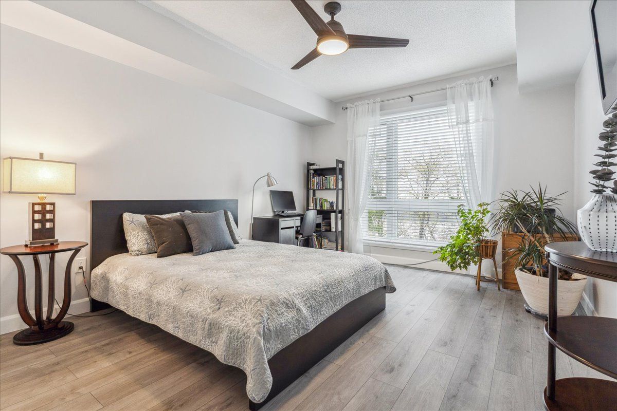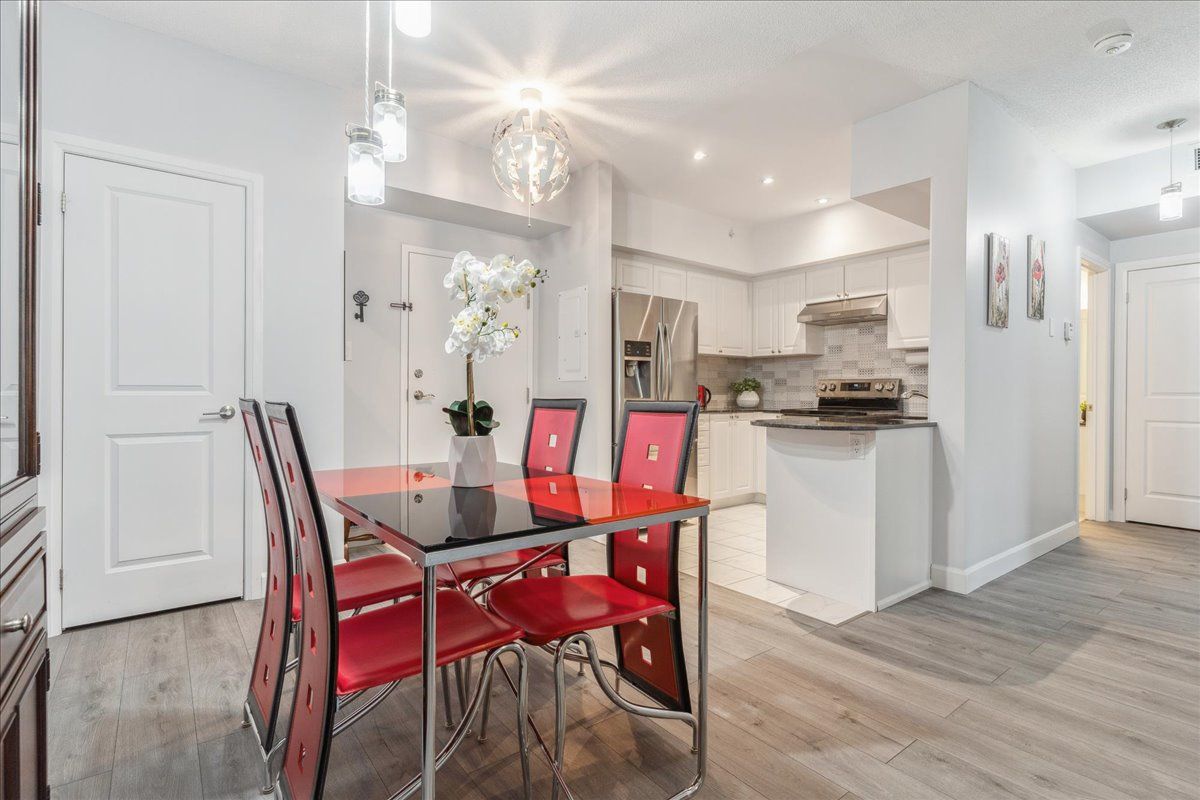 Welcome to this incredible 1,158 sq ft suite at the Gallery. Very stylish 2 bed, 2 full baths, overlooking trees & nature. Beautifully upgraded, premium lighting, quality waterproof floors, neutral paint, 9-ft ceilings, granite countertops. Kitchen has modern tile backsplash, updated S/S appliances including fridge w/ice & water, stove (2022), D/W & loads of cupboards. Upgraded floor plan which includes huge W/I closet in primary bedrm as well a separate linen closet w/ample room to accommodate bedding & towels. Primary bed has 4-pc ensuite w/deep tub. 2nd bedroom is large enough to be a primary, custom shelving built-in’s, main bath is directly across hall, great for guests. Spacious laundry closet, newer front load stacked laundry. Wide living room provides ample living space as well as separate dining area. Premium location, spacious balcony, bbq’s permitted, a great space to enjoy nature. Premium U/G parking & locker located directly across from elevators. Pet friendly bldg.Lots of visitor parking, close to amenities, shopping, walking/hiking trails, hwy 400 & Go Transit. Direct access to amazing roof top terrace overlooking the City & Kempenfelt Bay. Perfect to enjoy air shows & fireworks!
