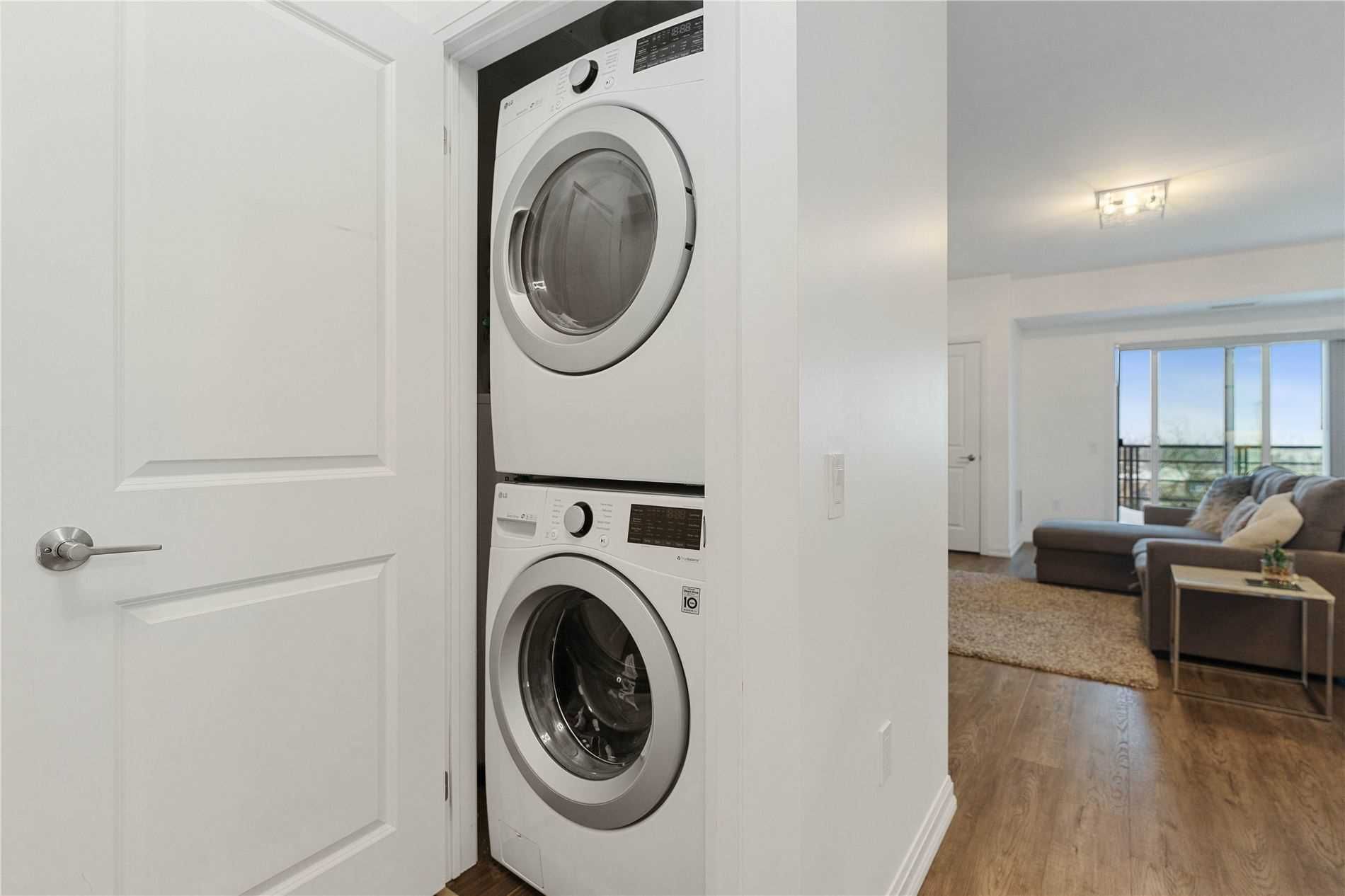 Welcome to this value packed 1 bedroom + den suite. Located on the top floor with breathtaking views of the environmentally protected area. This suite also features a larger balcony, with the added convenience of TWO parking spots. 1 garage spot with a spacious storage locker, and 1 outdoor spot. This condo unit is also designed to be accessible for individuals with mobility impairments as it features wheelchair accessibility. It includes wider doorways, hallways, and larger washrooms. Enjoy the good life on the 11,000 sq ft rooftop, where you can host unforgettable gatherings while taking in unbeatable views of the city. For nature lovers, there are walking and hiking trails surrounding the complex. This suite's prime location is unmatched, with a grocery store just steps away and easy access to the highway makes commuting a breeze. Don't let this incredible opportunity pass you by!