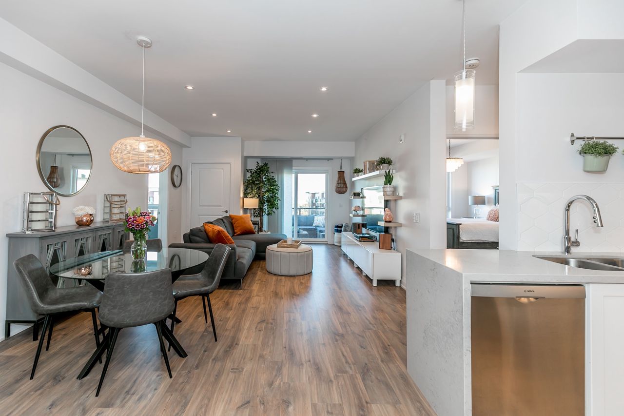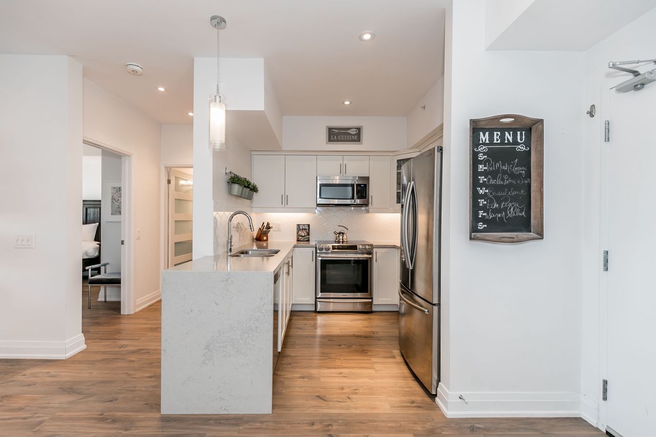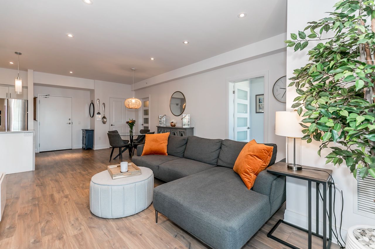 Stunning Penthouse Unit! *RARE* Offering! Fully Upgraded Penthouse in South Barrie's highly sought after Gallery Buildings. This spacious 2 bedroom sun-filled unit has tons of natural light! Loaded with Designer upgrades throughout, including; Waterfall Quartz Countertop, Upgraded White Kitchen Cabinets With Glass Insert, Pot & Pan Drawers, 9' Smooth Ceilings w/ Pot Lights, High End Laminate Flooring, Upgraded Trim, Stainless Steel Appliances, Oversized Balcony & More! Enjoy Unobstructed Views Of The Surrounding Skyline Of The City Of Barrie & Kempenfelt Bay. One (1) Underground Parking & Locker Included. En-Suite Laundry. Surrounded by a 14-Acre Forested Park Area W/ Walking Trails, Bridges, & Boardwalks. Minutes To Highway 400, Lake, Go Station, Grocery Stores, Waterfront, Downtown Restaurants & All major amenities.