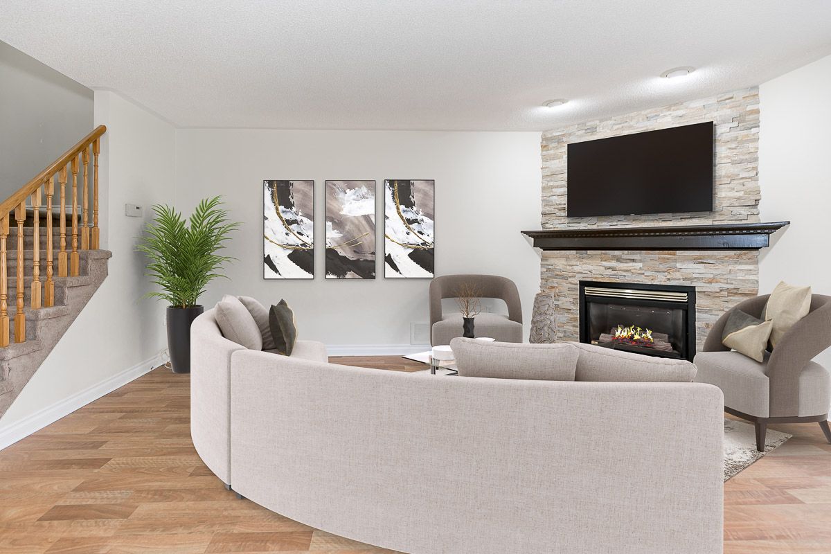 Welcome to 31 Chalmers Drive, Barrie centrally located in the family oriented community of Painswick. Tidy curb appeal with Brick/vinyl exterior & attached 1-car garage. Enjoy having no sidewalk directly in front & a charming front porch! Fully fenced yard w/shed, interlock patio & gardens! Bright interior with O/C kitchen and breakfast bar. Combined living/dining room w/cozy gas fireplace & W/O to backyard. A 2-Pc bath rounds off the main floor. 3 bedrooms upstairs served by 4-Pc bath. Partially finished basement w/spacious rec room + storage & laundry.Close to: shopping plazas, restaurants, schools, public library, Allandale Rec Centre, Hwy 400 & Barrie South Go, several parks, Downtown Barrie & waterfront. *New Shingles 2018.