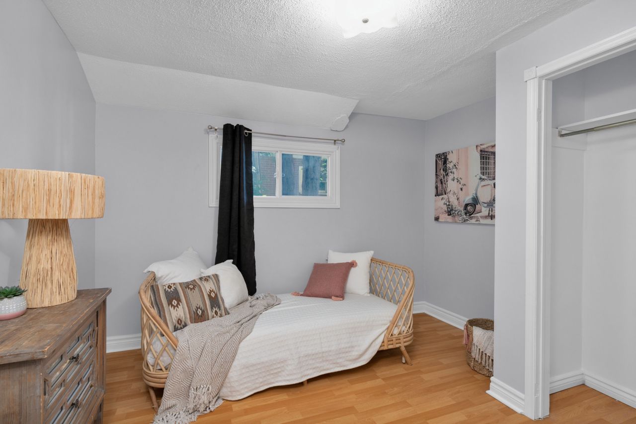 Turn-key bungalow on over-sized 65 X 165 ft lot with R2 zoning steps to college with immense potential. 6 car driveway greets you and white picket fence before you reach the over-sized double garage with bonus workshop in back. The bungalow has no carpet and boasts updated kitchen with stainless steel fridge, gas stove, and handy eat-in kitchen nook. Large front window drenches living room with natural light. There are two full bathrooms, one is a four-piece and the other a three-piece semi-ensuite with its own entrance. Main floor laundry is also a plus for this home and over-sized primary bedroom with four large windows. There is also a third bedroom and a handy loft space for extra storage, or bonus shed outside as well as large deck. The yard has plenty of privacy and mature trees and is close to Georgian College, Royal Victoria Hospital, schools, shopping, and access to the 400 Hwy. Roof 2018None