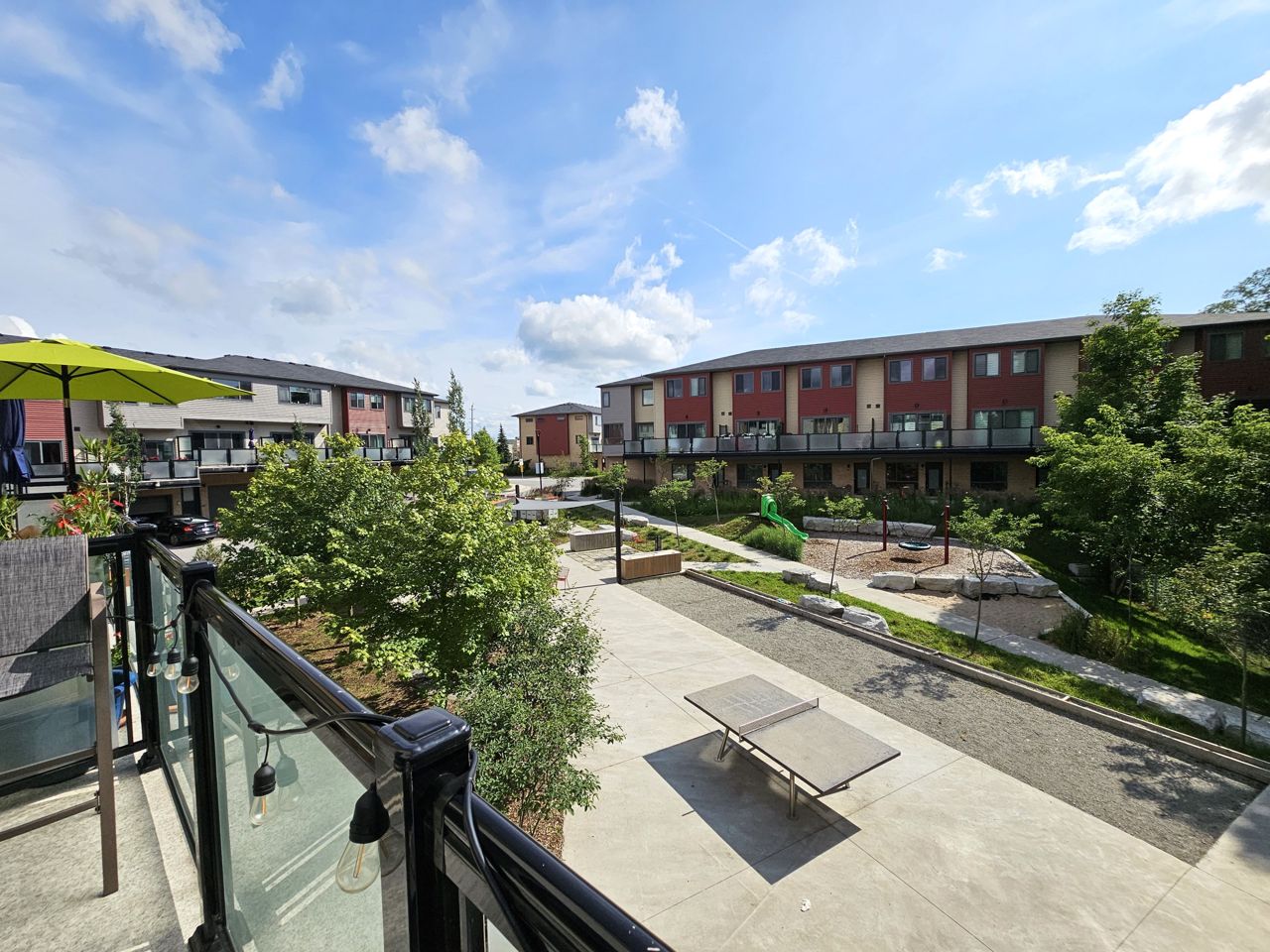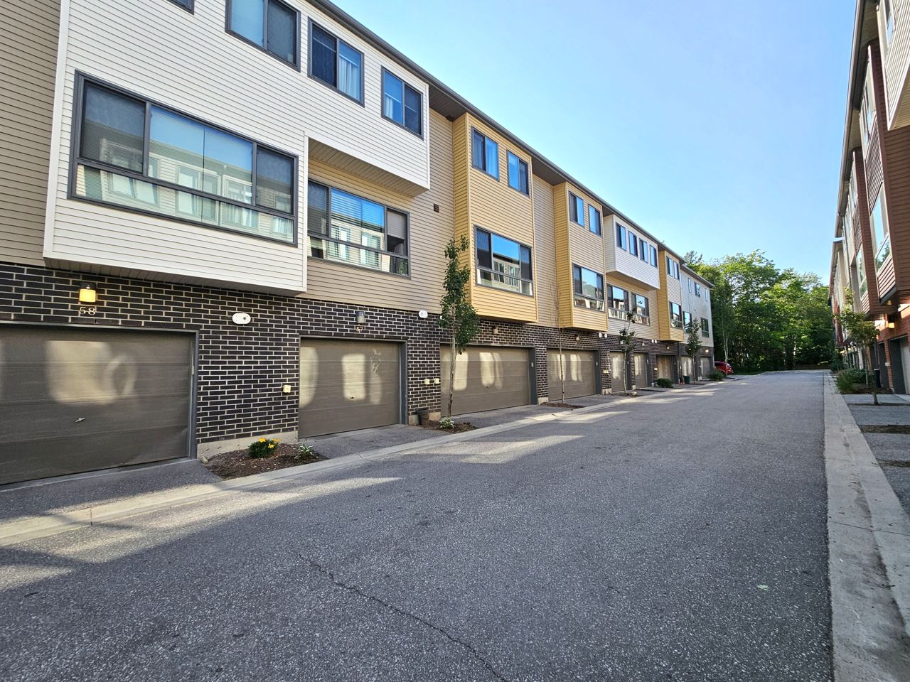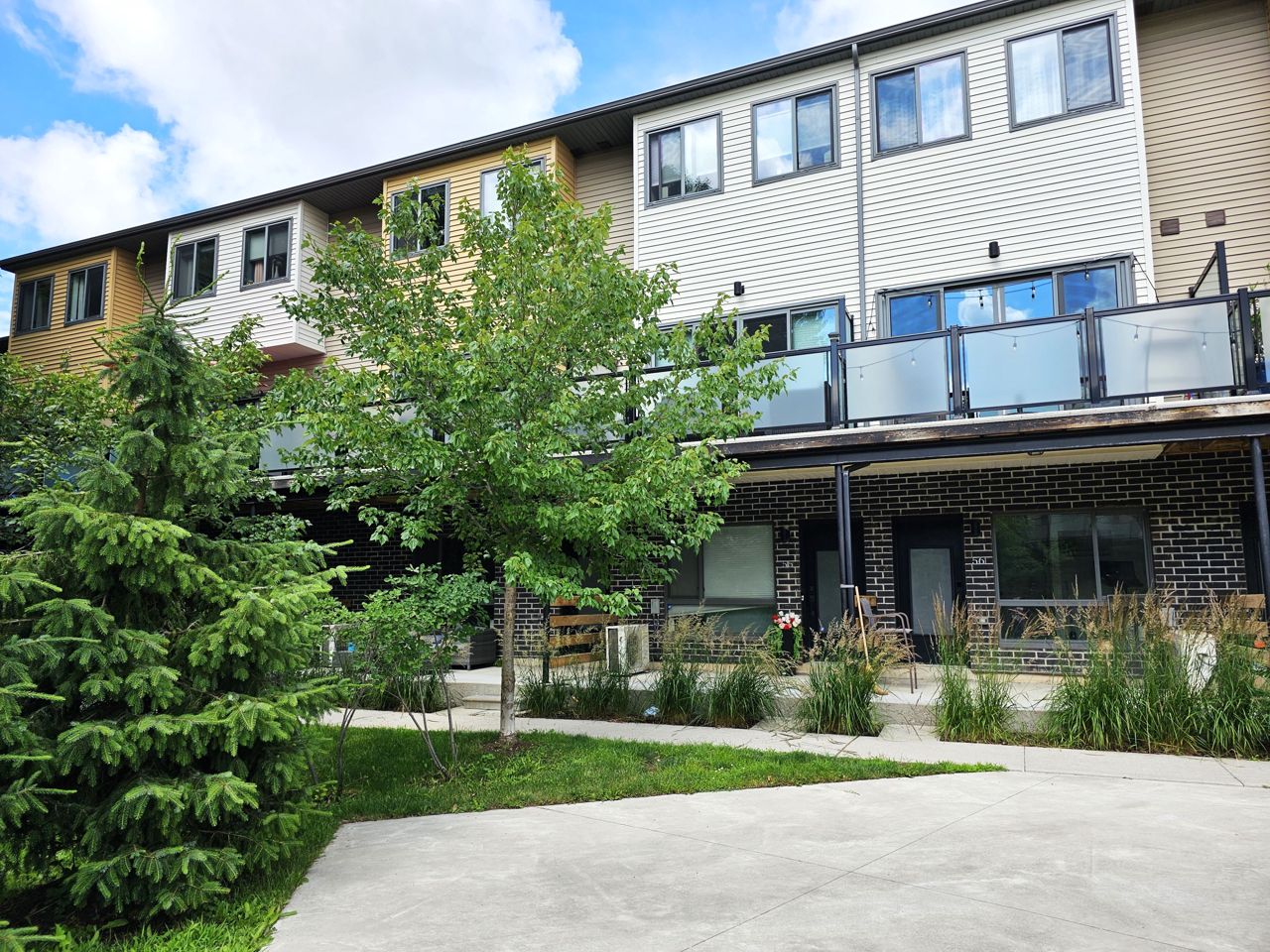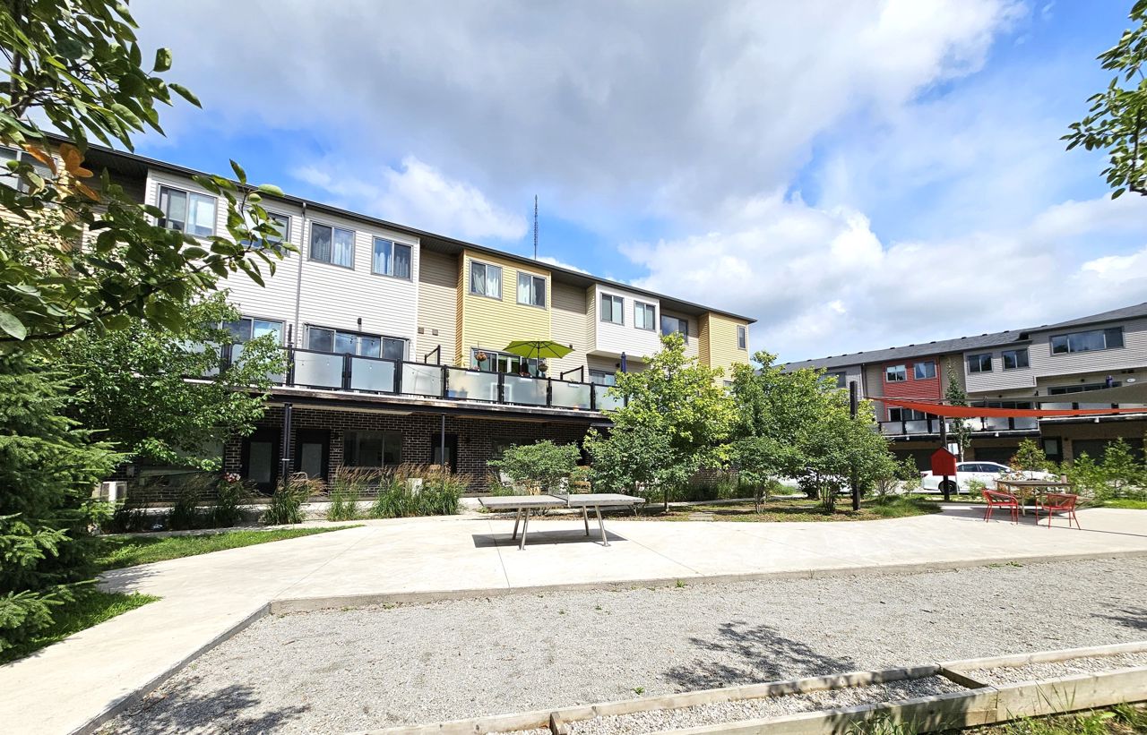 First time home buyers and Investors! Don’t miss an opportunity to own this modern 3-storey townhouse with hard to find 2 car garage with inside entry from main level sitting room. Energy efficient home with tankless hot water heater, Ecobee thermostat, cell phone charge ports, fibre optic Tech.Cam. Upgrades including kitchen Quartz countertops & central island, stainless steel appliances, pot lights. Extra storage closet. NO carpet. 3 bedroom & 2+1 bath. Upgraded primary ensuite with walk in glass shower. Second floor open concept with sliding door to the balcony overlooking trees and common area with garden and canopy set up. Large windows & 9’ ceilings make this home bright and spacious. Total finished area 1,500 SqFt. Easy access to HWY 400 and shopping.