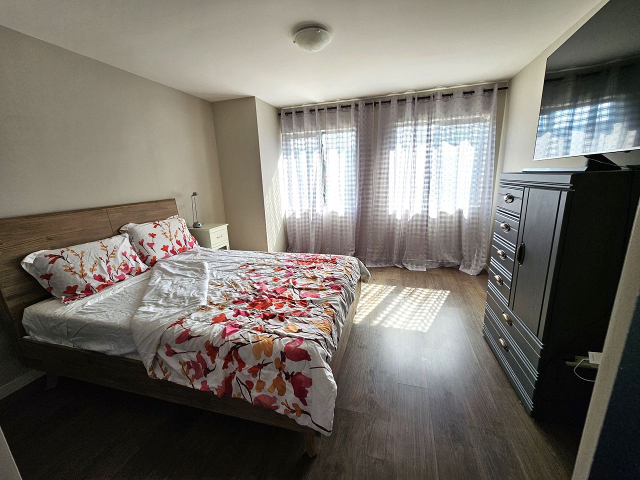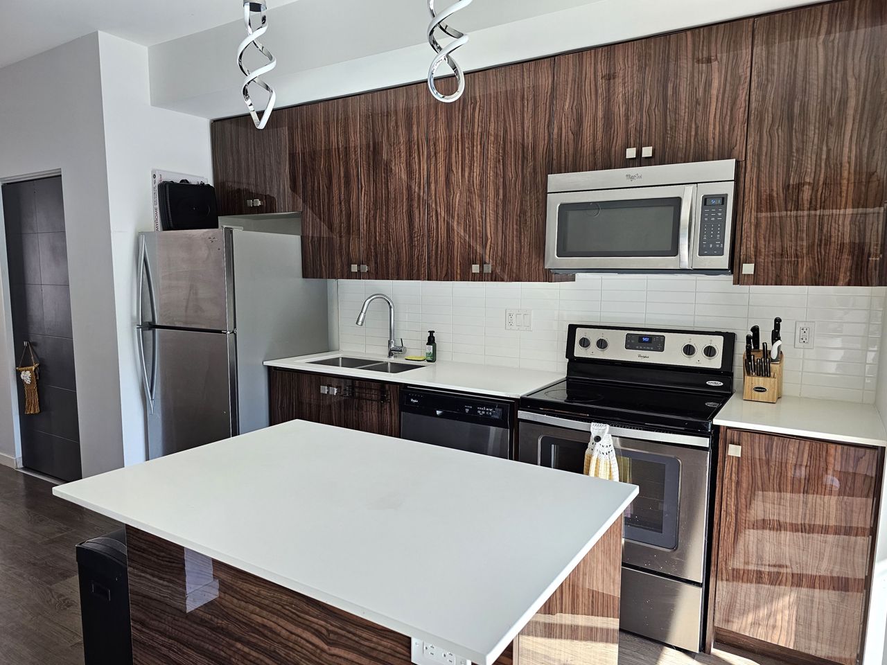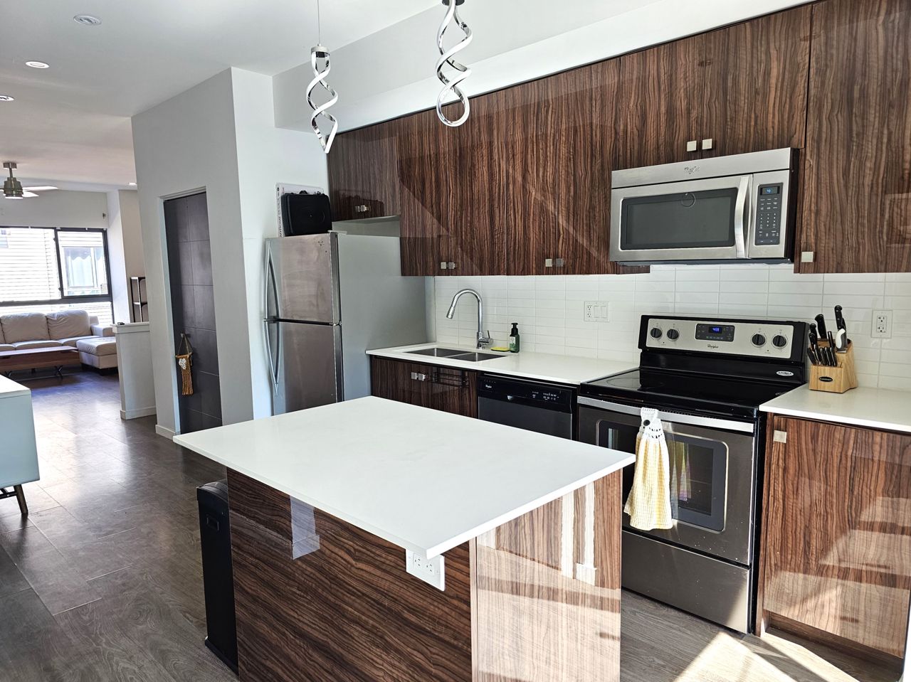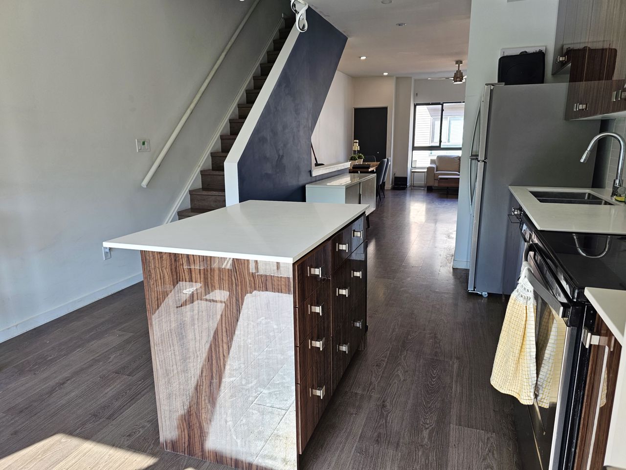 First time home buyers and Investors! Don’t miss an opportunity to own this modern 3-storey townhouse with hard to find 2 car garage with inside entry from main level sitting room. Energy efficient home with tankless hot water heater, Ecobee thermostat, cell phone charge ports, fibre optic Tech.Cam. Upgrades including kitchen Quartz countertops & central island, stainless steel appliances, pot lights. Extra storage closet. NO carpet. 3 bedroom & 2+1 bath. Upgraded primary ensuite with walk in glass shower. Second floor open concept with sliding door to the balcony overlooking trees and common area with garden and canopy set up. Large windows & 9’ ceilings make this home bright and spacious. Total finished area 1,500 SqFt. Easy access to HWY 400 and shopping.