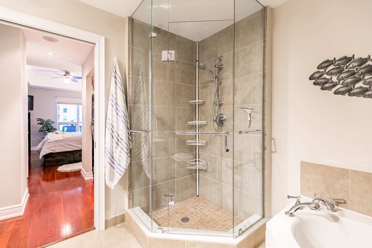 shelving. En-suite bath with large vanity, Jacuzzi tub & separate glass walk-in shower. The den is a multi-purpose space; office, craft room, TV room, dining or spare bedroom. In-suite laundry with extra room for storage & a large closet at the front door. 1 underground parking & storage locker. Amazing location - across from beach, bike/walking trails, marina and walking distance to downtown Barrie restaurants, bars and stores.1 OwnedvUnderground Parking. 1 Storage Locker.