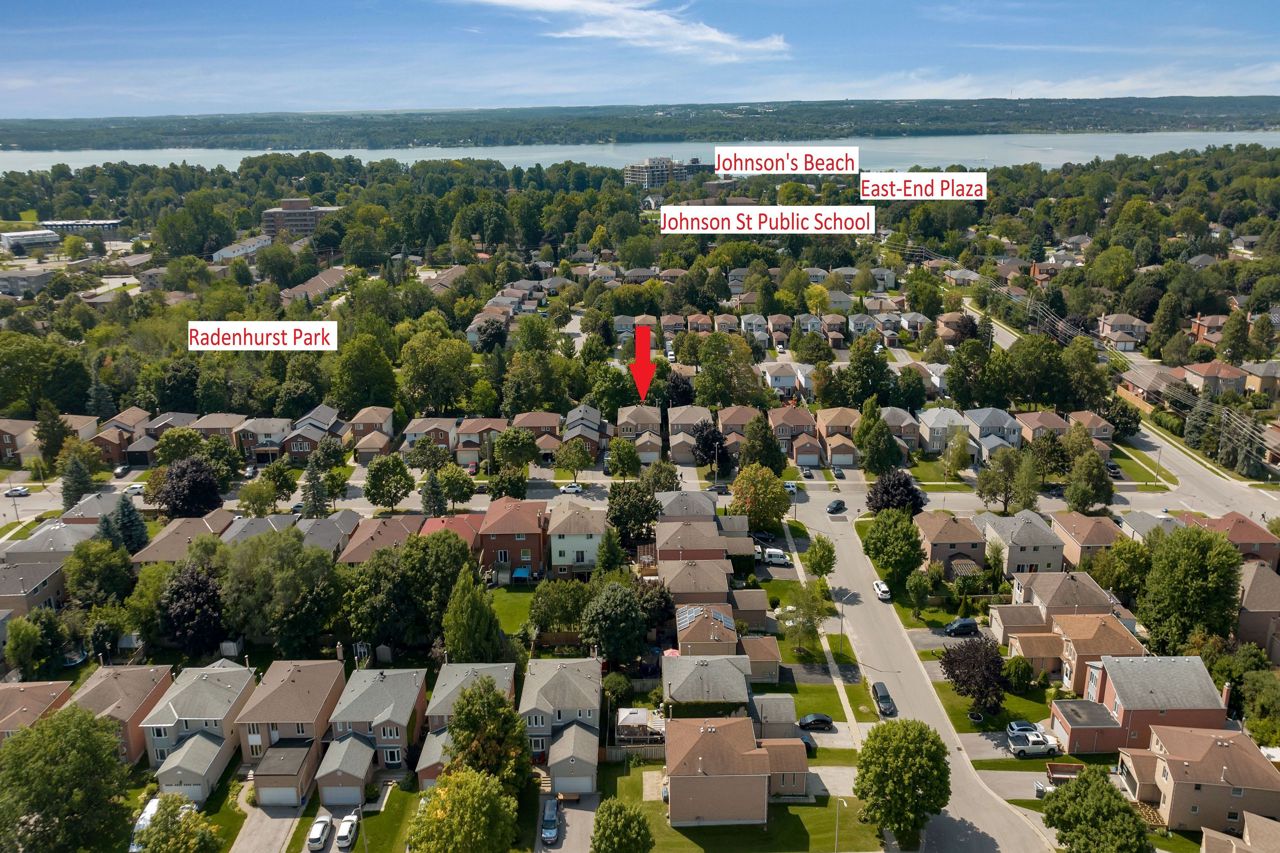 Well-loved and upgraded original owner home (2,200 sq ft per Builder’s Plan) – Shows great! Ideally nestled mere blocks from Johnson’s Beach/Kempenfelt Bay in our sought-after quiet East-End! Walk to beach/walking-biking trail/parks/ schools/arena/ hospital/college/plazas & close to 400 Hwy. Spacious brick 4 Bed, 2 ½ Bath family home w brand new shingles (Aug 2023) & most house windows upgraded. Two walkouts to the Southern exposed fenced and treed rear yard – one from the family room boasting a brick F/P, the other from the huge family-sized kitchen with lots of quartz countertops and rich woodgrain-stained cabinets. (Major appliances incl). Primary suite boasts sitting area - dbl closet and walk-in closet plus a private 4 pc ensuite with heated flrs. Remaining 3 bedrooms have dbl closets with organizers. All baths are tastefully decorated with modern upgrades, both 4 pc baths have heated flrs. Spacious 2 storey high foyer at entrance with lovely curved staircase.Mn flr laundry with direct dbl garage access. FAG heating with central air & 100 AMP breakers. Don’t miss this great opportunity to settle into this sought-after location in this awesome family home respectfully priced. Wont last long!