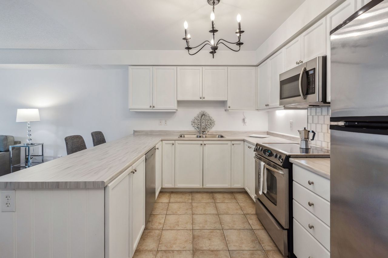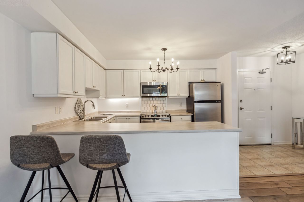 Location, Location, Location. This Stylish Condo Unit is almost 1000 sqft and situated in Central Barrie, close to all Amenities and Ready for you to just Move In! This 2 Bedroom Condo w/ 4pc bathroom has an Open Concept layout featuring a good sized Kitchen with Large Principal Rooms. Many recent updated: large Kitchen with updates including Coutners, Tap, Stove W/ Backsplash, Under Counter Lighting W/ Valance & New Dishwasher(2021); New entry door hardware, New thermostat, other features include Laminate Flrs & Tile throughout, a Large Kitchen that opens up to a Dining Area & Bright Living Room, & a Walk-out to a Balcony w/ Glass Panels & enjoy your BBQ. This building has an elevator, easy access to assigned parking spot across from unit, visitor parking & playground. Also includes one large storage locker. New fob system means easy access to the building. Pets 25 pounds or less are allowed. Shows 10++.LBX is located on a sidebar of the Garage Shed by Visitor Parking Area.