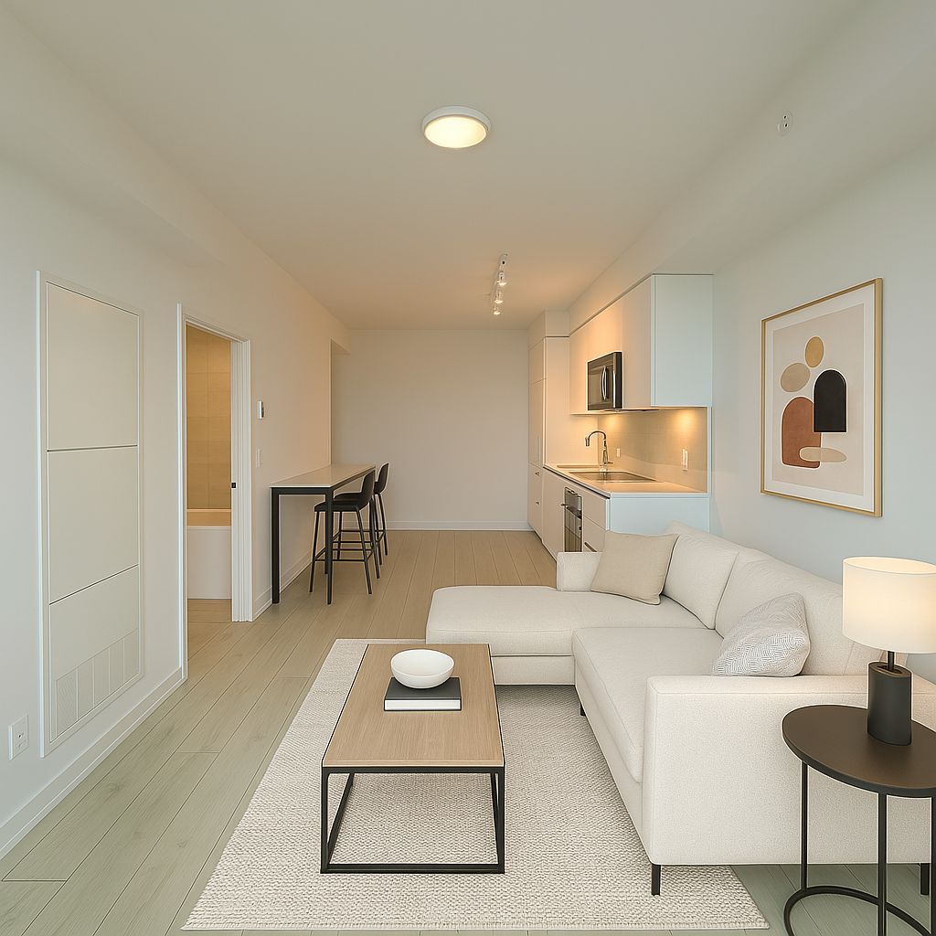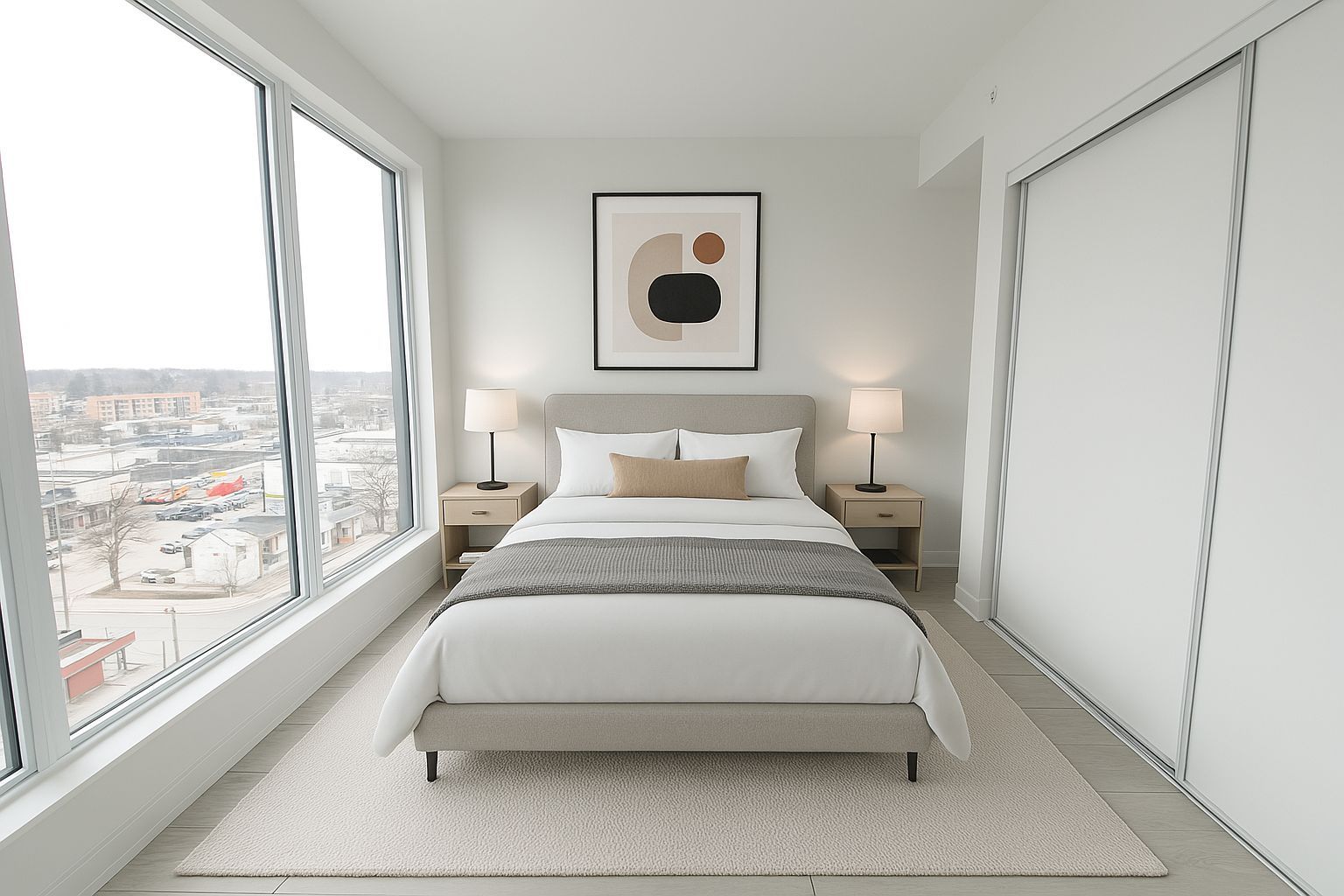 Be the First to Live in this Brand-New Luxury Condo in Downtown Barrie! This pristine 1+Den, 2 Full Bathroom suite offers a sleek, modern design with nearly 600 sq ft of thoughtfully laid-out living space. Full Window Blinds in Living Room and Bedroom already installed! The bright open-concept layout features floor-to-ceiling windows, 9 ft flat ceilings, premium vinyl flooring, and a walk-out to a private balcony - perfect for enjoying your morning coffee or evening unwind. The enclosed den offers flexibility as a second bedroom or a home office. A stylish kitchen showcases quartz countertops, high-end cabinetry, and integrated appliances. The spacious primary bedroom includes a 3-piece ensuite and double closet. Building amenities to include an infinity plunge pool with views of the Lake, fully equipped fitness centre, yoga studio, outdoor BBQ/fire-pit area, and business centre. Steps to the Allandale GO Station, lakefront trails, dining, shops, and all that Barrie's vibrant city centre has to offer. Please note: Any images showcasing furnishings have been virtually staged.