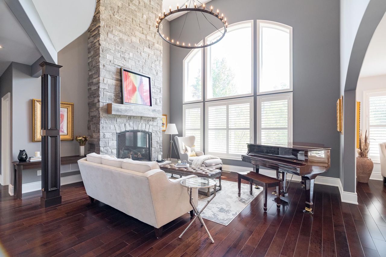 Hardwood Floor Cathedral Ceiling Gas Fireplace