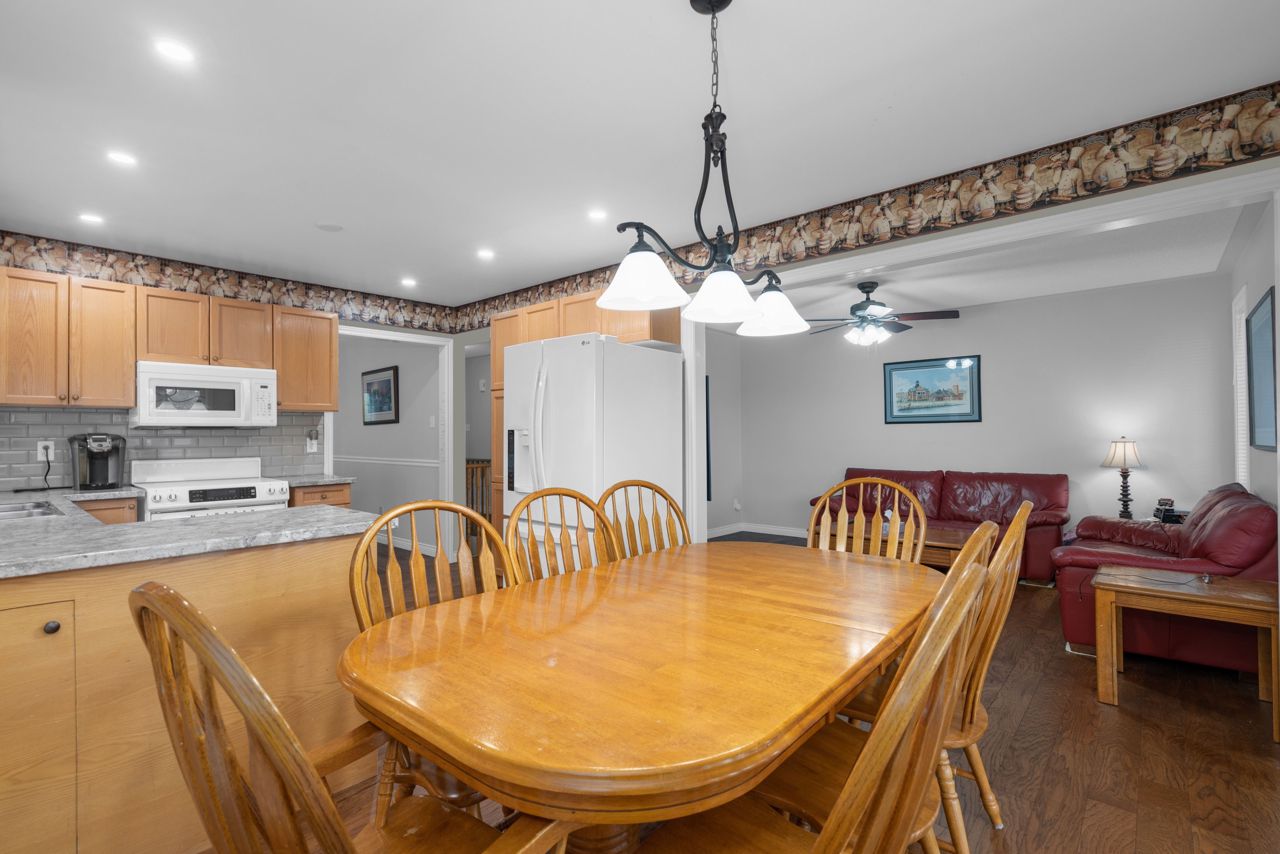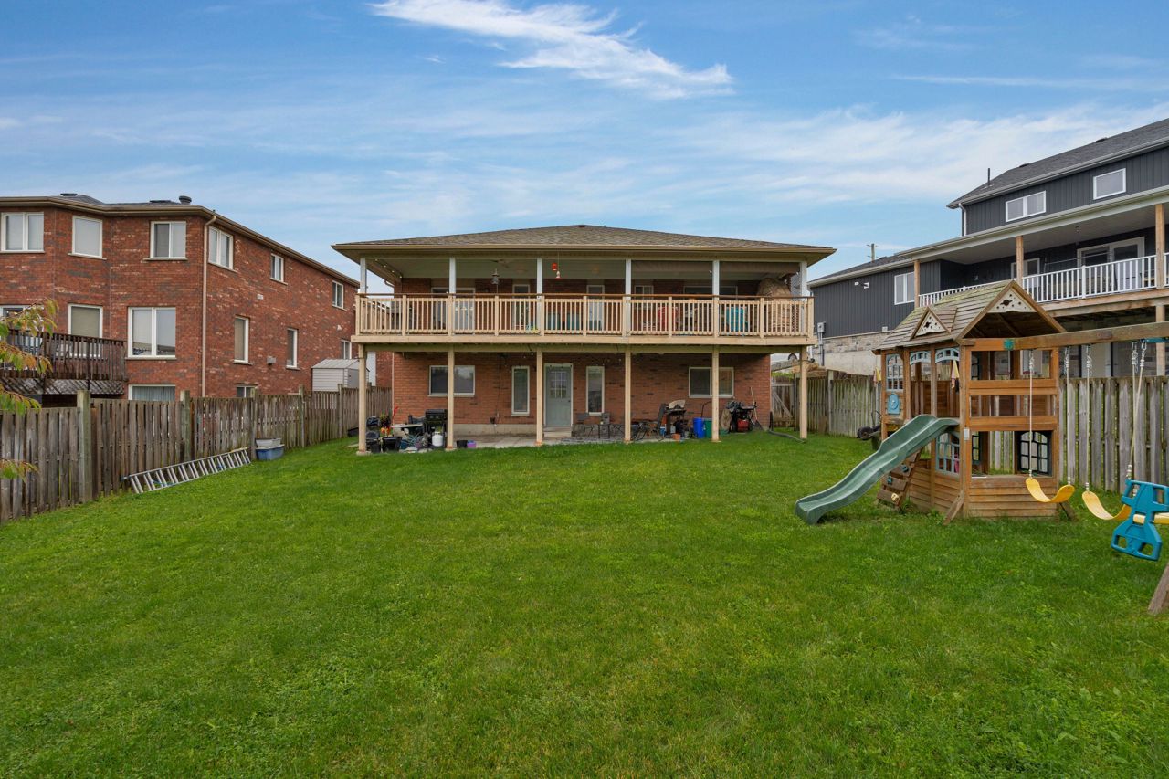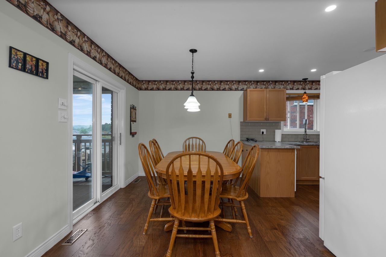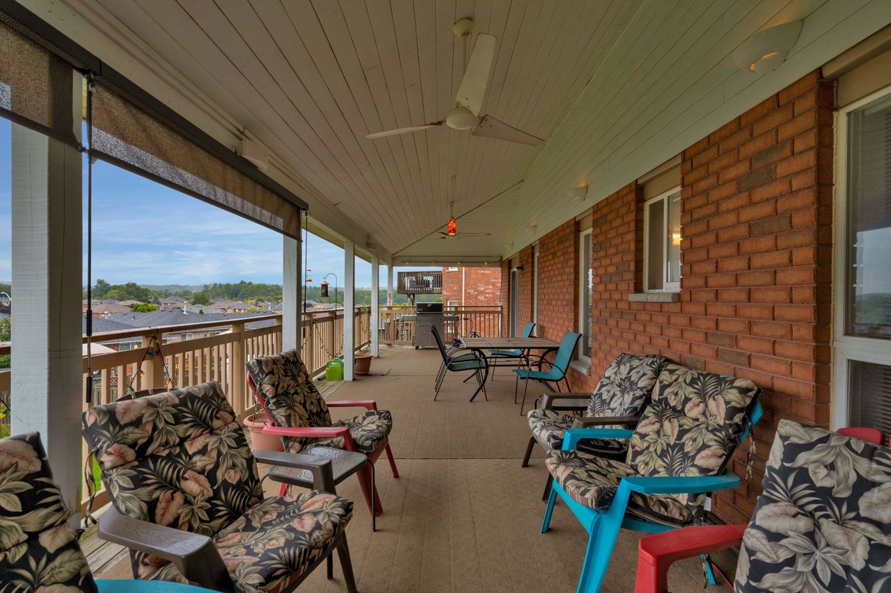 All brick over 3200 square foot ranch bungalow with 3 kitchens perfect for extended family or to rent out to supplement your monthly bills! Main floor boasts engineered hardwood flooring, painted 2023, two living areas and spacious kitchen with subway backsplash, new counters, pot lighting and crisp white appliances. The massive covered back deck is perfect for taking in the miles of scenic views. Back inside and down the hall you are greeted with double doors to the oversized primary bedroom with huge walk-in closet and 4 piece ensuite Two other bedrooms plus full bathroom round out this level. Downstairs past the shared laundry you can access the home via the inside garage entrance to basement or via the walk-out basement. The two one bedroom apartments are both spacious and drenched with natural sunlight and completely separate. Extra insulation between floors and walls, safe and sound insulation is perfect for noise dampening and all plumbing is plastic.New counter in bedroom ensuite and bedroom carpet (2022). Play-set can stay or go.