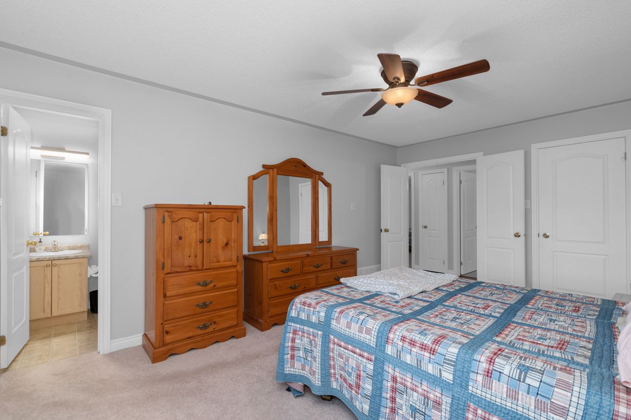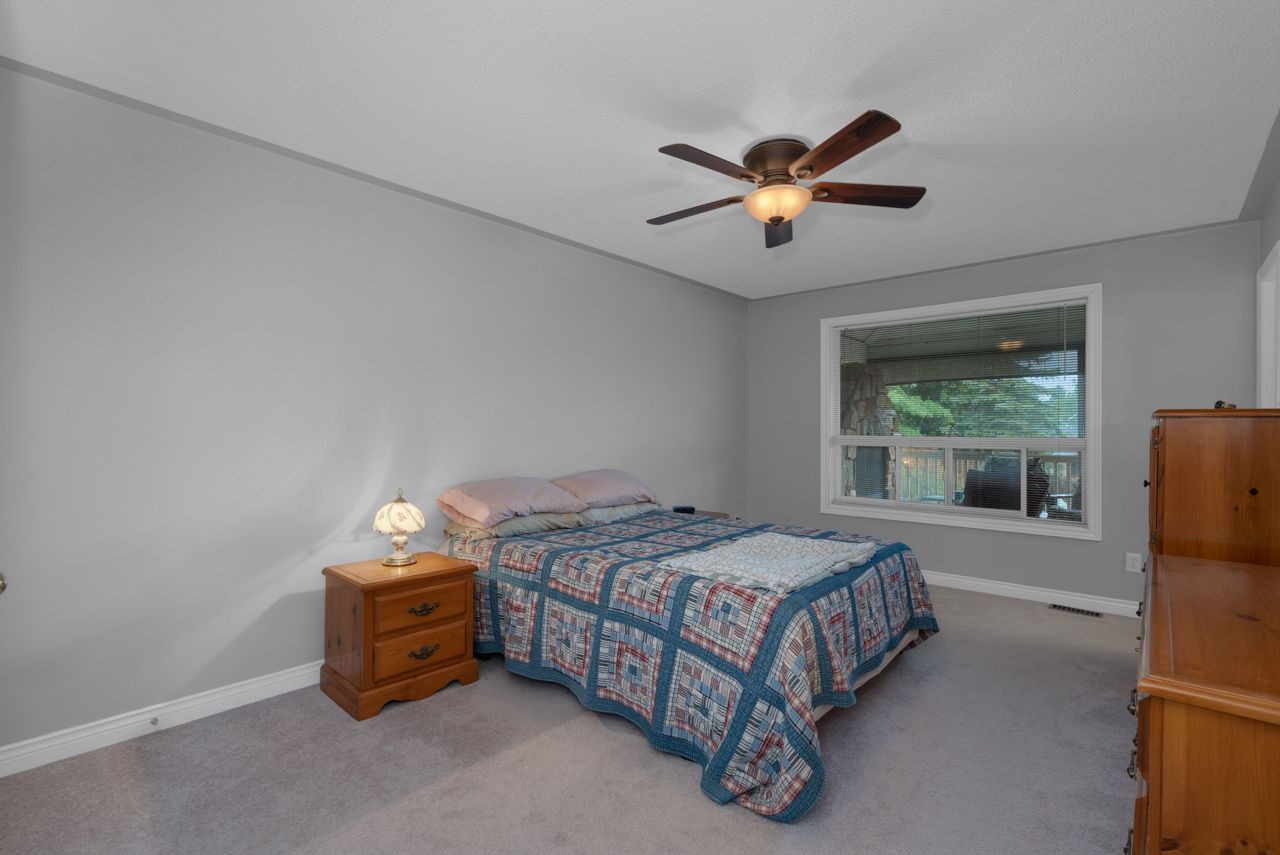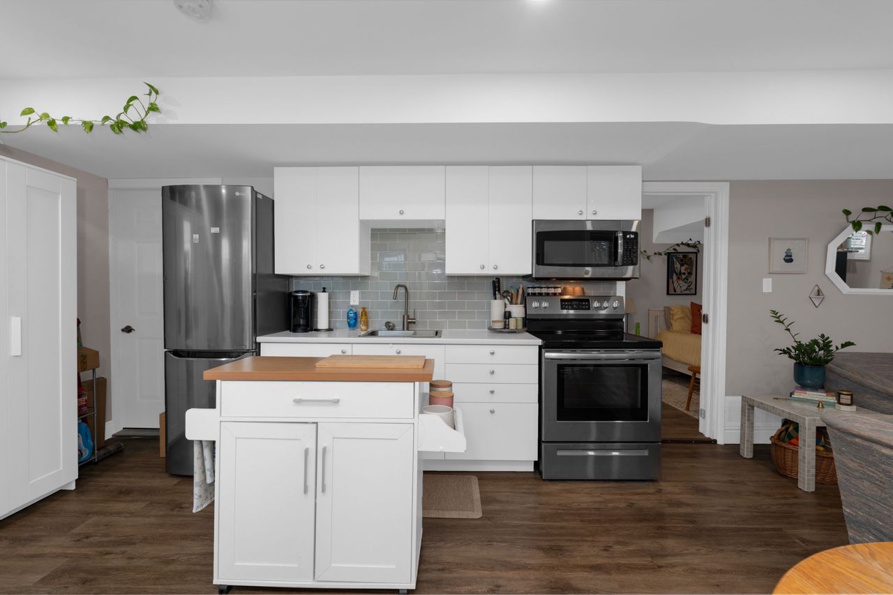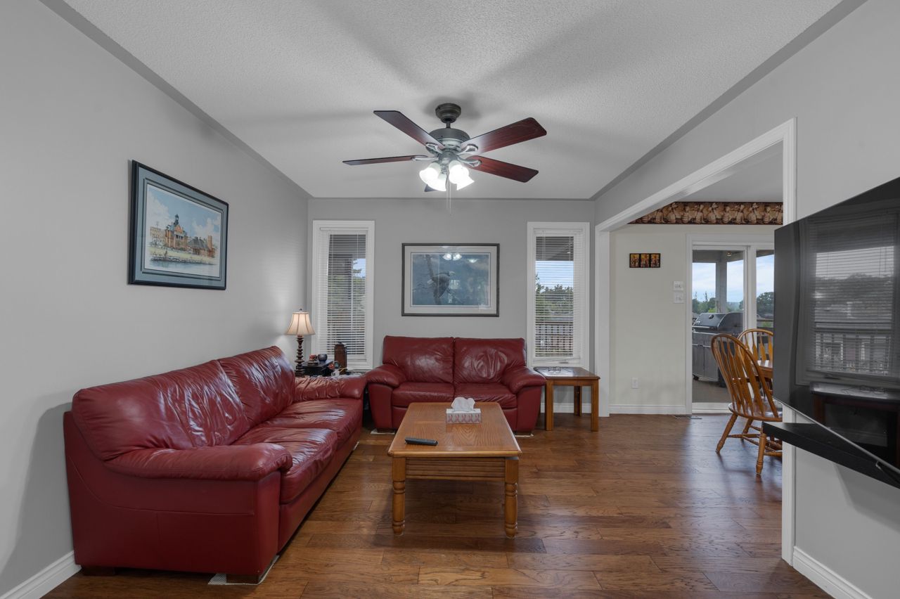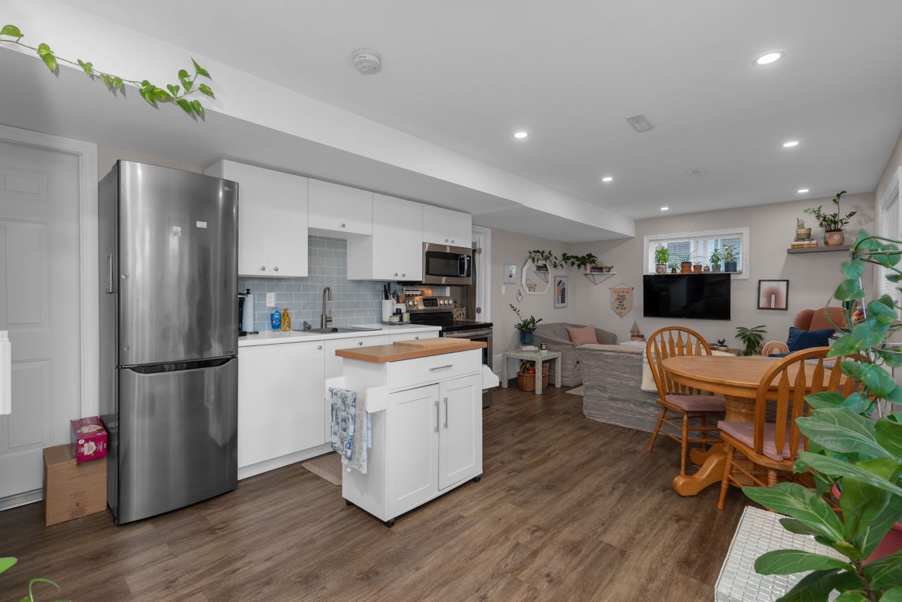 All brick over 3200 square foot ranch bungalow with 3 kitchens perfect for extended family or to rent out to supplement your monthly bills! Main floor boasts engineered hardwood flooring, painted 2023, two living areas and spacious kitchen with subway backsplash, new counters, pot lighting and crisp white appliances. The massive covered back deck is perfect for taking in the miles of scenic views. Back inside and down the hall you are greeted with double doors to the oversized primary bedroom with huge walk-in closet and 4 piece ensuite Two other bedrooms plus full bathroom round out this level. Downstairs past the shared laundry you can access the home via the inside garage entrance to basement or via the walk-out basement. The two one bedroom apartments are both spacious and drenched with natural sunlight and completely separate. Extra insulation between floors and walls, safe and sound insulation is perfect for noise dampening and all plumbing is plastic.New counter in bedroom ensuite and bedroom carpet (2022). Play-set can stay or go.