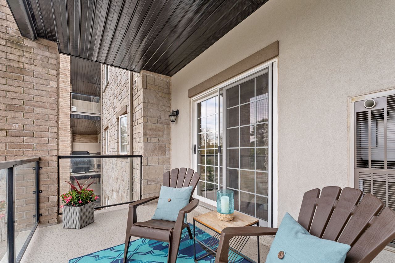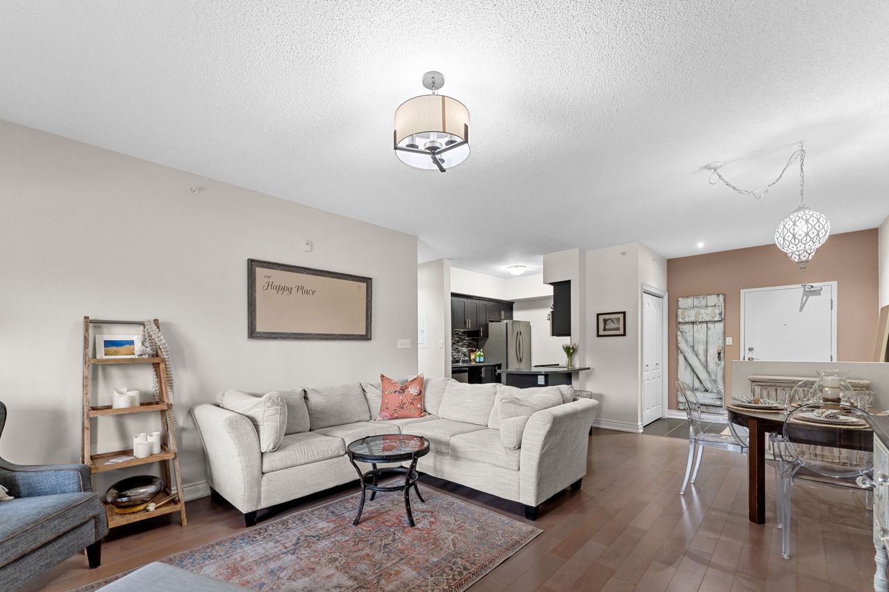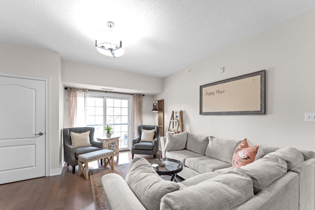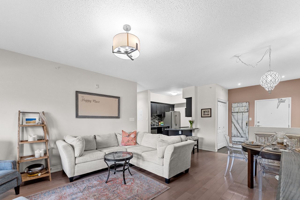 Stunning 2 bedroom unit in sought-after location *bright open concept floorplan* large underground parking spot w/ convenient storage locker attached. Private balcony w/ view of Bear Creek Conservation. Wonderful location close to 400, GO, shopping, downtown amenities incl restaurants/pubs, beaches/Lakeshore. Just steps to multiple walking trails including Bear Creek.Fully upgraded with 9' ceilings, engineered hardwood/porcelain tile (no carpet), stainless steel appliances, full sized ensuite laundry, custom lighting and window coverings