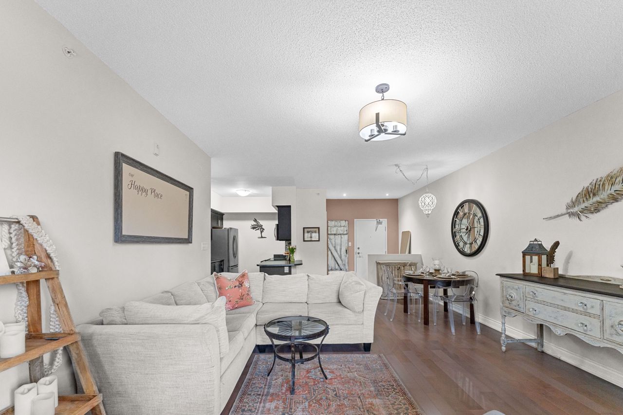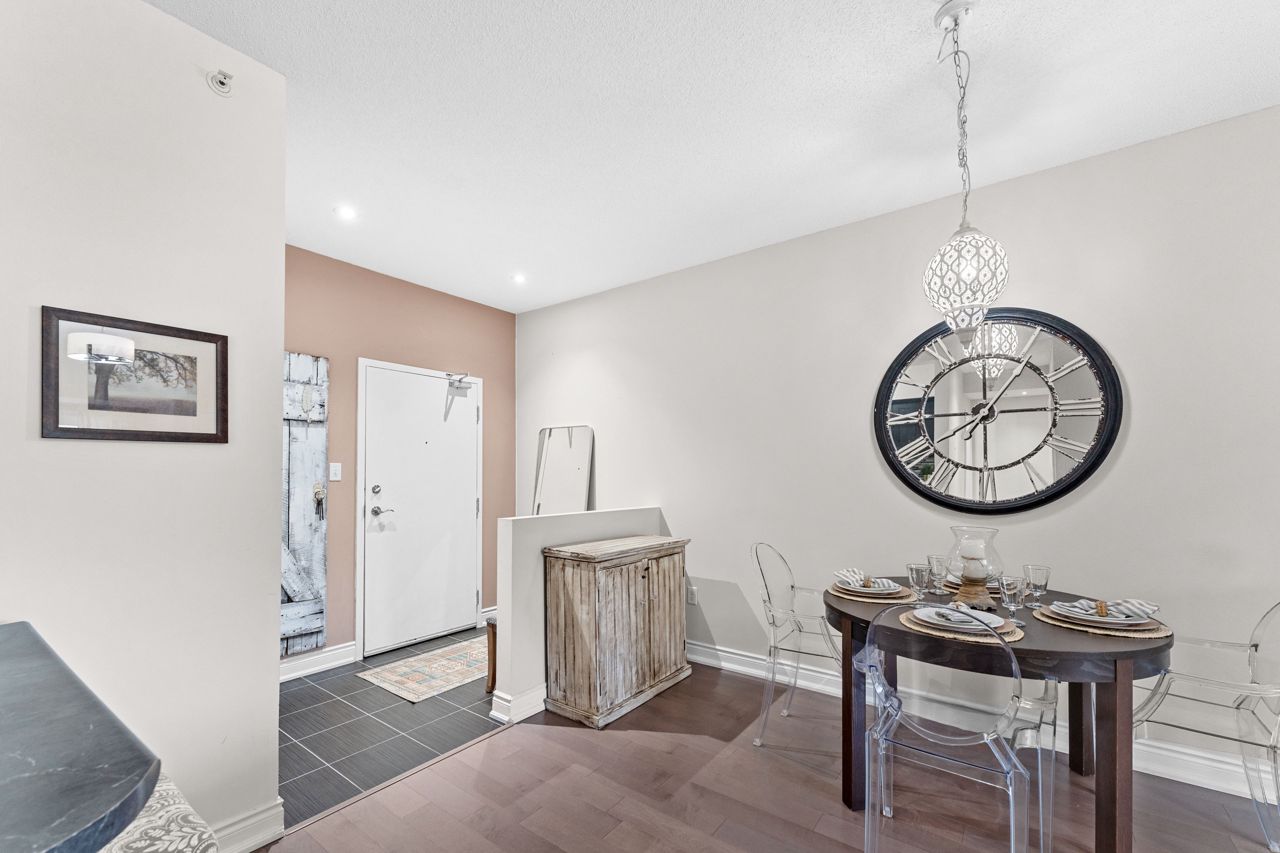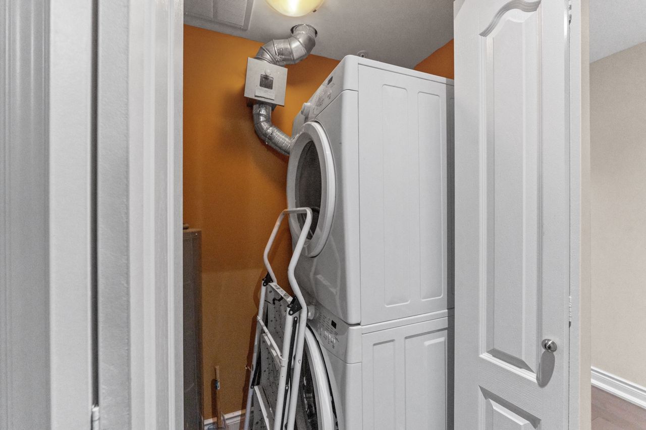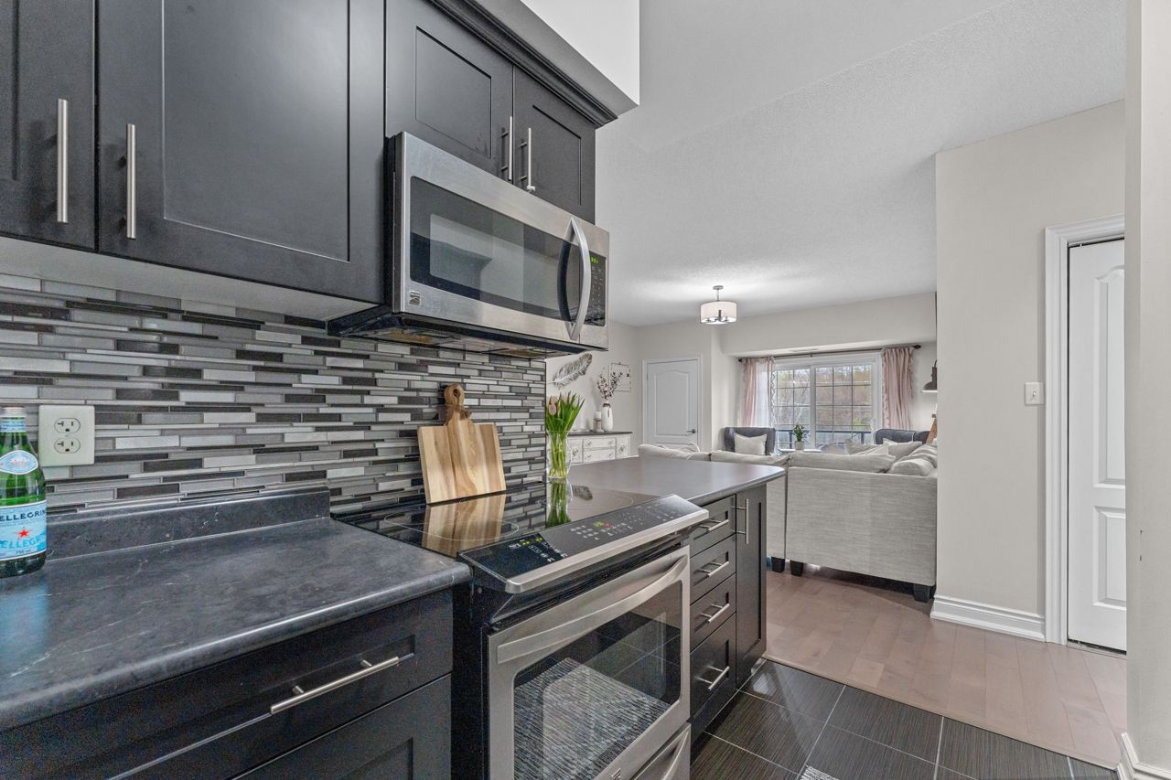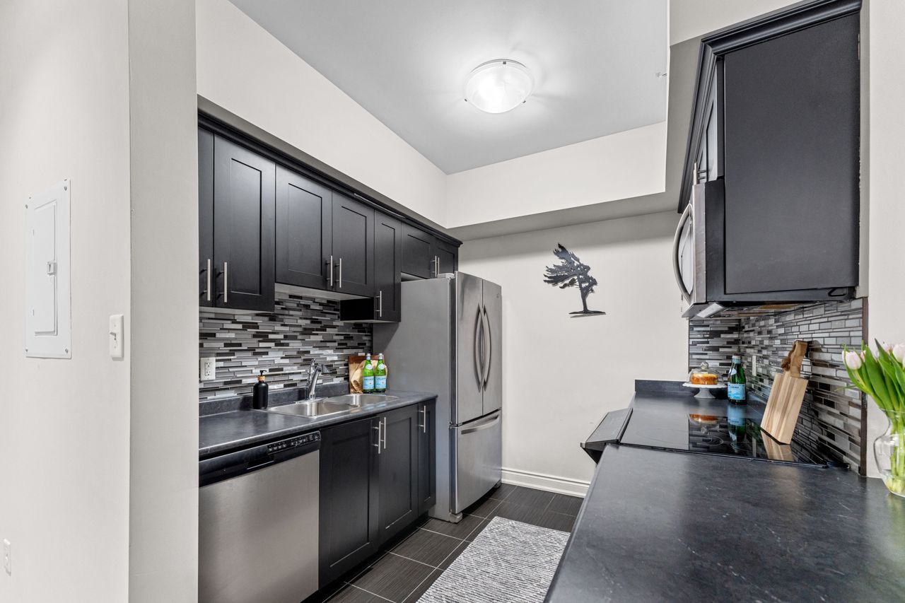 Stunning 2 bedroom unit in sought-after location *bright open concept floorplan* large underground parking spot w/ convenient storage locker attached. Private balcony w/ view of Bear Creek Conservation. Wonderful location close to 400, GO, shopping, downtown amenities incl restaurants/pubs, beaches/Lakeshore. Just steps to multiple walking trails including Bear Creek.Fully upgraded with 9' ceilings, engineered hardwood/porcelain tile (no carpet), stainless steel appliances, full sized ensuite laundry, custom lighting and window coverings