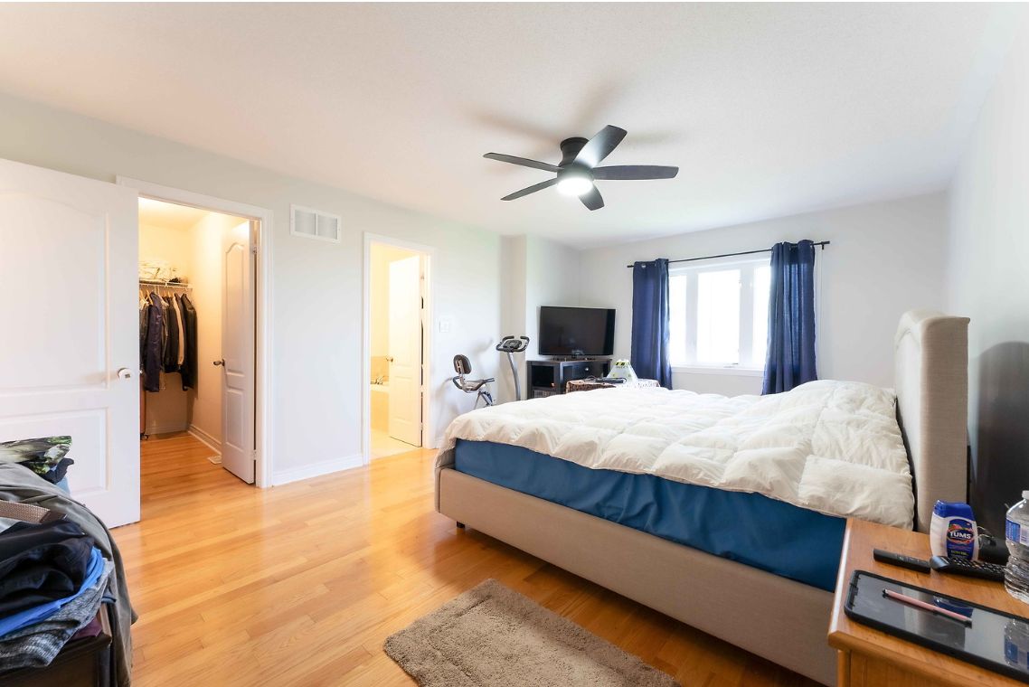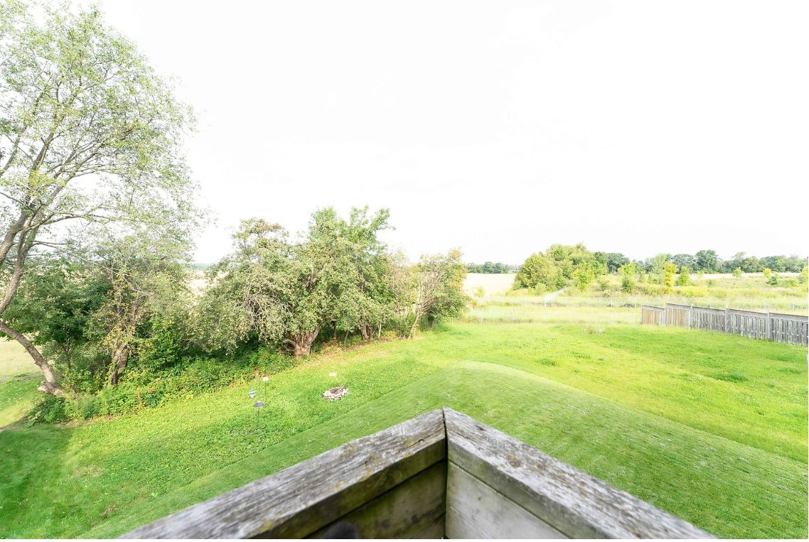 Welcome to this all brick 3 bedrooms detach link. Large and deep lot. Unobstructed rear view of sprawling farm field. 9 ft ceiling on main floor. Double front door. Direct acess to garage from foyer. 2 pc powder room on main floor. Large kitchen with breakfast area, walking out to deck. Spacious and bright family room and dining room. Master bedroom with 4 pcs ensuite bath. W/O basement with cold room.Fridge, Stove, Dishwasher, Washer & Dryer. Garage Door Opener.