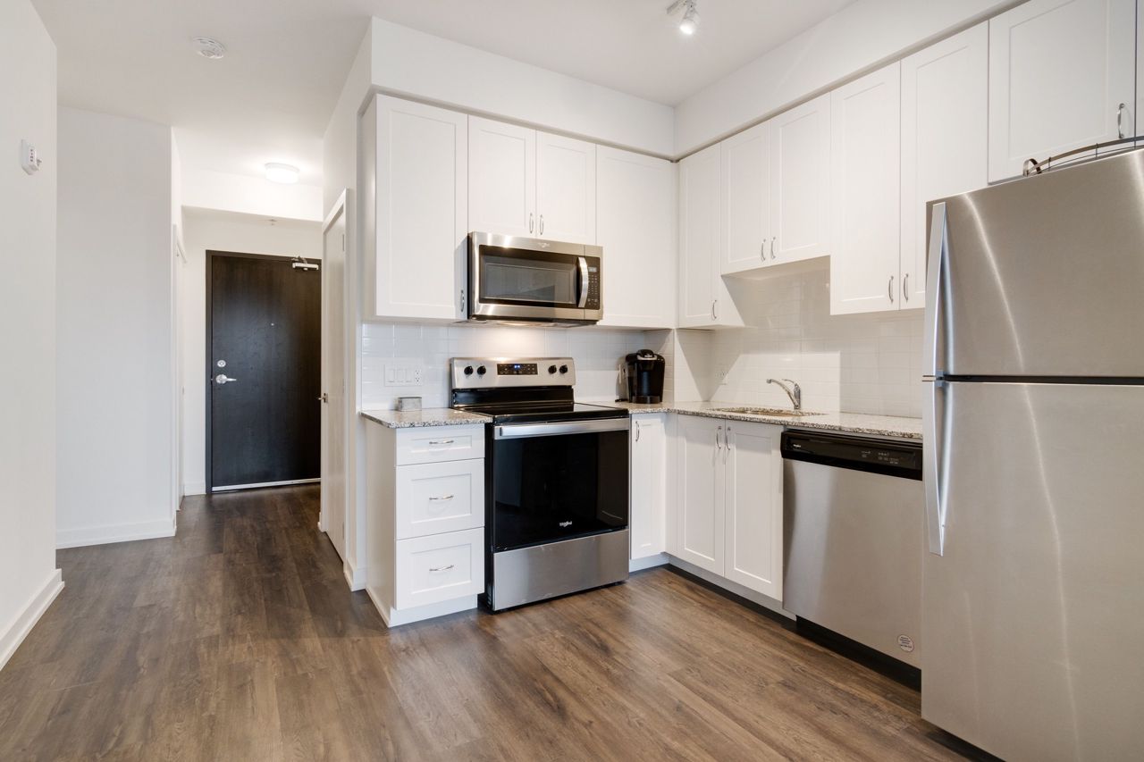 Upgraded 1 Bedroom + Den W/ 2 Full Bathrooms! This Unit Features A Large Private Terrace, Smooth Ceilings, Vinyl Flooring, Stainless Steel Appliances,Large Walk-In Closet & Much More!Hottest New Condo Building. Family Friendly Community Next To Many Shops, Built Using Steel & Concrete To Offer The Utmost Quality In Construction! Amenities Include Gym,Party Room,Outdoor Bbq Area,Electric Vehicle Charging Stations +++Stainless Steel Fridge, Stainless Steel Dishwasher, Stainless Steel Stove W/ Over The Top Range, Washer & Dryer, One Parking Space & One Storage Locker.