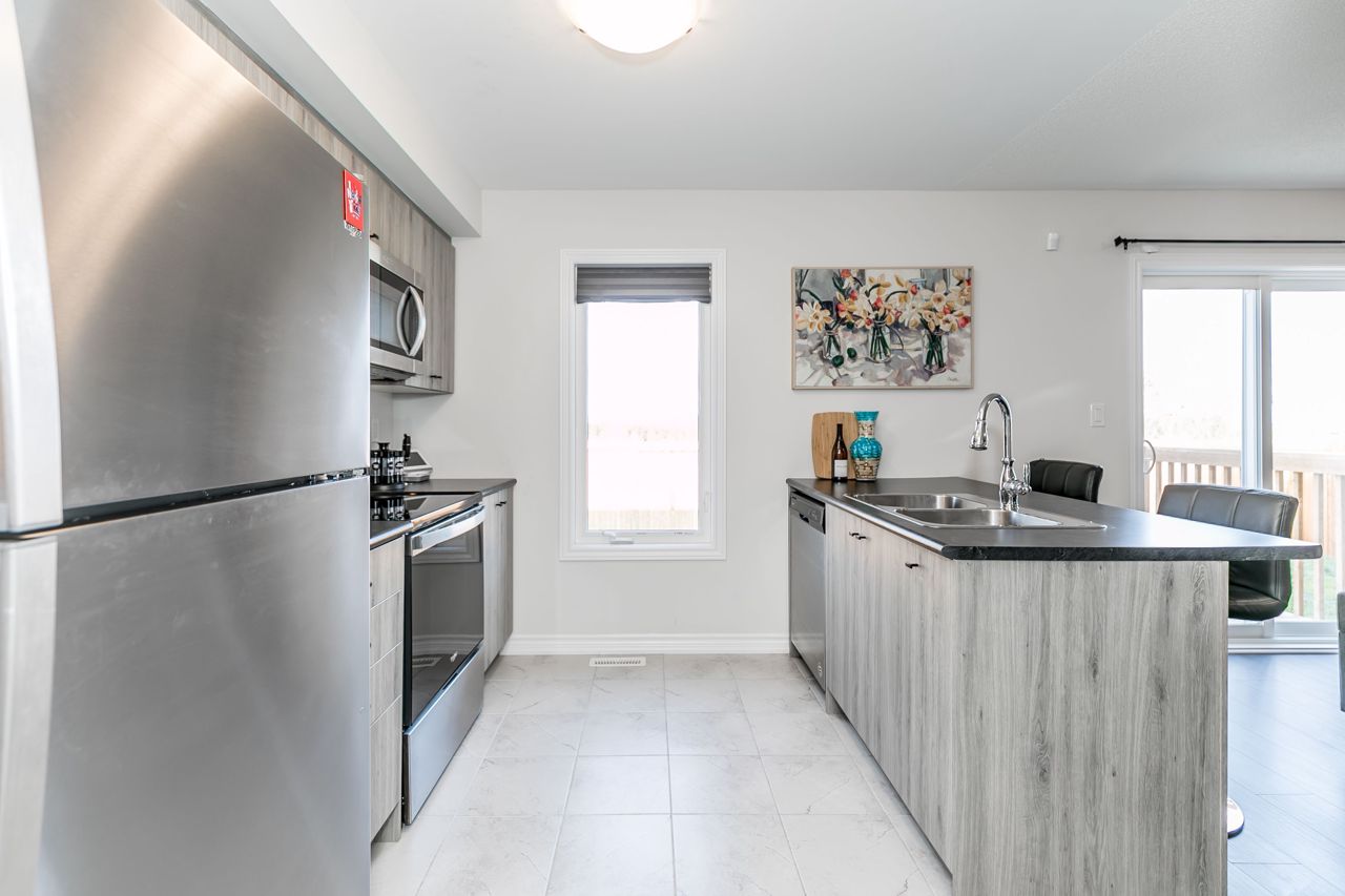 Modern Townhome in South Barrie's Bear Creek Development! Just 2.5 Years New and Immaculately Maintained by the Original Owners! Western Sunset views of Open Green Space w/ No Neighbours Behind! Spacious Main Floor w/ Open Concept Layout; Updated Kitchen, Stainless Steel Appliances, Wide Plank Flooring & Office Nook which can also be used as a Den or Dining Room. Garage Access with Mudroom & Closet! Three Spacious Bedrooms & Two with Walk In Closets! Primary Bedroom Boasts Western Views, Huge W/I Closet & En Suite Bath! Excellent Location; Mins to HWY 400, 27, Lake, Go Train, Mapleview, Park Place & Hiking Trails!Over 1,350+ Finished Sq Ft. Covered Front Porch. Automatic Garage Door Opener. Upgraded Faucets. Lots of Storage & Pantry Space! Main Floor Den. Rough In For Bath in Basement.