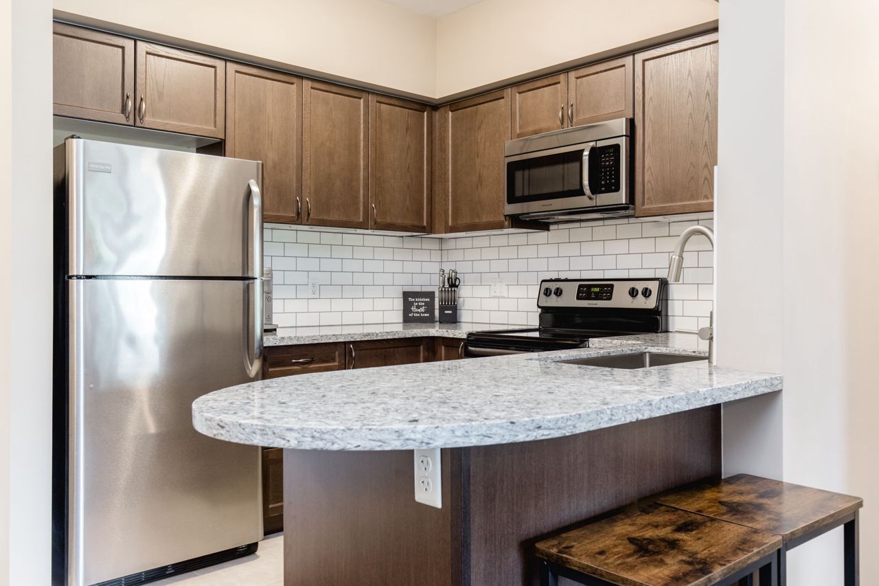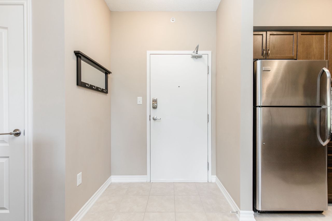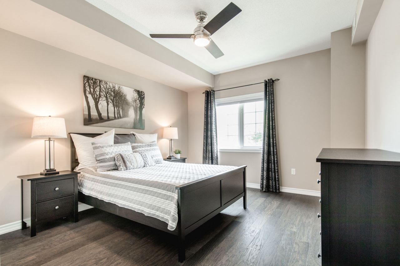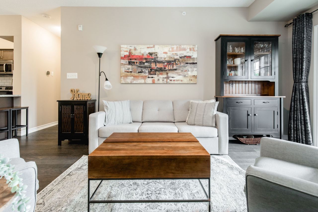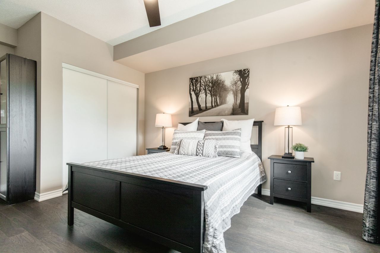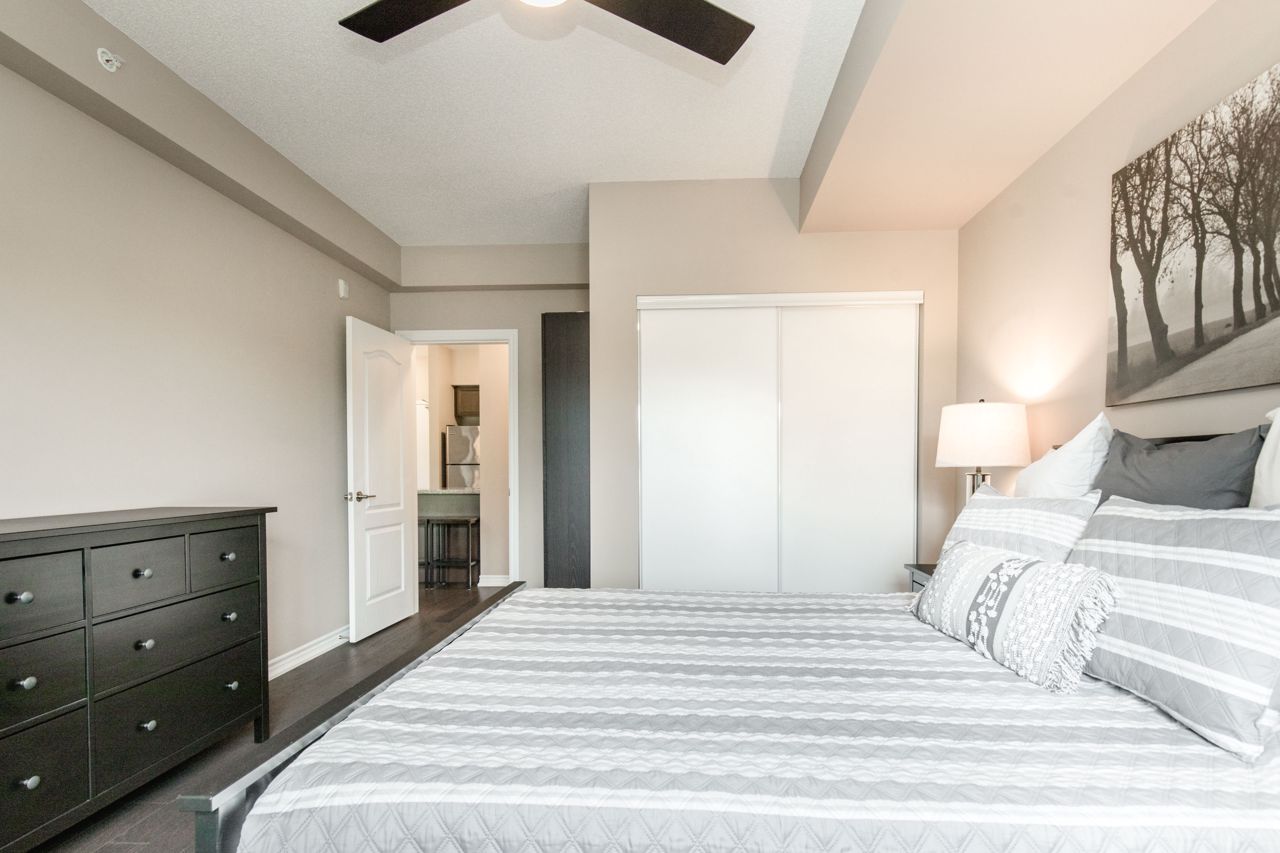The location of the condo offers easy access to Barrie's downtown area, waterfront, shopping centers, the GoTrain station, and Highway 400, making it convenient to enjoy various amenities and commute to different destinations. The 1-bedroom condo boasts an open layout, where the kitchen, living, and dining areas seamlessly blend together, creating a spacious and inviting atmosphere. The kitchen is equipped with stainless steel appliances, including a Built-in microwave, Under cabinet lighting, Stone Counter Tops and a Double under-mounted sink. The sizable balcony is accessible from the living/dining area. With an east-facing orientation, the balcony receives ample morning sunlight. Hardwood floors grace the living area and bedroom, adding a touch of elegance to the overall design. n-unit laundry facility. In terms of parking, the suite includes an exclusively owned parking space, which is located underground. Additionally, there is ample guest parking and rental spaces