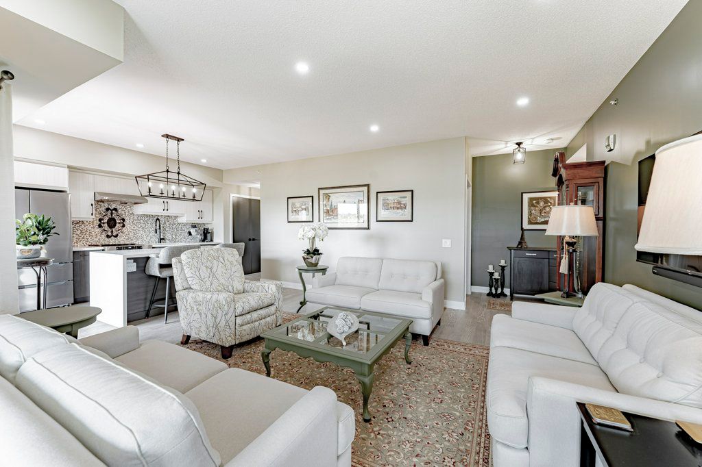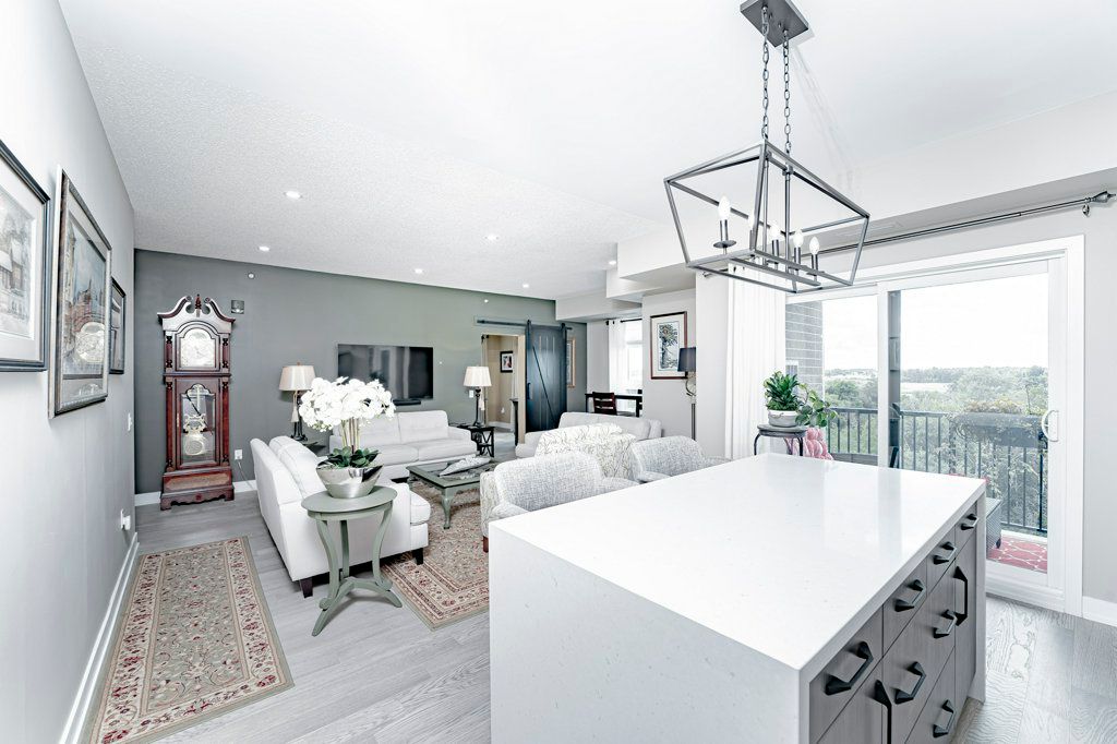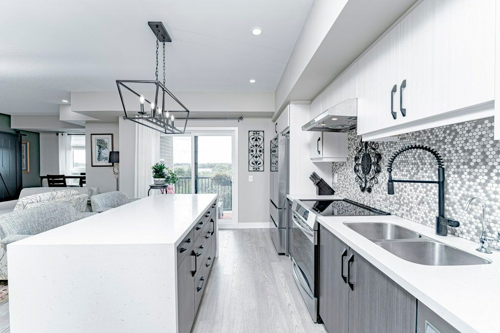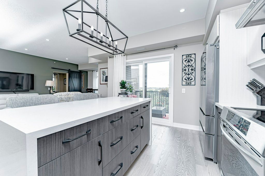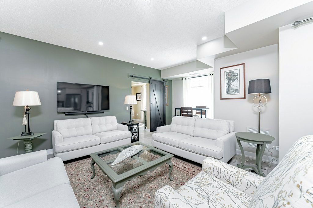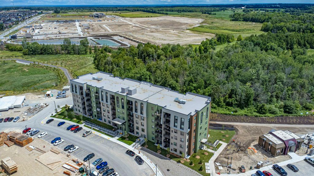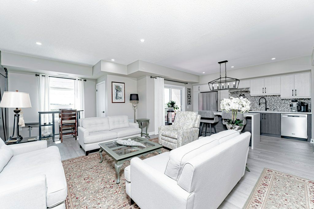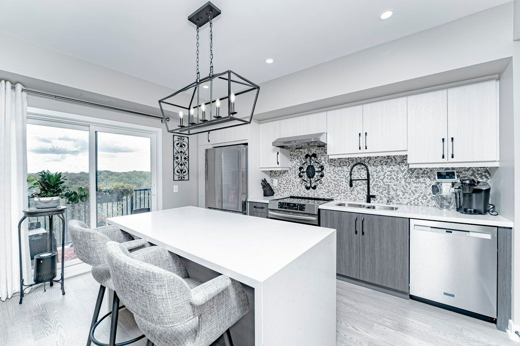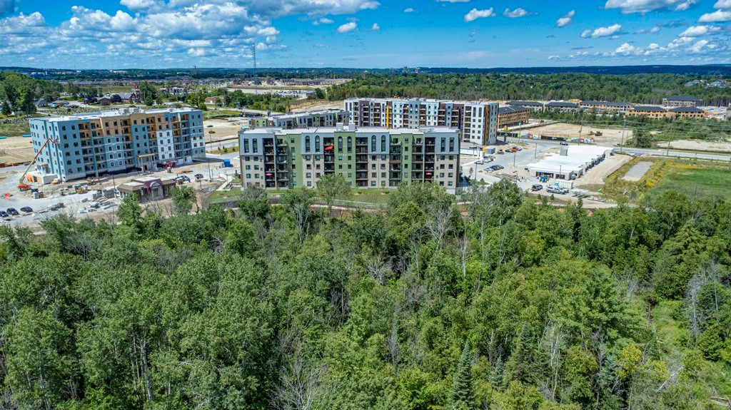 Turn Key, Top Floor End Unit Boasting 1351Sq.Ft. 3Bedrooms,2 Bath. This unit Overlooks environmentally protected forest. Open Concept Kitchen offers a Large Two-Tone Kitchen w Waterfall Centre Island Ft. Upgraded Ss Appliances, Custom BackSplash, Custom Shelf Rollouts & Hardwood Floors throughout. This Open floor plan flows Into A Generous Size Living/Dining Room Combo w large hallways and East & South Facing Windows. Relax in your spacious Primary Bedroom complete with a Walk in Closet & 3Pc Ensuite; Extended Hightop Vanity & Comfort Height Toilets is perfect for anyone with mobility issues. Motion sensor Laundry/Utility Room equipped with Full size Stackable Washer & Dryer. 1 Underground Parking Spot W Locker. Barrier Free Unit.Amenities Incl:Community Kitchen & Kitchen Library,Outdoor Wood Burn'g Pizzzaoven, Gym, Basketball Crt &Yoga.Surrounded By Environmentally Protected Land & Hiking Trails.Mins To Go Train & Barrie Transit