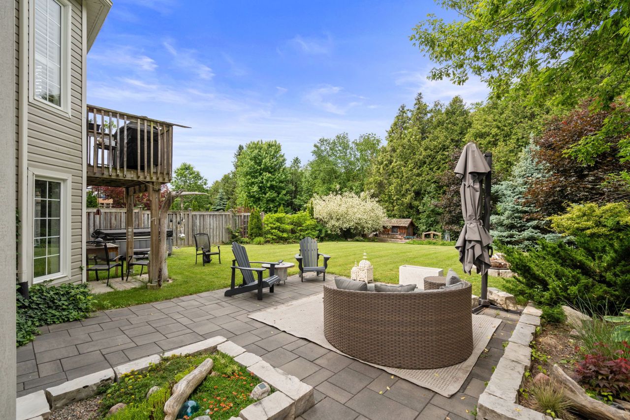 Welcome to this stunning home with over 4,300 sqft of luxurious living space and offers the unique potential to become a multi-generational haven. With a fully finished walk-out basement already roughed-in for a second kitchen, it's ideal for creating an in-law suite or separate living space for extended family. Set on a peaceful cul-de-sac & backing on to a RAVINE in South East Barrie, the home features stunning hardwood and ceramic flooring, soaring 9 ft ceilings, and modern updates throughout. The main floor includes a spacious living room with an electric fireplace and a striking stone accent wall, offering the flexibility to serve as a formal dining area or a cozy gathering space. The expansive kitchen, complete with stone countertops and a large dining area, opens to a deck overlooking the private yard, creating a seamless indoor-outdoor flow as well as open to the large & bright family room. A home office, powder room, and laundry room with access to the double car garage complete the main level. The fully finished walk-out basement is a standout feature, designed for flexibility with two separate entrances, a kitchen rough-in, and an expansive living space. It includes a large, bright living area, a den currently used as a home gym, a sizable bedroom, and a modern 3-piece bathroom with a walk-in shower. This level is perfect for extended family, creating an independent living space, or even rental potential. Step outside to discover the huge 150' deep backyard, which backs onto a serene ravine, offering a tranquil retreat. Imagine transforming this space into your own backyard oasis with room for gardens, an outdoor kitchen, or a pool, all with the privacy of a natural backdrop.Located just steps from Hyde Park Elementary, one of Barrie's top-rated schools, and nestled in a prestigious neighborhood, this home is perfect for families or those looking for a property with space, flexibility, and endless potential.