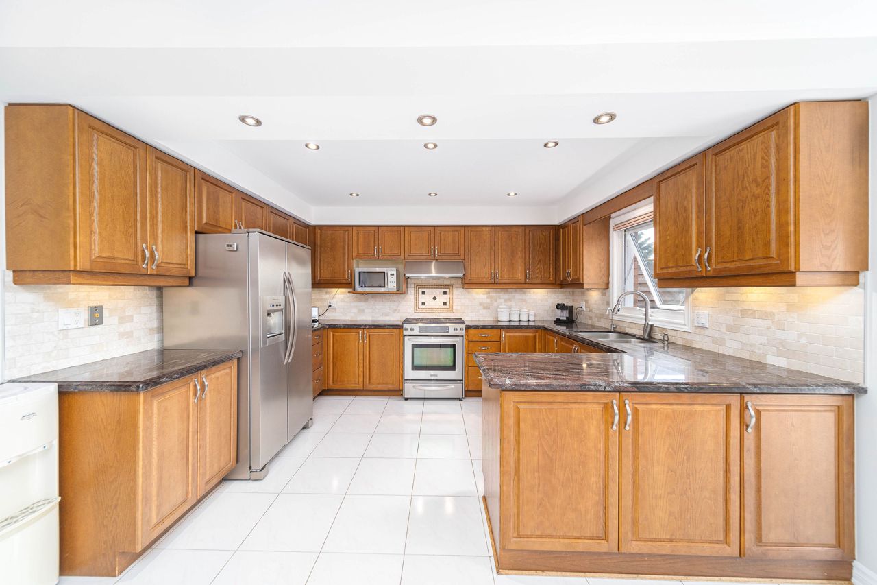 Welcome To This Spacious Detached All Brick Home With 4800 Sqft Of Fully Finished Living Space, Showcasing 4+1 Large Bedrooms, And 3.5 Bathrooms. Recent Upgrades Include A New Roof (2023), Newer Windows, Doors, Furnace, And Air Conditioner (2014). The Interlock Driveway Accommodates 4 Cars And The Garage Provides An Additional 2. Inside, You'll Discover A Gourmet Kitchen With A Walk-Out To A 485 Sq Ft Deck Offering Stunning Views. Enjoy Formal Dining, Living Room, And Family Room With Two Gas Fireplaces. Convenience Is Key With Two Laundry Rooms (Main Floor And Basement). The Basement Features An Inviting In-Law Suite With A Kitchenette, Bathroom, Bedroom And A Second Laundry, With A Walk-Out To The Yard. A Quiet Crescent Right Across The Street From Park. This Well-Maintained Home Is A Perfect Blend Of Elegance And Functionality, Offering Comfort And Style In Every Corner. Don't Miss The Chance To Make It Yours!