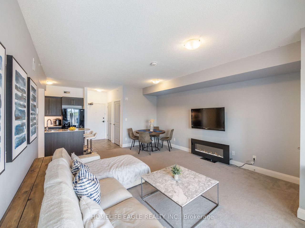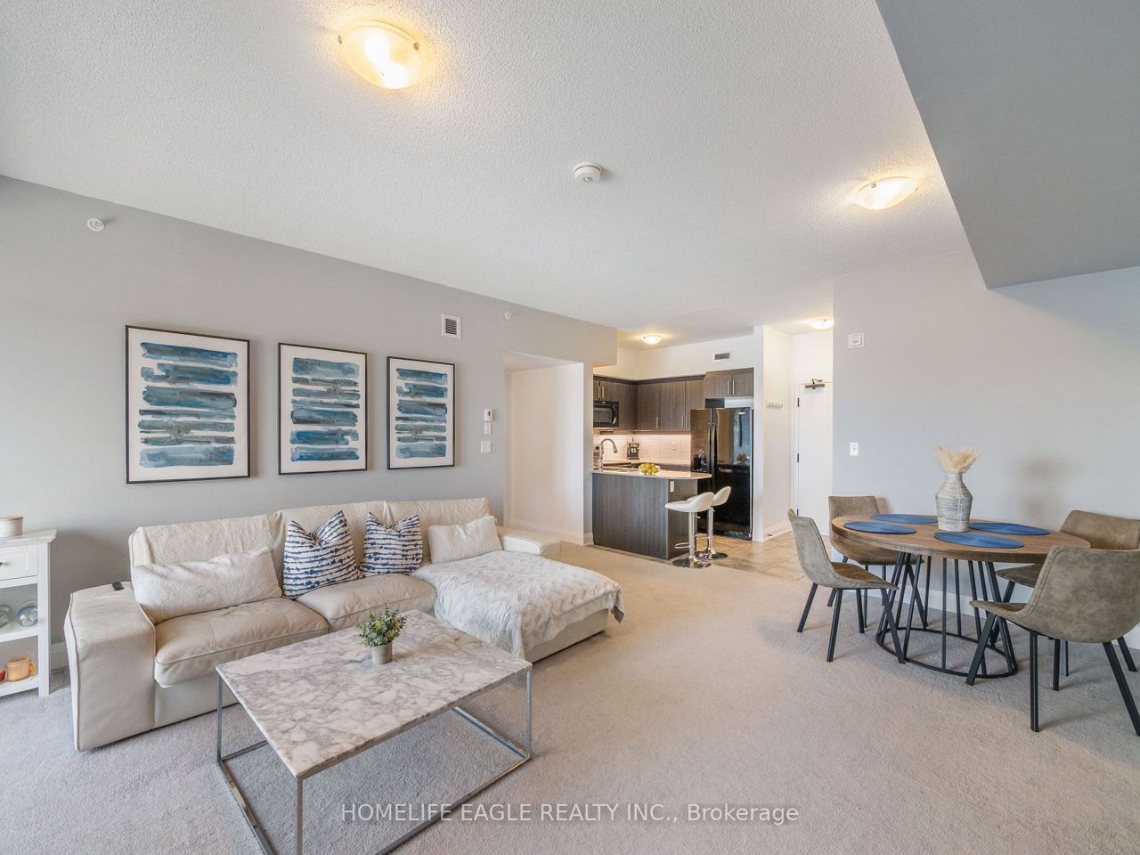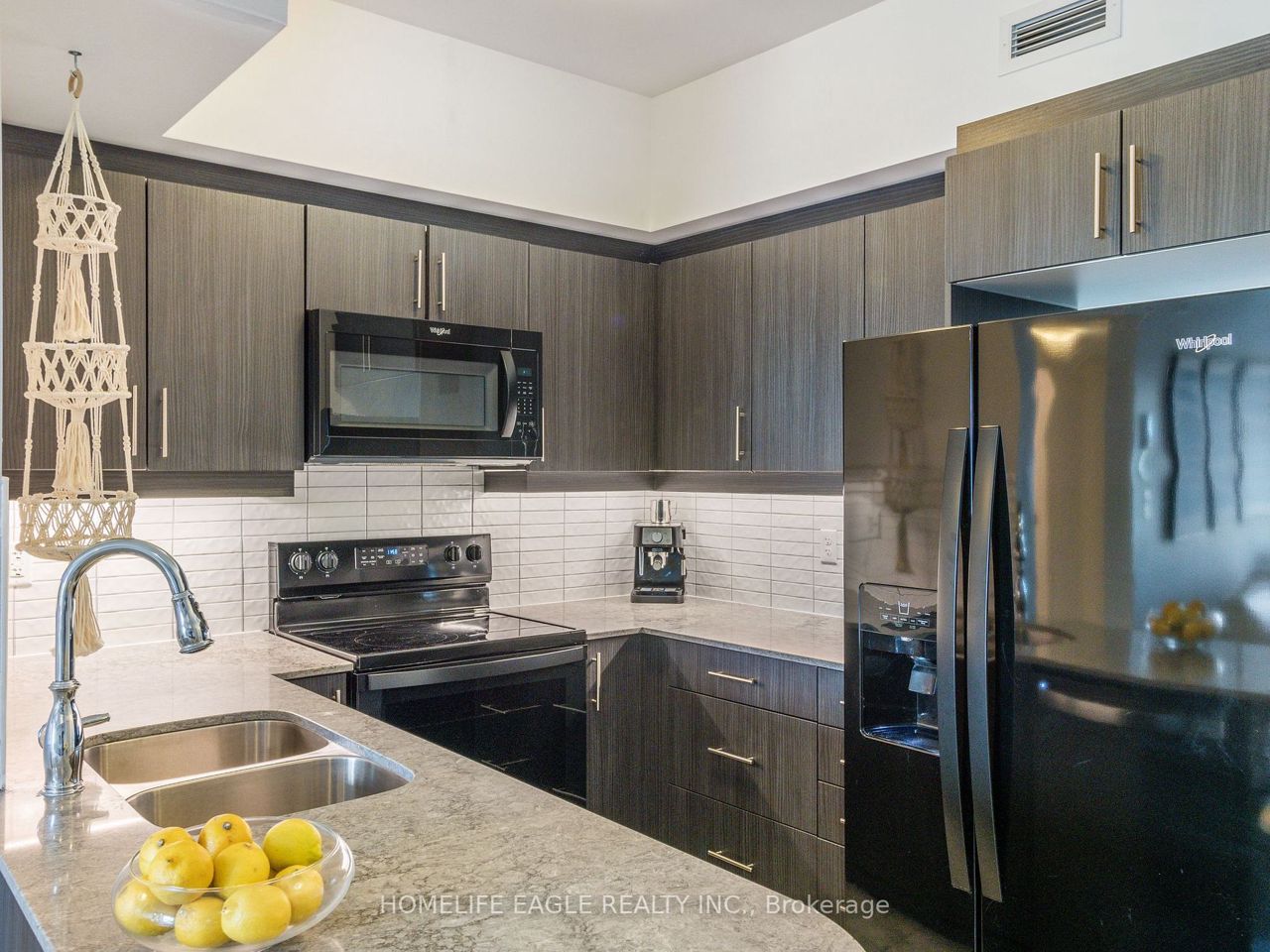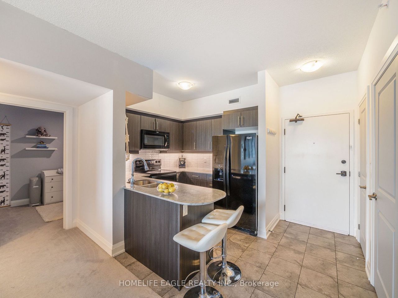 Perfect 1+1 Bedroom Condo Apartment * Premium Clear View N/ Unobstructed View * Bright & Spacious Open Concept Living/Dining W/Walk-Out To Large Balcony * Gourmet Kitchen W/ Subway Tiles + Granite Counters + Undermount Double Sink W/ Executive Faucet + Dark Grey Modern Cabinets & S/S Appliances * Primary Bedroom W/W/I Closet & Custom B/I Shelves * Den Can Be Used As Nursery/Office * Close To Hwy, Shops, Schools & More!
