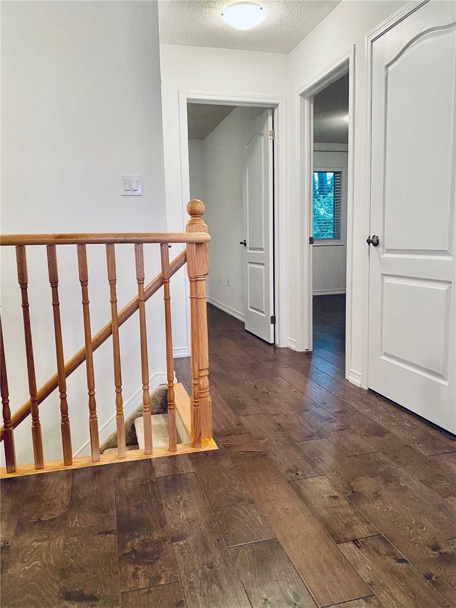One Year Old, 1233 Square Feet, 3 Bedroom Freehold Showpiece In Desirable Allandale Location! Perfect Commuter Location Minutes To Hwy 400 & Walking Distance To Go Train & Near All Amenities/Parks/Library/Beach! Rug Free (Except Steps To Top Floor), Ceramic Floors In Baths & Foyer Thru To Kitchen, Quality Laminate In Great Room & All Bedrooms/Upper Hallway, 3 Good Size Bedrooms Including Large Master W/Semi Ensuite, Convenient Top Floor Laundry ++ Eat In Kitchen W/Quality Appliances,Walkout From Kitchen To Nice Deck, Unspoiled Bsmt W/Oversize Window,High Eff. Furnace, A/C, Garage Door Opener, Fridge/Stove, Dishwasher,Built In Microwave,Washer/Dryer,Window Coverings