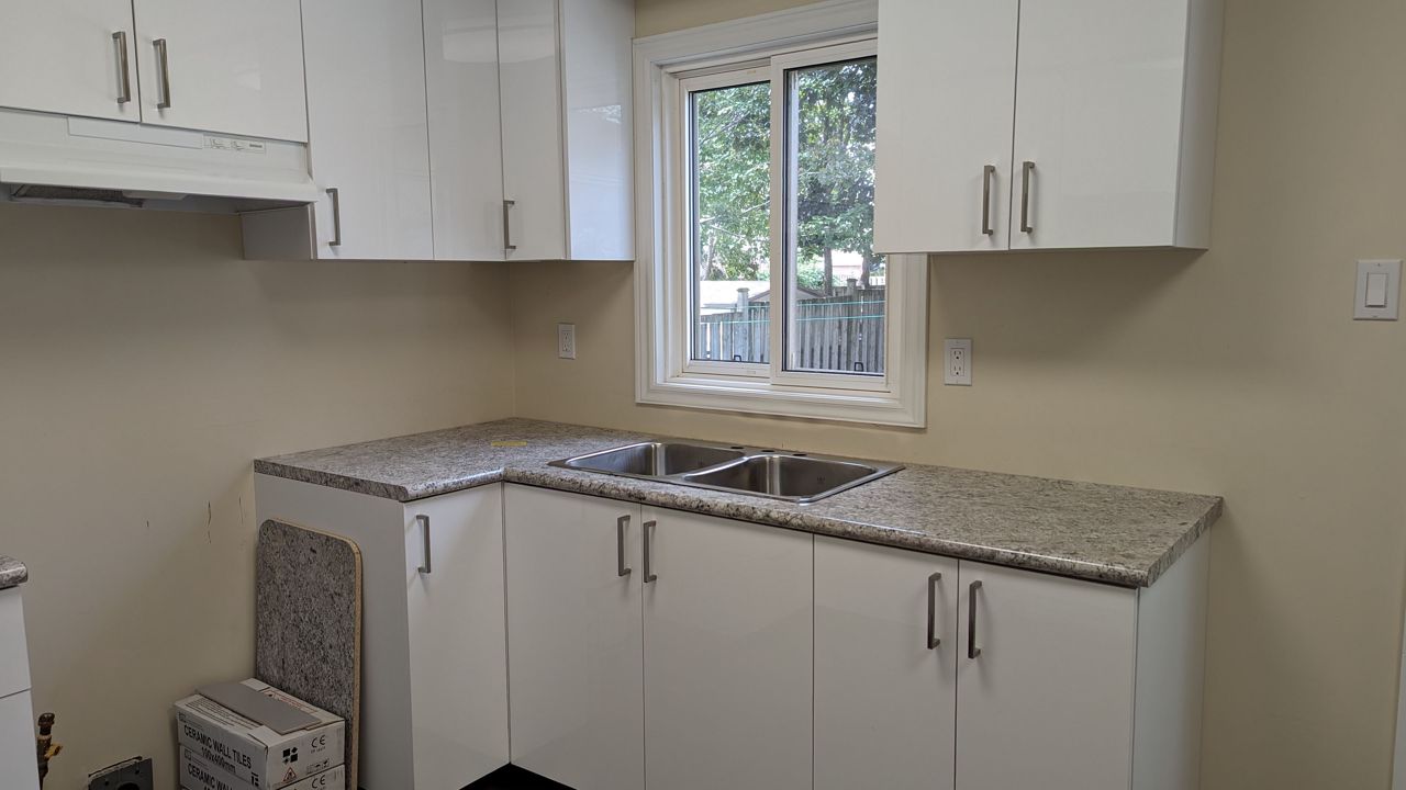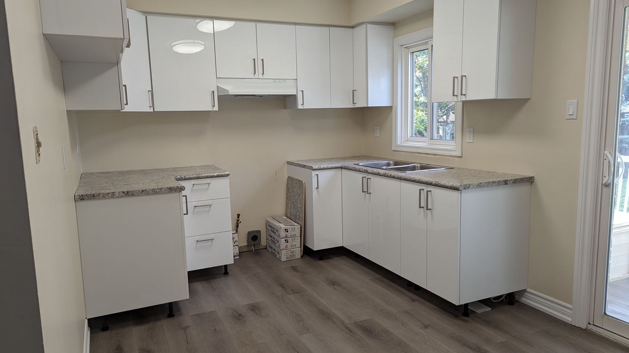 Incredible first time buyer or investment property. 2 story brick home with 3+1 bedrooms, 1 1/2 baths. Large eat-in kitchen shows new . Main floor and upper floor is completely renovated with new cabinets, counters, flooring, light fixtures, interior doors. Bathrooms also completely renovated with new cabinets, all fixtures. Bright sun-room off of kitchen opening to private fenced yard. This home has mostly finished basement with a 4th bedroom, study and rec-room plus extra large, bonus storage area. In prime area close to schools. Within short walking distance to major shopping plaza and malls. On bus route and direct highway access. Kitchen backsplash, counters, and bathroom tile will be completed