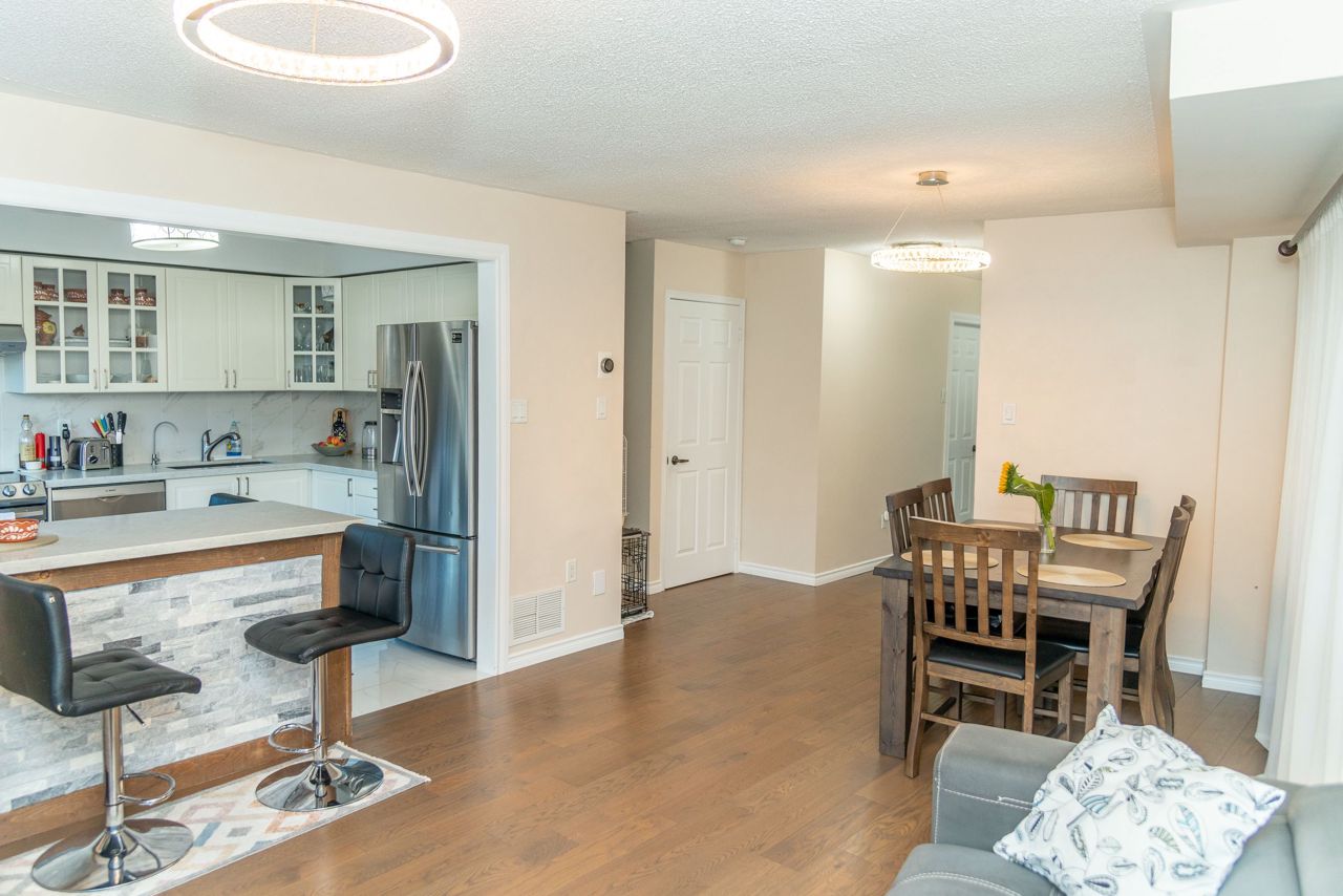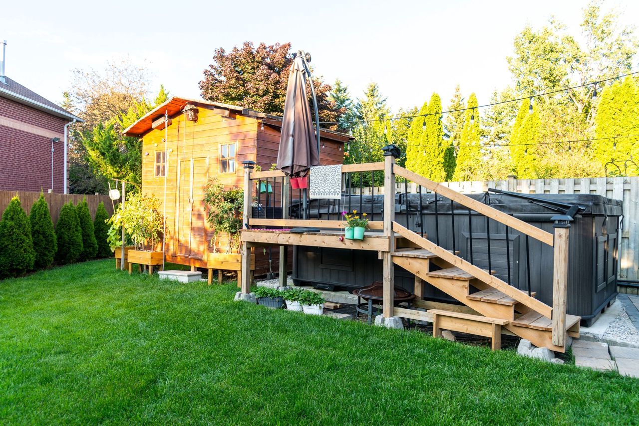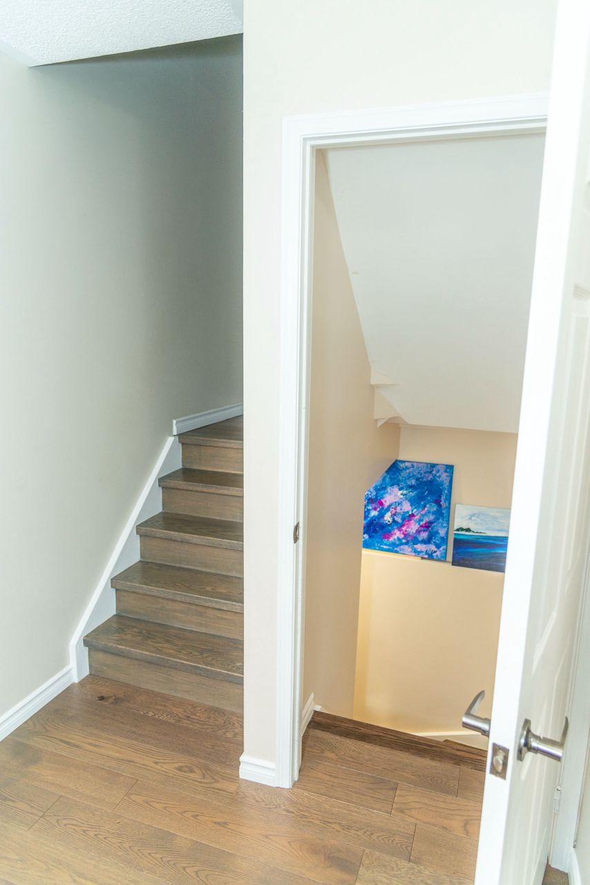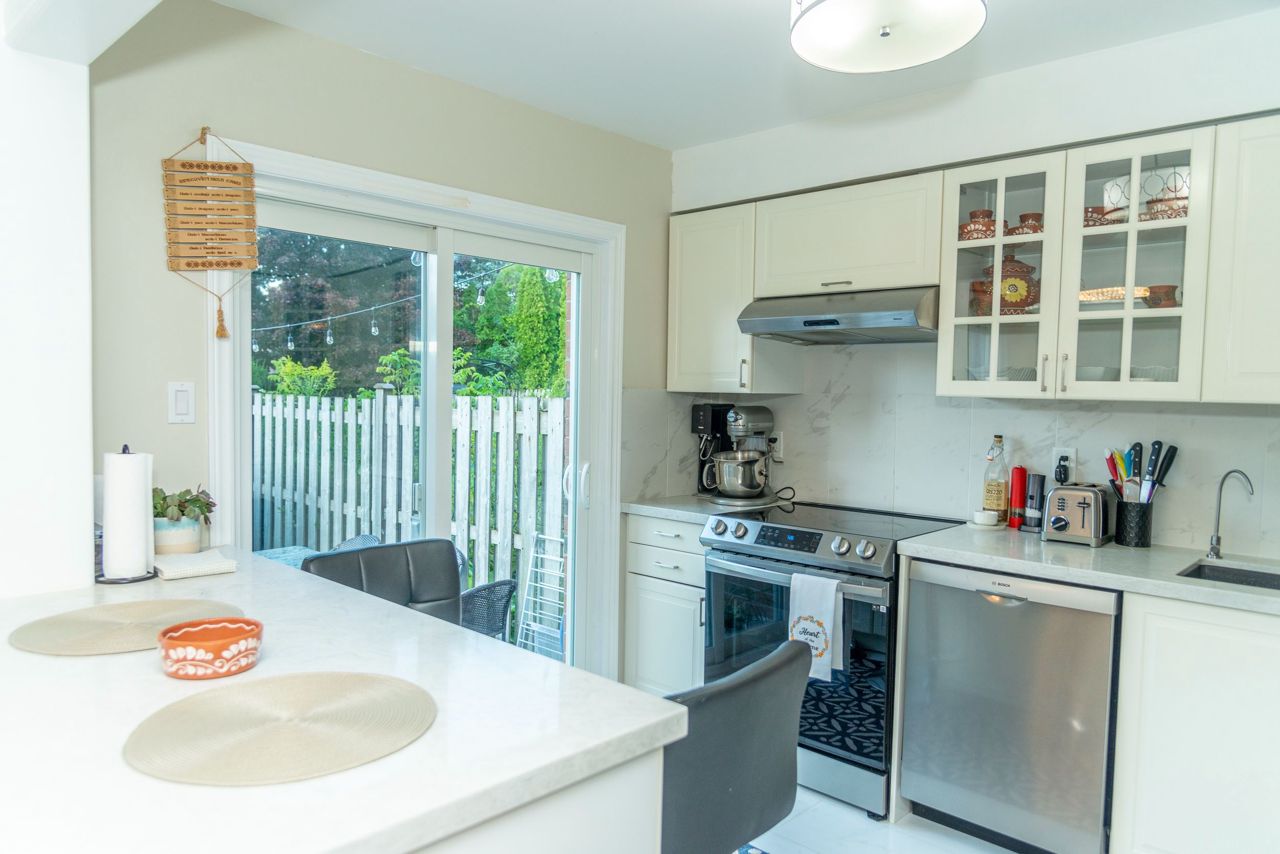 Renovated top to bottom Corner Townhouse. Roof 2018, all Bathrooms 2020, Hardwood Floors 2020, Kitchen 2020, Quartz Countertops, all Repainted 2019, Swim Arctic Spa 2022 cost 45,000 (4 year warranty left), Solid Wood Shed built in 2018, Interlock driveway and patio 2021, Garage Door 2021, Stove/Fridge/Washer/Dryer 2022, Dishwasher 2020, all new Light Fixtures, Smart Thermostat, NEST doorbell and Keyless entry, Outdoor Security Cameras. Steps to Shopping, Quick Access to 400, Located on a Quiet Crescent.