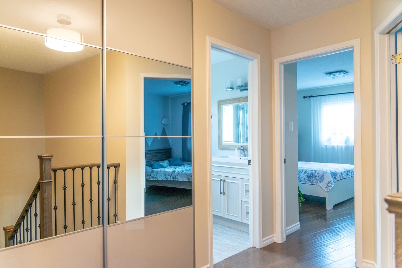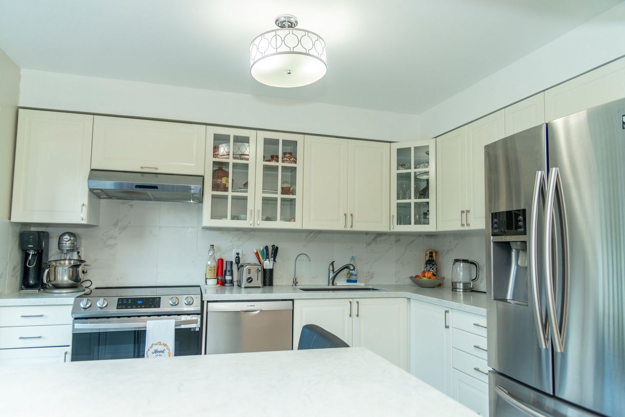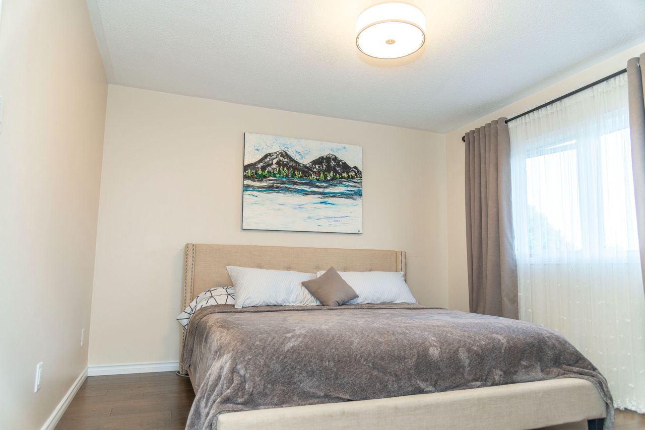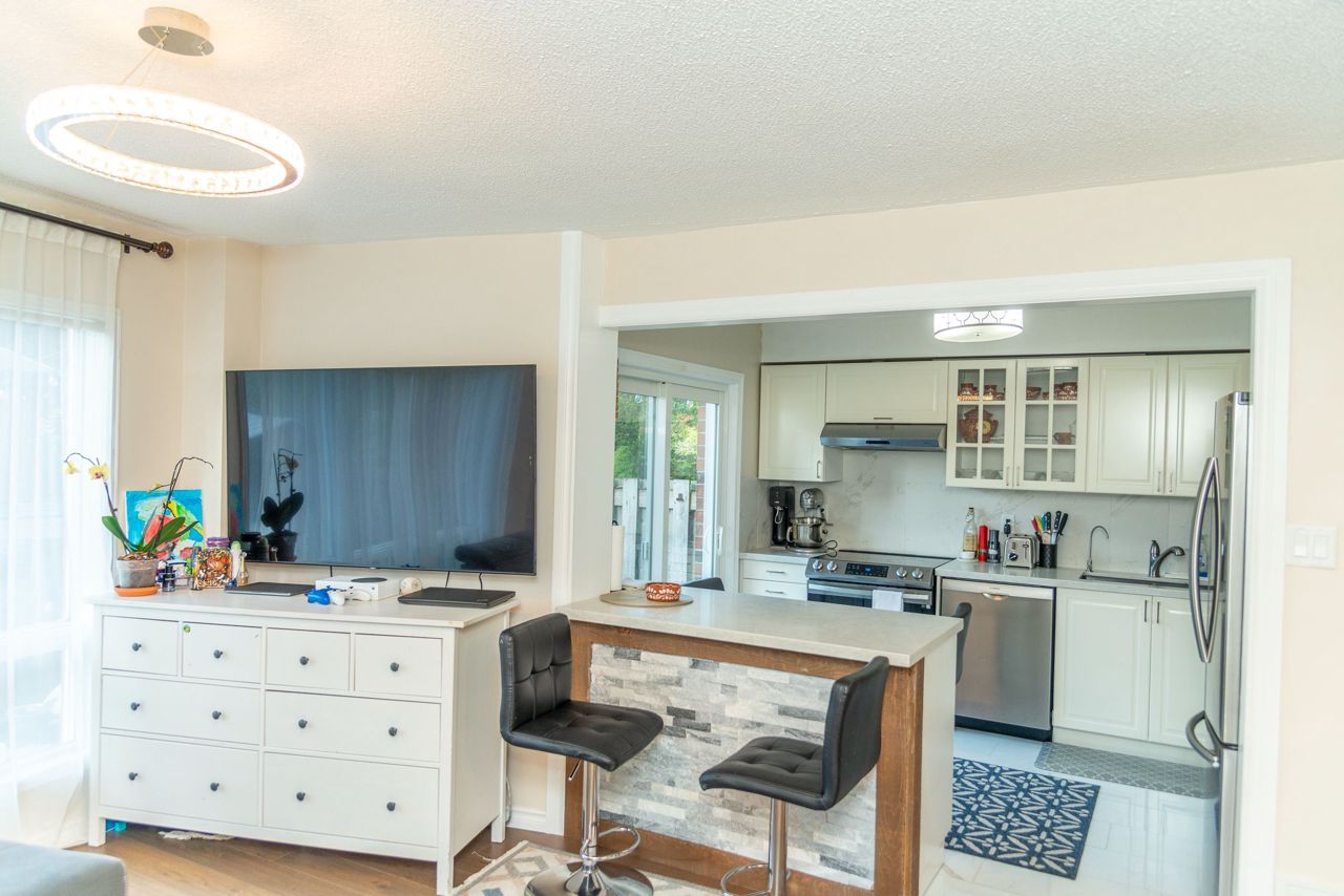 Renovated top to bottom Corner Townhouse. Roof 2018, all Bathrooms 2020, Hardwood Floors 2020, Kitchen 2020, Quartz Countertops, all Repainted 2019, Swim Arctic Spa 2022 cost 45,000 (4 year warranty left), Solid Wood Shed built in 2018, Interlock driveway and patio 2021, Garage Door 2021, Stove/Fridge/Washer/Dryer 2022, Dishwasher 2020, all new Light Fixtures, Smart Thermostat, NEST doorbell and Keyless entry, Outdoor Security Cameras. Steps to Shopping, Quick Access to 400, Located on a Quiet Crescent.