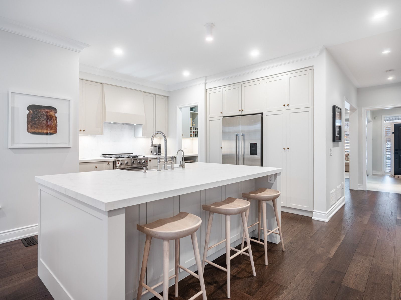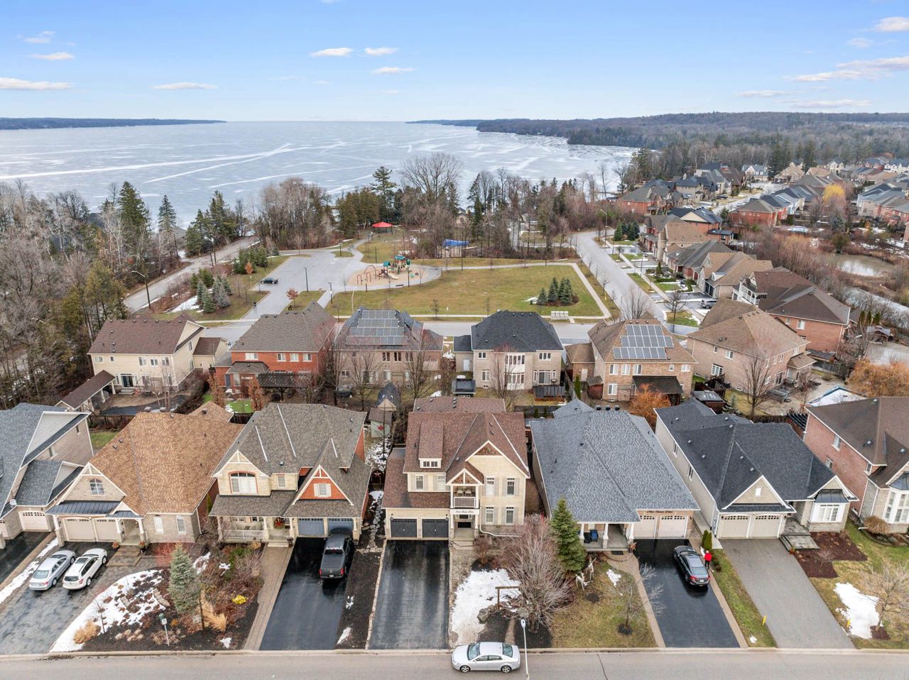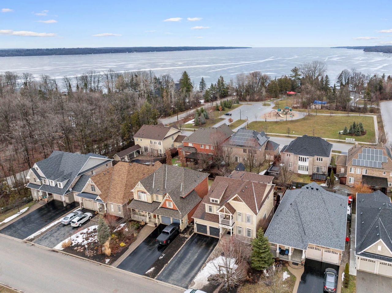 Welcome to this stunning & sophisticated 2-storey executive residence complete w top-of-the line 5-star finishes throughout. Custom, contemporary craftsmanship on a quiet child-friendly street in an elite enclave less than a 5 minute walk to the beach & fabulous parks. The renovated eat-in chefs kitchen w massive centre island, Italian porcelain countertops & floor2ceiling cabinetry is the heart of this open-concept great room flowing seamlessly into the superb family room, complete w picture windows & stone fireplace; perfect for casual entertaining. The kitchen leads to a private, professionally designed backyard w tiered deck & perennial garden. Garage door entry to mud room great for muddy boots & pets. The spacious primary bedroom w view to the lake features a spa-like renovated ensuite w heated floors, stand-alone luxurious soaker tub & walk-in shower. Versatile loft! The expansive lower level w walk-out is ready for play dates, work-outs & working from home. Ample storage.Above avg Home Inspection available. See floor plan & Feature Sheet attached noting numerous upgrades & inclusions. Highly rated Algonquin Ridge Elementary school. Mins to the amazing Tyndale park & beach, Tollendal Village, hiking trails.