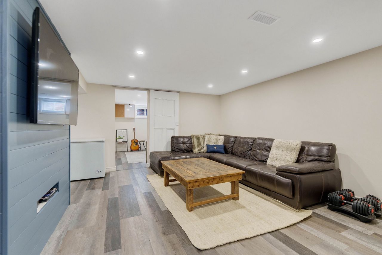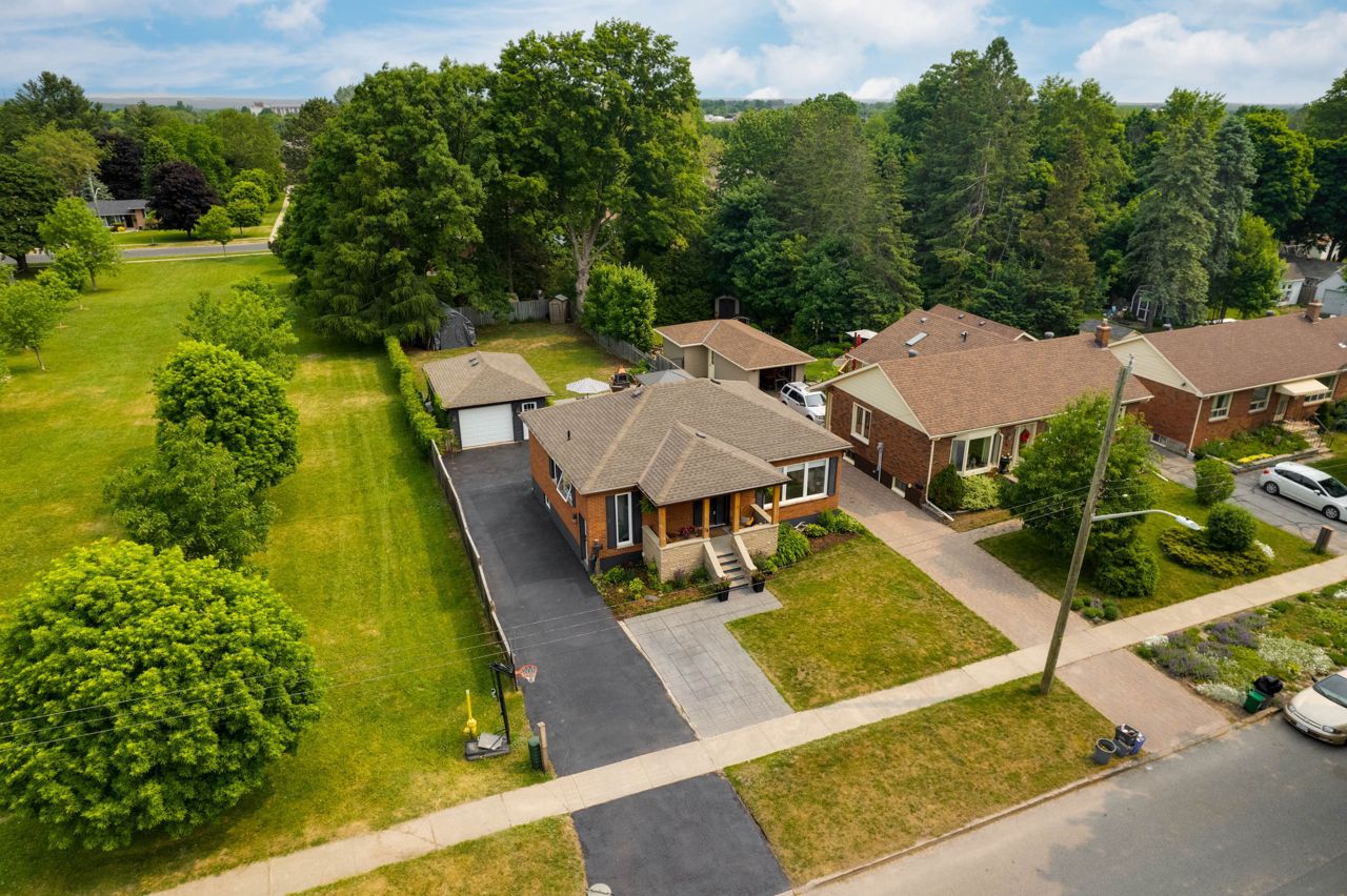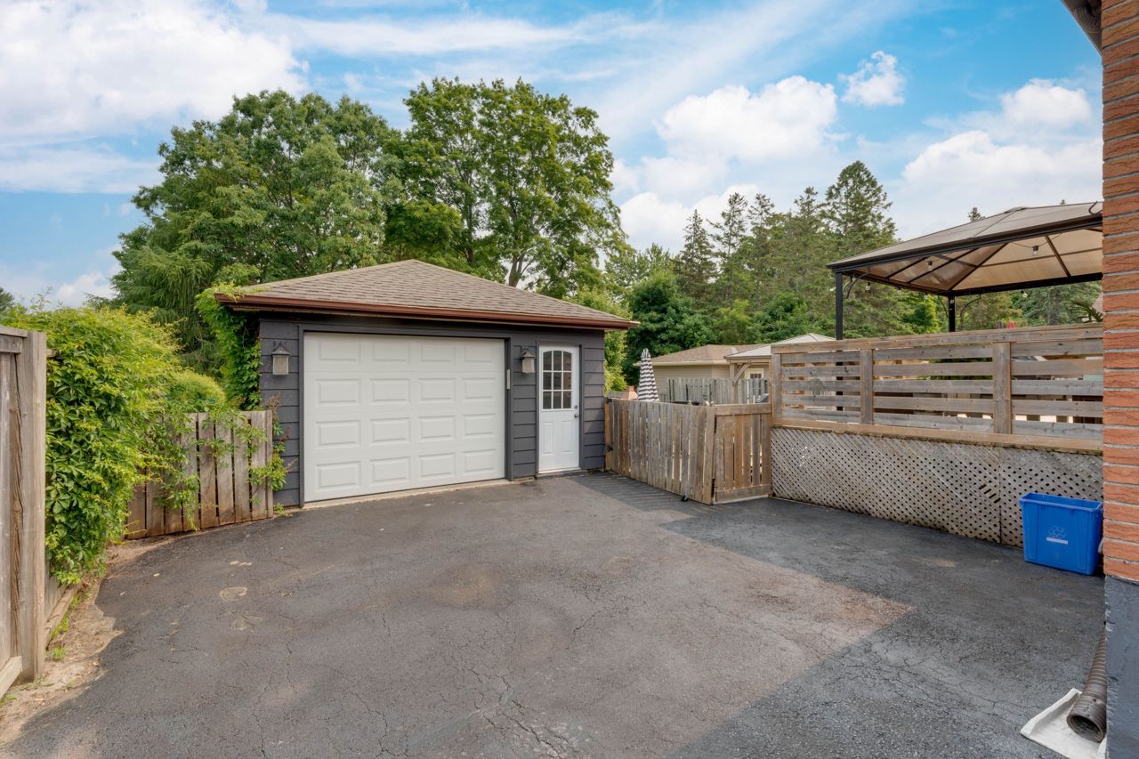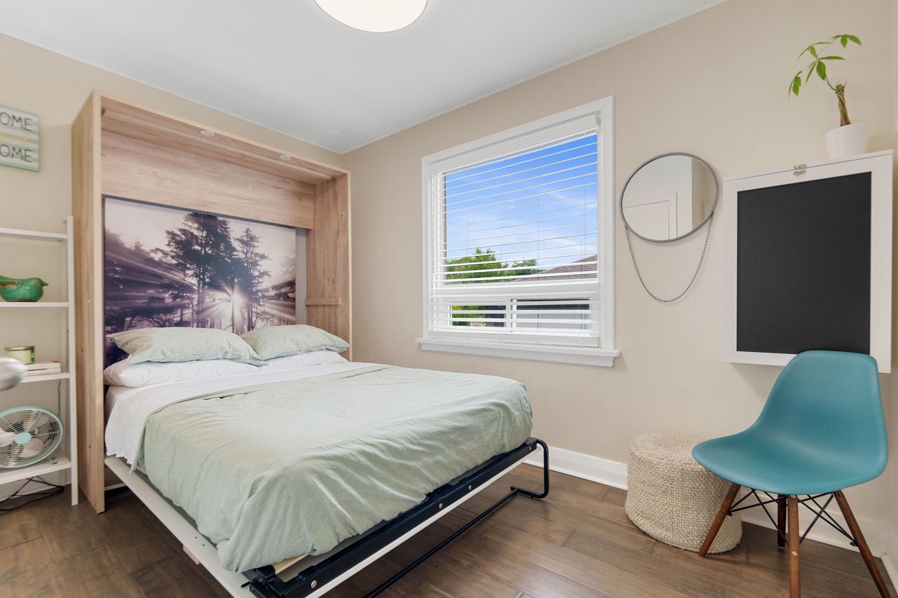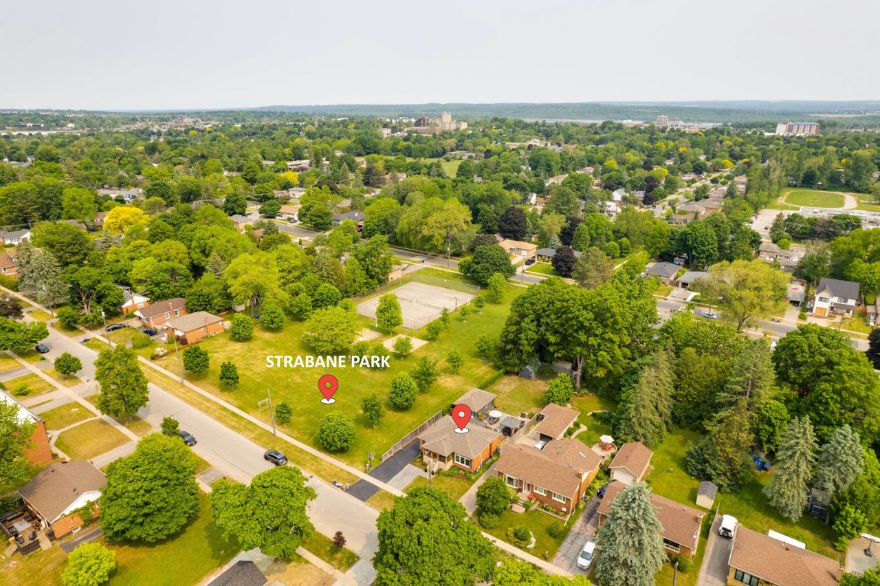 Beautifully renovated from top to bottom this raised bungalow is located on one of Barrie's very sought after East-End streets, next to Strabane Park and backing onto mature trees. The new porch and front door welcomes you into the spacious open concept kitchen; a chef's dream with all white cabinetry, black hardware and quartz countertops, complete with stainless steel appliances and a breakfast bar. Open to the kitchen is the airy and bright living room with a floor to ceiling picture window, which leads onto the dining area and walk-out to the rear deck. The primary and 2nd bedroom are served by an immaculate white and black accented 3 piece bathroom. The 2nd bedroom is multi-functional with a built-in murphy bed and foldaway desk ideal for working from home or tucking away for guests not wanting to leave. The basement with separate entry was fully reno'd in 2019 offering spacious family room, 2 additional bedrooms both with windows and a 4 pc ensuite with oversized shower.Updates include: engineered hardwood floors (2017), mostly all new windows (2021), new exterior doors including garage, shingles (@2016), furnace (2019), basement reno (2020).