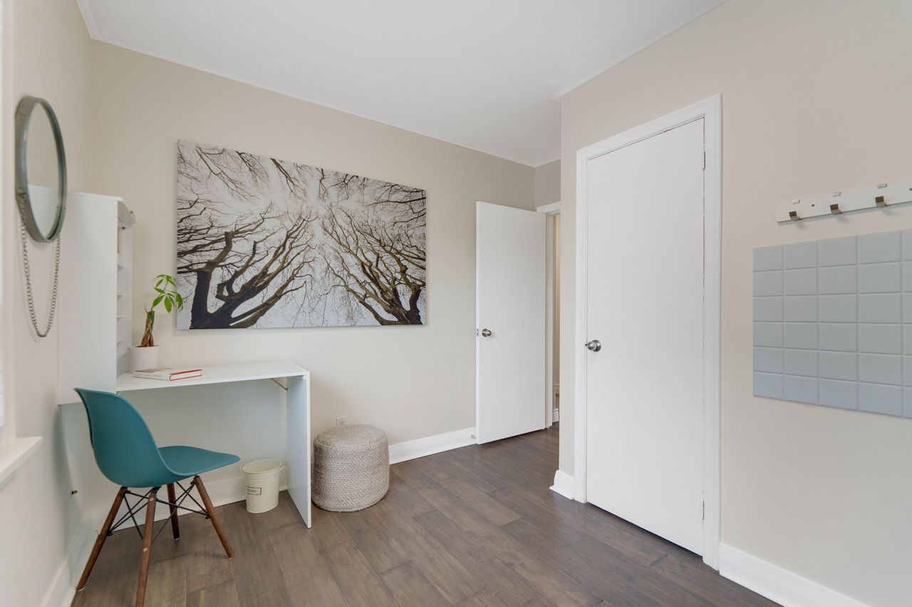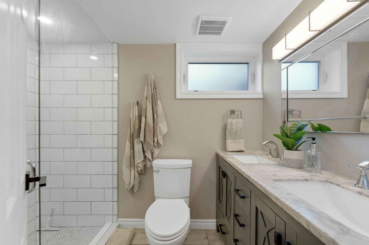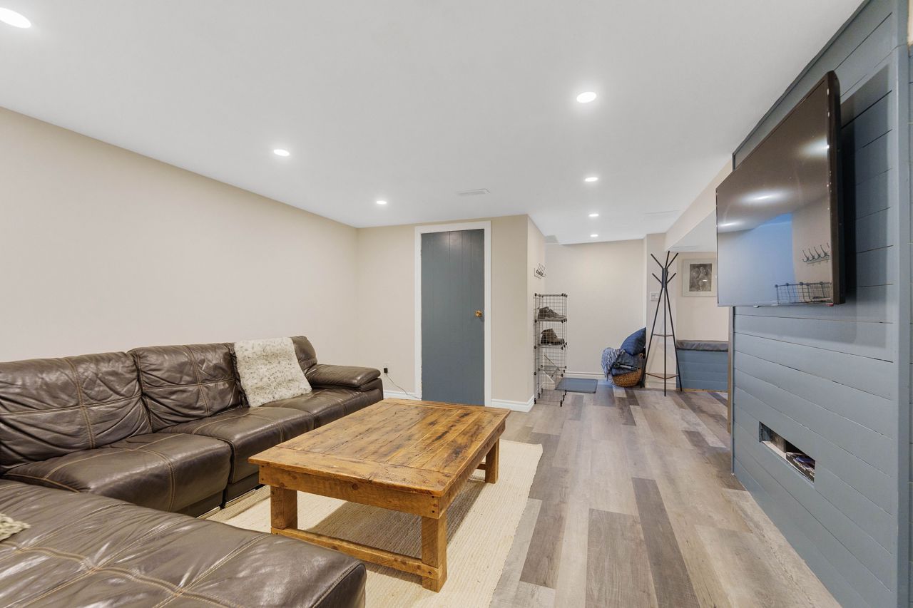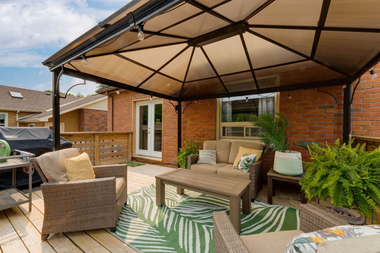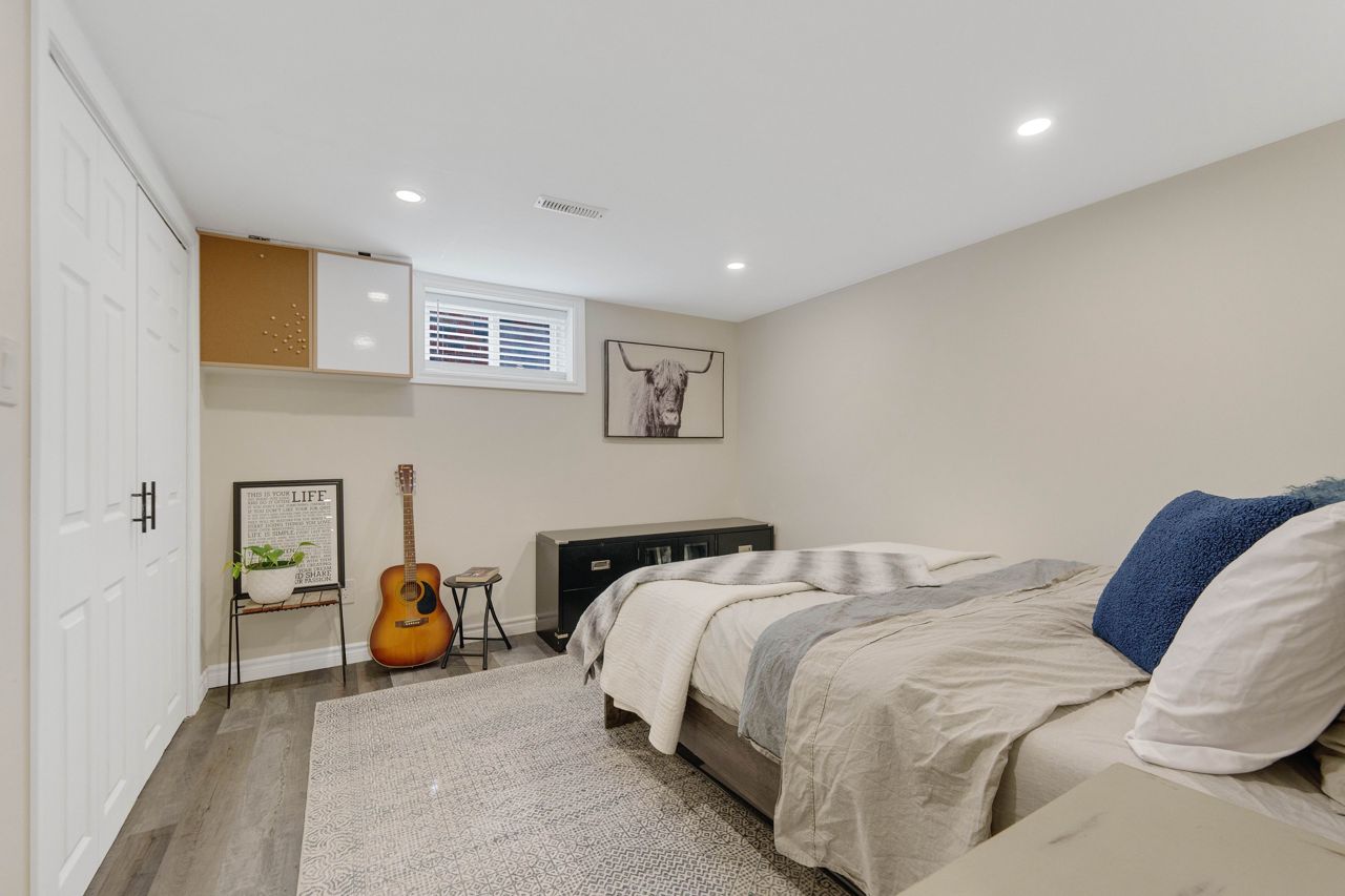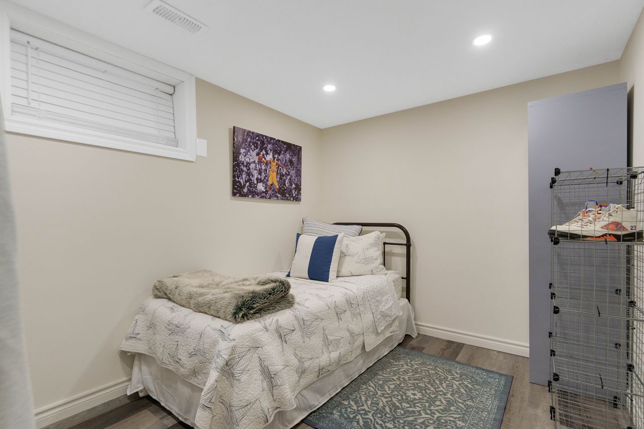 Beautifully renovated from top to bottom this raised bungalow is located on one of Barrie's very sought after East-End streets, next to Strabane Park and backing onto mature trees. The new porch and front door welcomes you into the spacious open concept kitchen; a chef's dream with all white cabinetry, black hardware and quartz countertops, complete with stainless steel appliances and a breakfast bar. Open to the kitchen is the airy and bright living room with a floor to ceiling picture window, which leads onto the dining area and walk-out to the rear deck. The primary and 2nd bedroom are served by an immaculate white and black accented 3 piece bathroom. The 2nd bedroom is multi-functional with a built-in murphy bed and foldaway desk ideal for working from home or tucking away for guests not wanting to leave. The basement with separate entry was fully reno'd in 2019 offering spacious family room, 2 additional bedrooms both with windows and a 4 pc ensuite with oversized shower.Updates include: engineered hardwood floors (2017), mostly all new windows (2021), new exterior doors including garage, shingles (@2016), furnace (2019), basement reno (2020).