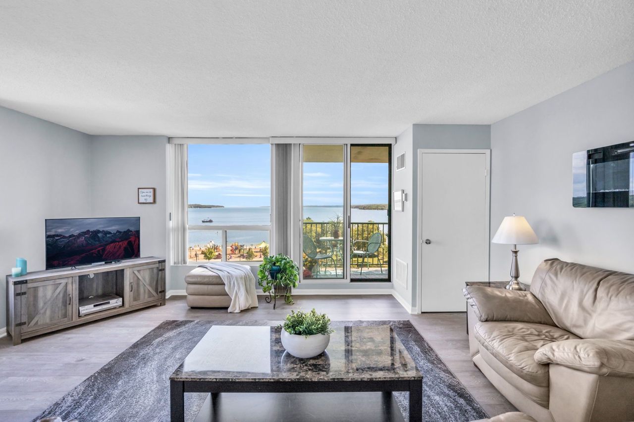 Experience The Ultimate Maintenance-Free Waterfront Lifestyle In This Stunning 2-Bedroom, 2-Bathroom Condo, Offering Breathtaking Panoramic Views Of Kempenfelt Bay And Downtown Barrie. This Modern Unit Features Newer Stainless Steel Appliances, Plenty of Storage, In-Suite Laundry, 2 Underground Parking Spots, Plus A Spacious Locker For Your Convenience. Located Just Steps From The Allandale GO Station, Centennial Beach, And A Brisk 15-Minute Walk To Barrie's Vibrant Downtown, You'll Enjoy Easy Access To The Farmer's Market, Festivals, And Waterfront Trails. Perfect For Avid Runners, Cyclists, And Walking Enthusiasts, With Quick Access To Hwy 400 And All Essential Amenities. The Building Is Packed With Amenities, Including An Indoor Pool, Hot Tub, Fully-Equipped Gym, Sauna, Party Room, Guest Suite, Bike Storage, And On-Site Security. Come And Be Amazed By The Breathtaking Views Of Lake Simcoe And Vibrant Community. This Is More Than A Home, It's A Lifestyle!1098 Square Feet. 2 Underground Parking Spots & Locker Included!