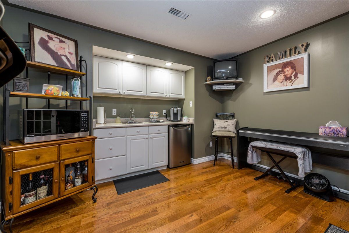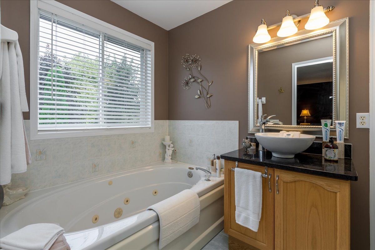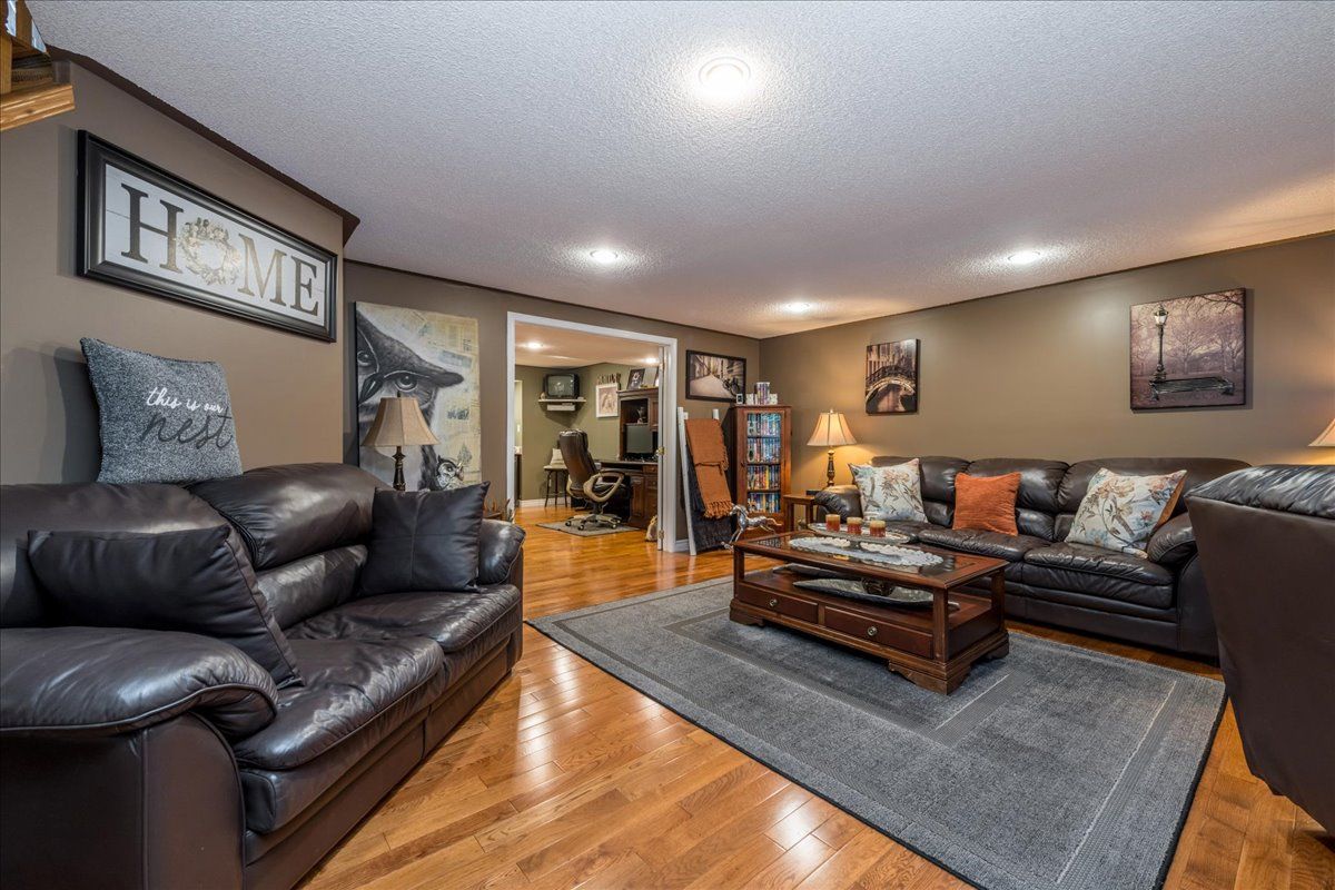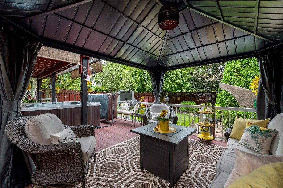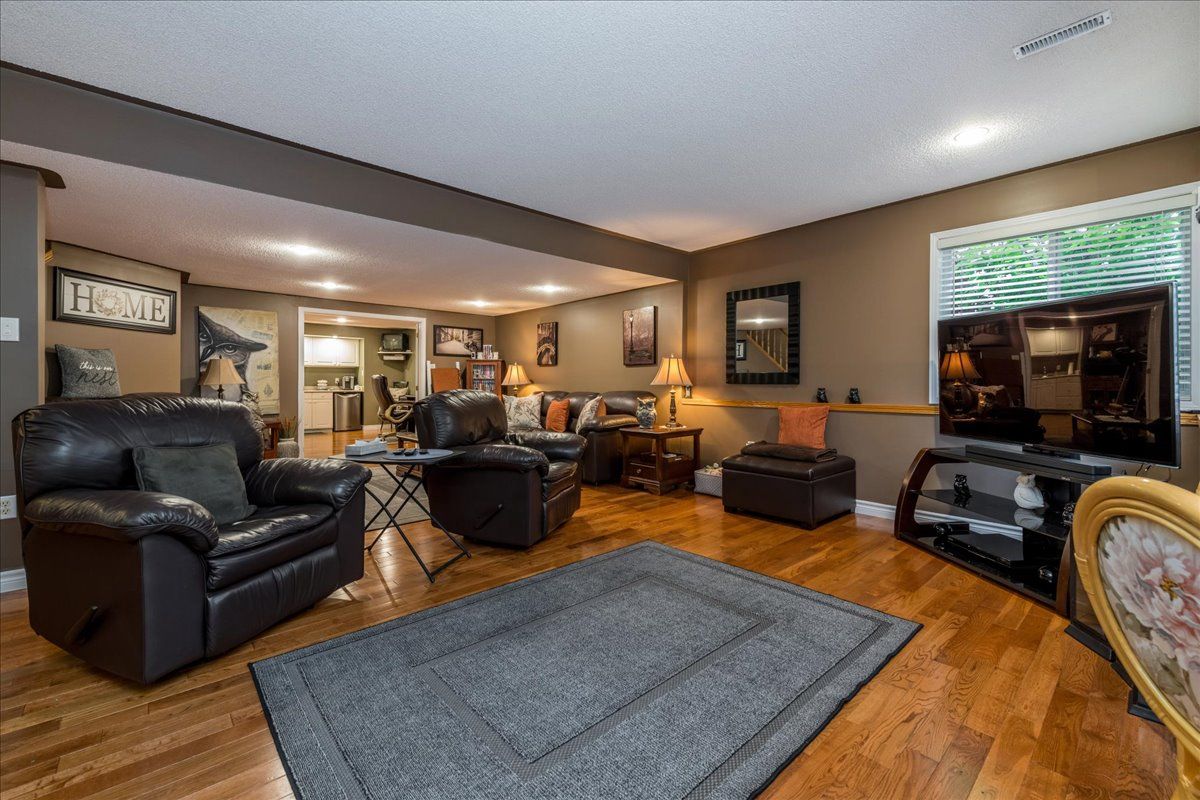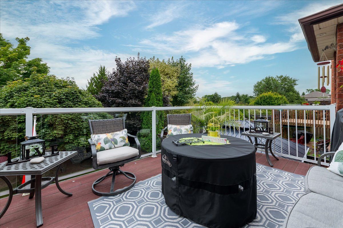Welcome to this stunning residence that truly embodies luxury and comfort situated in prestigious Kingsridge neighbourhood. As you step inside, you'll be greeted by the elegance of hardwood floors that flow seamlessly through the main and basement levels. The kitchen is a chef's delight, featuring stainless steel appliances, granite countertops, and a stylish glass backsplash. The wet bar/coffee station in the basement adds a touch of sophistication, perfect for entertaining or enjoying a cozy morning coffee. The outdoor space is a true oasis, with a Trex deck complete with a sleek glass railing and an awning on the upper deck, providing both style and functionality. The natural gas hookup for your BBQ means no propane tanks. Relax and unwind in your signature hot tub or enjoy the ambiance created by the landscape lighting that enhances the beauty of your surroundings. Practicality meets luxury with upgraded lighting throughout the home, an automatic light in the pantry, and instant hot water at the kitchen sink. The oversized 2-car garage (22x20 feet) offers ample space, complete with cabinets for additional storage. This home has been freshly painted and is move-in ready, offering you a blend of modern amenities and timeless elegance. Whether you're hosting guests or enjoying a quiet evening at home, this property has been designed with your comfort in mind. Don't miss the opportunity to make this exquisite home yours!