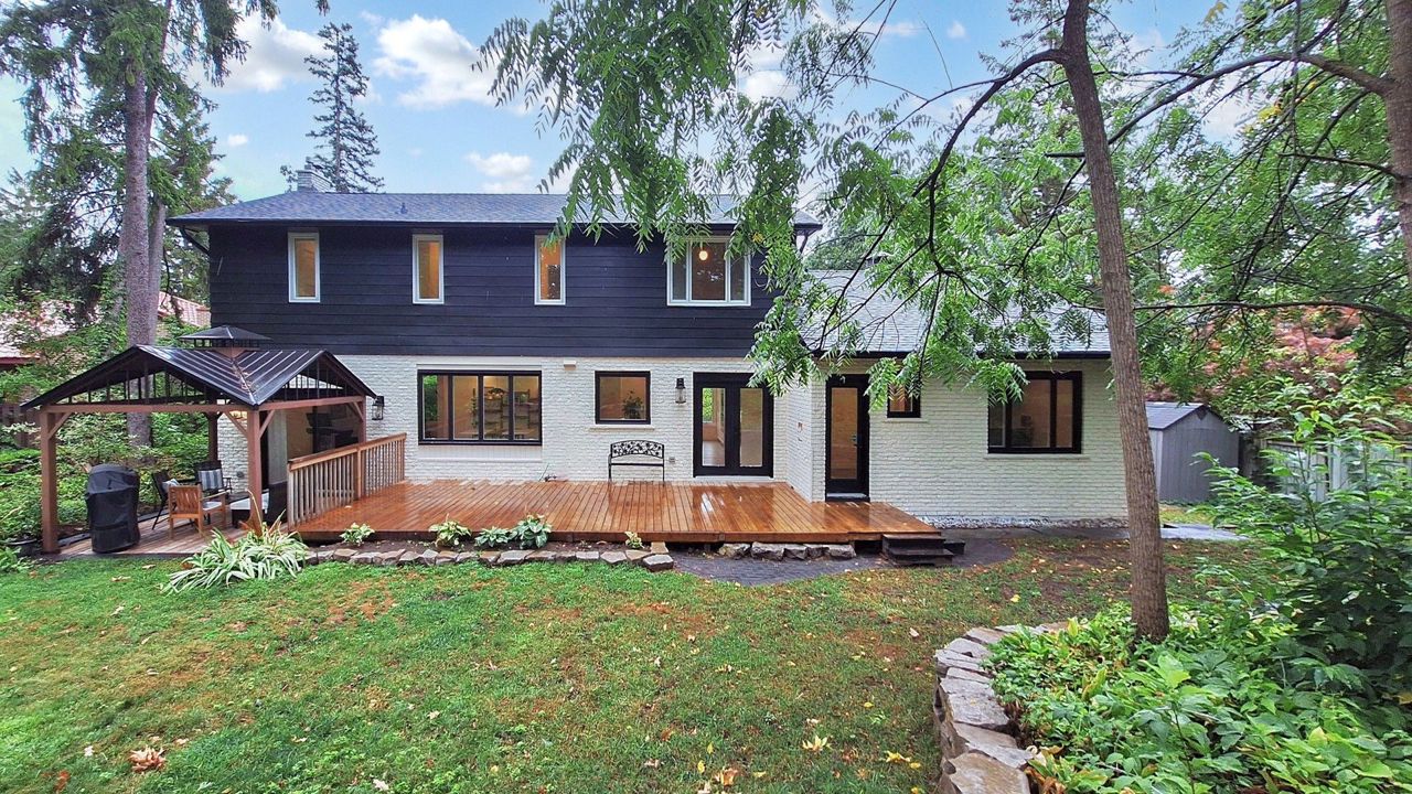 A Rare Offering in Prestigious Sunnidale! Nestled in one of Barrie's most desirable neighborhoods, this fully renovated 3-bedroom+Office, 3-bathroom detached home sits on a private acre treed lot in a quiet cul-de-sac. Backing directly onto Sunnidale Park, it offers unmatched access to nature with beautiful hiking trails, expansive green space, and a pet-friendly community at your doorstep. No expense was spared in the $300,000+ designer renovation by boutique firm Seven Interiors, inspired by the clean lines of Scandinavian design and the timeless warmth of mid-century modern style. The home is anchored by 100-year-old French white oak flooring and custom lighting from Luminaires Authentik, a stone wood burning fireplace and with oversized windows filling every room with natural light. At the heart of the home is a brand-new 400 sq. ft. chefs kitchen, featuring custom oak cabinetry, Calcutta marble countertops, and luxury built-in appliances including a Wolf double oven and JennAir fridge. Thoughtfully curated furnishings from luxury brands such as Rove Concepts and CB2 enhance the interiors, blending seamlessly with the homes elevated aesthetic. The outdoor living space is equally impressive, boasting a large wooden deck, gazebo, and firepit perfect for entertaining or relaxing in complete privacy surrounded by mature trees. Renovated to the highest standard, this Sunnidale retreat is more than just a home its a lifestyle. *No Smoking* Pets May Be Considered*