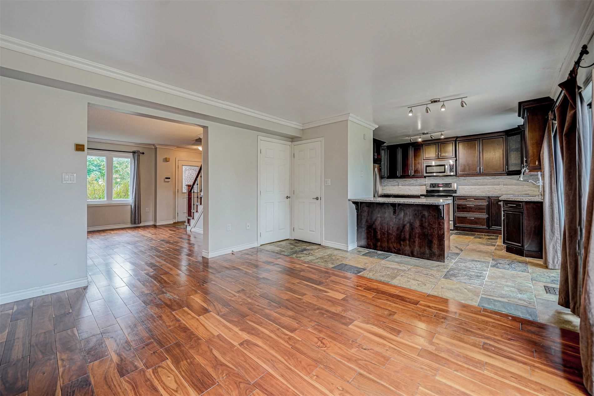 绝对漂亮的两层楼房,位于Barrie的南端,靠近公园,商店和400号公路,有一块巨大的游泳池大小的土地。主楼和二楼均为硬木地板。陶瓷地板,厨房有花岗岩台面,不锈钢电器,皇冠造型。二楼有4间卧室,有吊扇,天窗,加上主卧室有套房和步入式衣柜。完成的地下室有一个完整的浴室,盆灯,层压板,大型娱乐室和燃气壁炉。洗衣机和烘干机(2019年)。所有灯具,窗帘,屋顶(2016年),H.真空系统(2016年),热水箱是租赁的,地下室的沙发和电视包括在内。