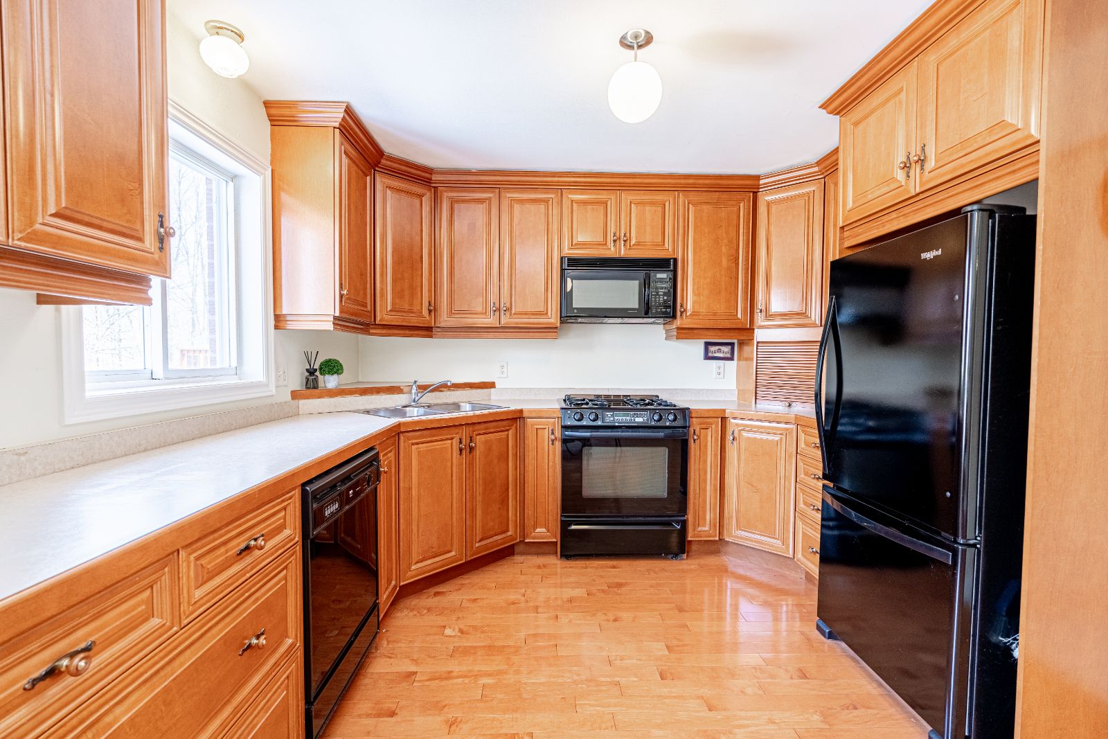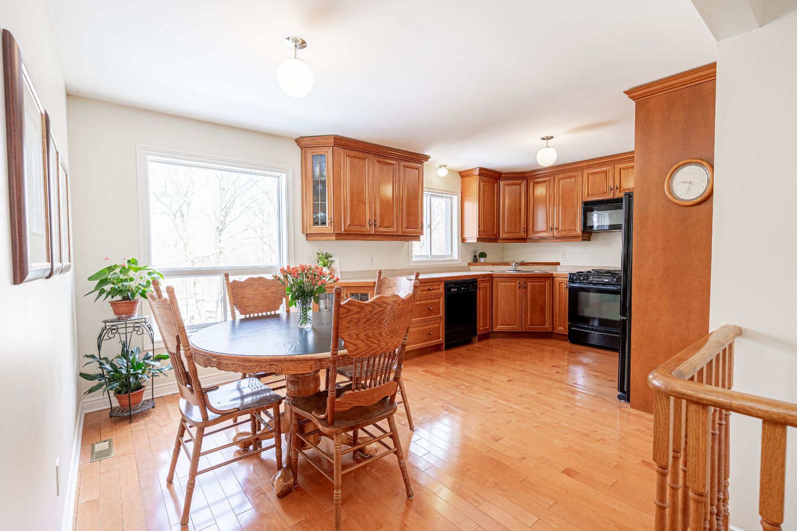 CHARMING BUNGALOW IN BARRIES NORTH END WITH A WALKOUT BASEMENT & FORESTED BACKDROP! Start making memories at this charming bungalow in Barries north end, where comfort, convenience, and a serene backyard setting come together. Nestled on a 50x157 ft. lot backing onto a picturesque forest, this home offers a private outdoor retreat complete with a gazebo and a partially fenced yard. Inside, pride of ownership is evident in every detail, from the warm maple kitchen with ample cabinetry, black appliances including a gas stove, and a bright eat-in area to the sun-filled open-concept dining and living space thats perfect for hosting gatherings. The spacious primary bedroom features a walk-in closet and a 3-piece ensuite with a relaxing jetted tub, while the walkout basement extends the living space with a versatile rec room, an additional bedroom, laundry, and plenty of storage. Located just minutes from Barrie Country Club, East Bayfield Community Centre, and Barrie Sports Dome, with easy access to trails, parks, shopping, and dining on Bayfield Street, this #HomeToStay delivers comfort, convenience, and a tranquil setting all in one!