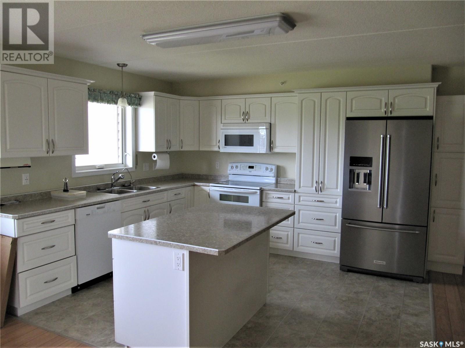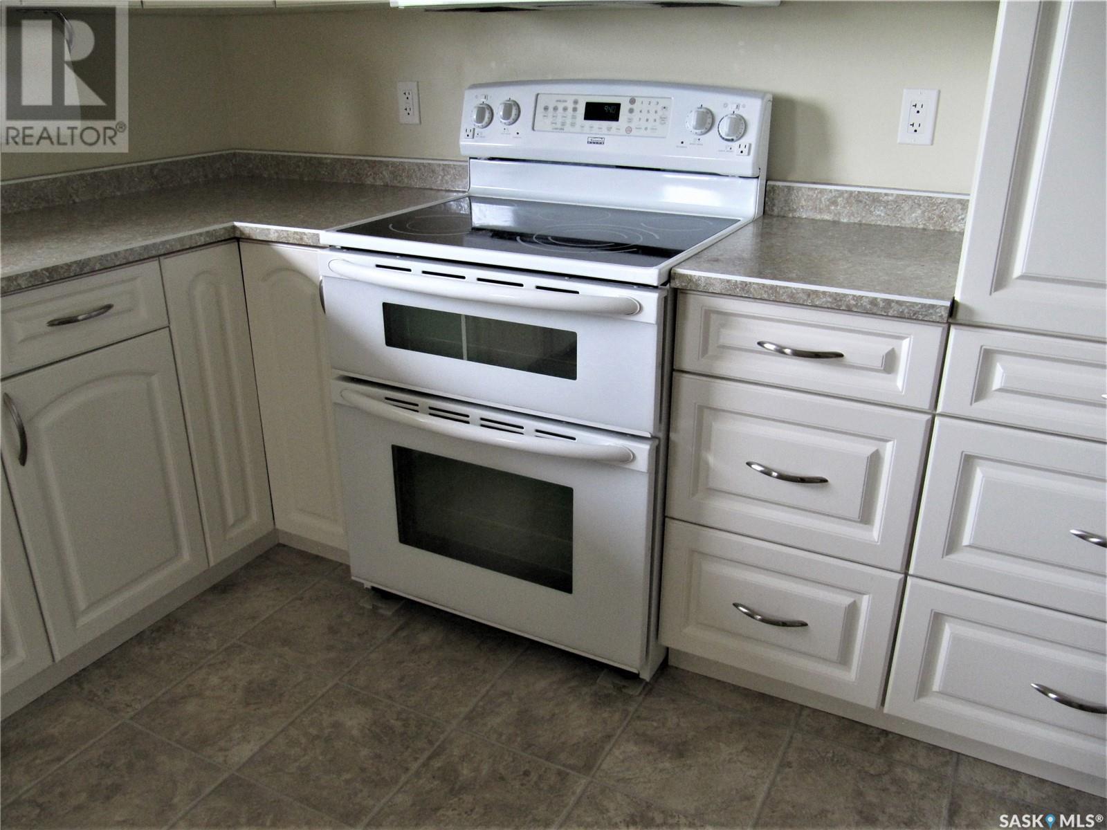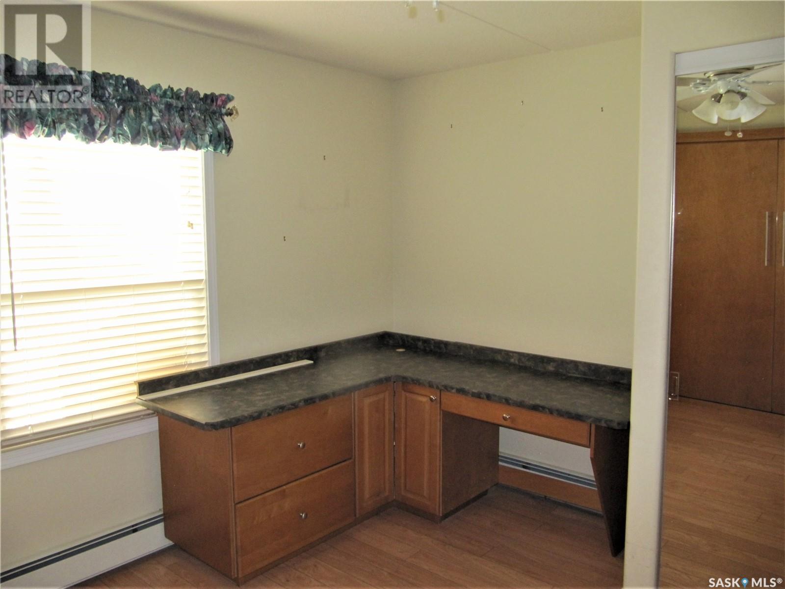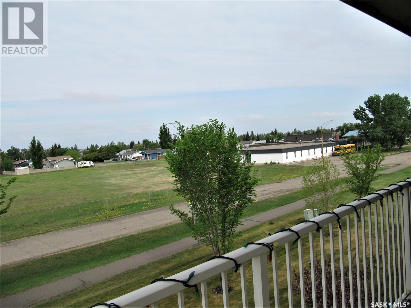 An amazing opportunity to purchase a third level corner unit that has been well managed with a healthy surplus fund in River Valley Estates Condominiums, Battleford, SK. The proud original owners had a hand in designing the layout of their 1208 sq. ft. at the time of the condominium was being built. Starting with a spacious entry into this condo unit that has a large double closet, then moving on into the dining, kitchen, living room area you will appreciate an open flow design throughout. Kitchen having a L shaped layout, loads of cabinets and with an Island, large windows on two sides of the living room space provides warm natural lighting throughout this area. On to the wraparound balcony where you will be preparing meals on the BBQ and enjoying the western sunsets, there are two storage units on either end of the balcony. Entering back into the condo to the front entry the master bedroom is tucked behind the kitchen, having a 3-piece ensuite and large closets. On the other side of the entry is a full bath, a second bedroom with a murphy bed and build in corner desk, laundry and storage are adjacent to the front entry. This unit includes a heated underground parking stall #18 and as well #30 detached garage that can be used for a second vehicle and storage. Give us a call for a view, this one will not last long. (id:22211)