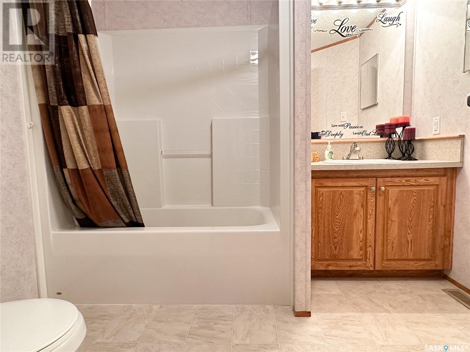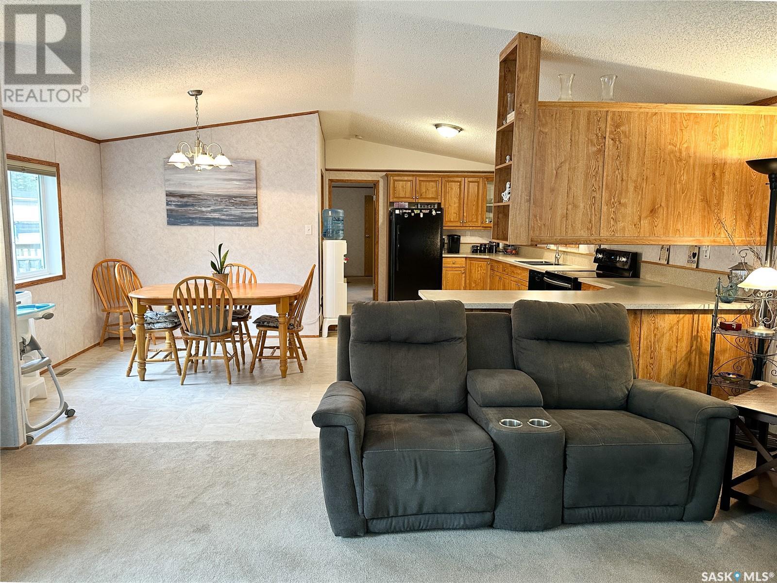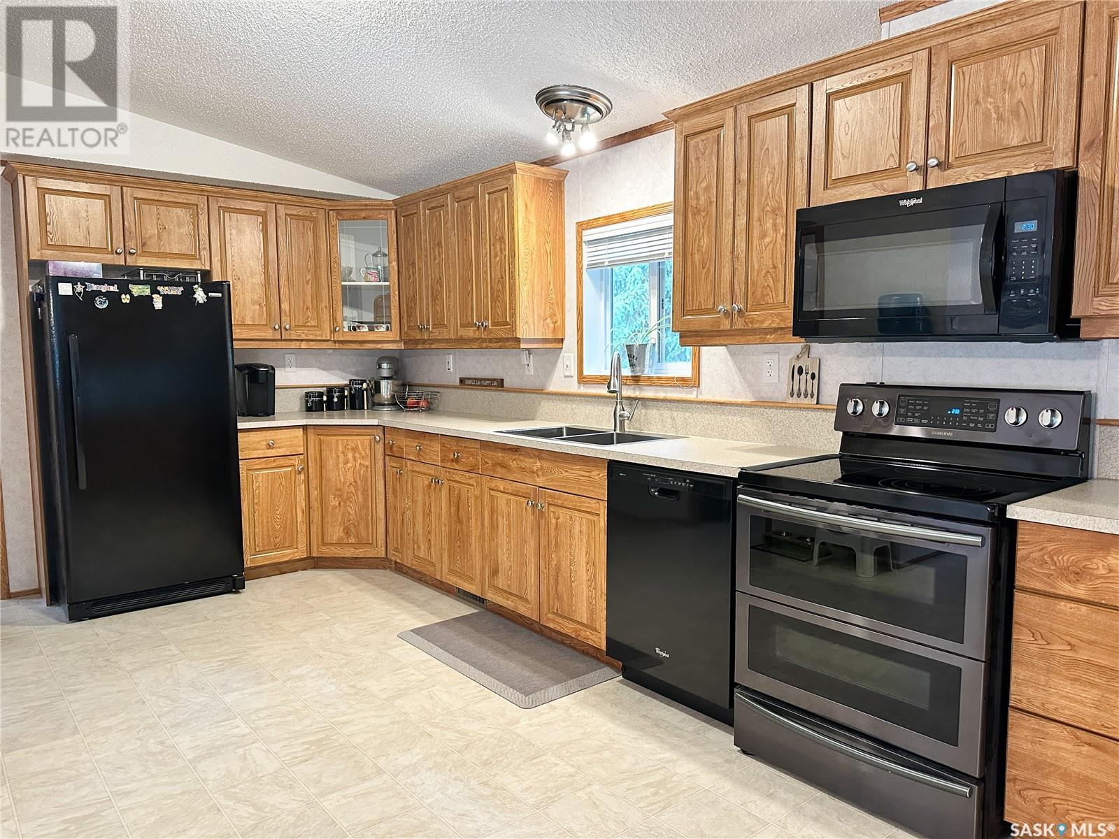 Immerse yourself in this meticulously maintained home, offering 1,520 square feet of living space featuring vaulted ceilings and an open concept layout. The backyard is a true oasis. On the north side, you'll find 3 bedrooms, while the master bedroom with a walk-in closet and 4-piece en-suite ensures maximum privacy on the south side. Enjoy the convenience of oak cupboards and new appliances including a fridge, stove, washer, dryer, and microwave hood fan. There is also the option to connect a gas range as there is already a connection for it behind the current electric range. As you step inside, the living room with vaulted ceilings and ample natural light greets you. To the right, discover the 3 bedrooms and main bathroom, while the left side leads seamlessly into the living room, dining room, and kitchen. The spacious master bedroom, featuring a 4'3" x 5' walk-in closet, is located off the kitchen. Adjacent to the kitchen, you'll find the laundry room/utility room and a second exit leading to a 12' x 12' deck covered by trees for privacy. The backyard boasts two large sheds and an additional parking spot. The home is equipped with a breaker for a hot tub, which will remain with the property. The shingles were just replace in July of 2022! Ample parking is available at the front with a double car gravel driveway, along with a gravel driveway running alongside the entire side of the house for RV parking. The fully fenced yard is perfect for outdoor enjoyment. Don't miss the opportunity - call today to book your private showing! (id:22211)