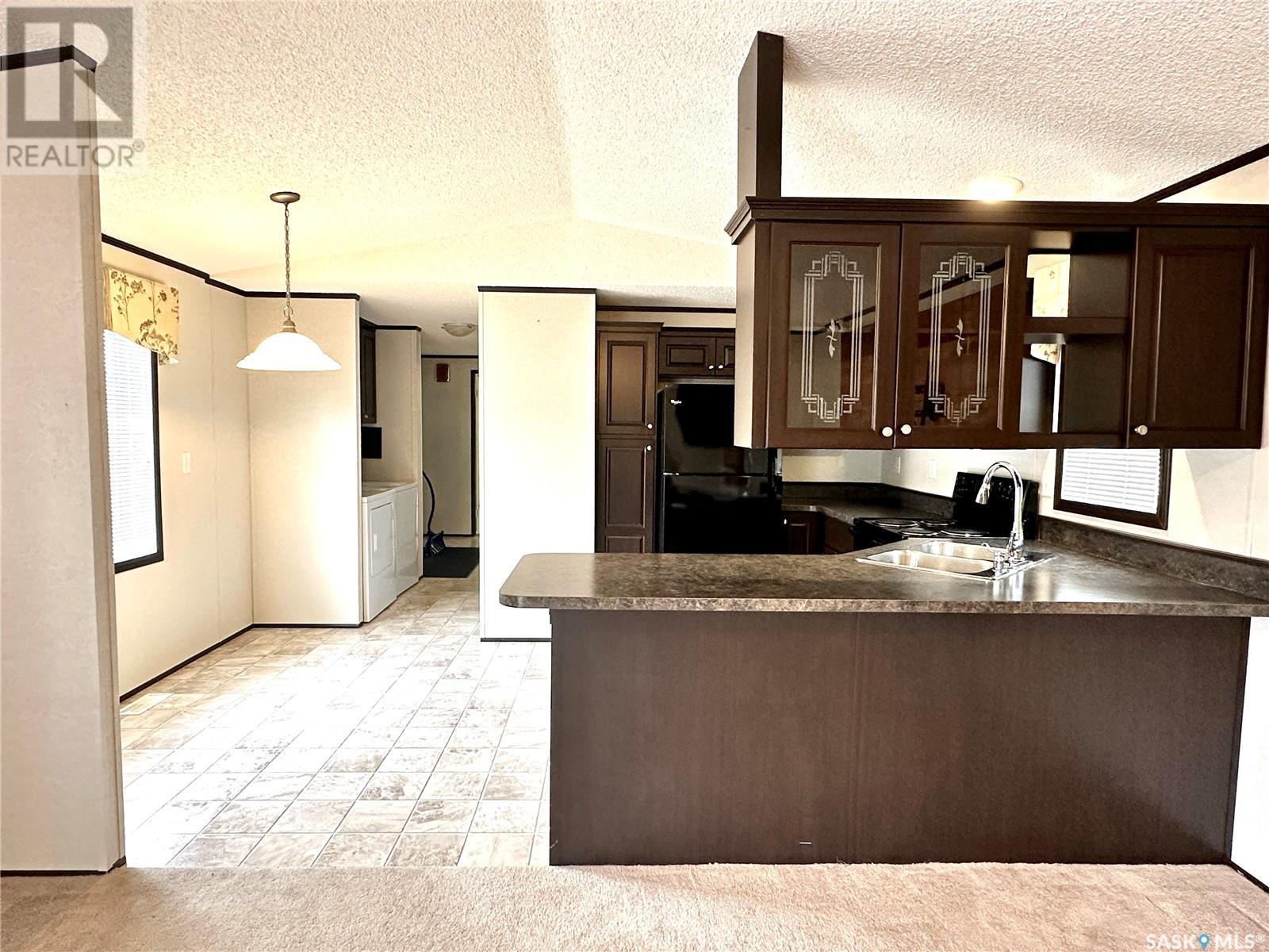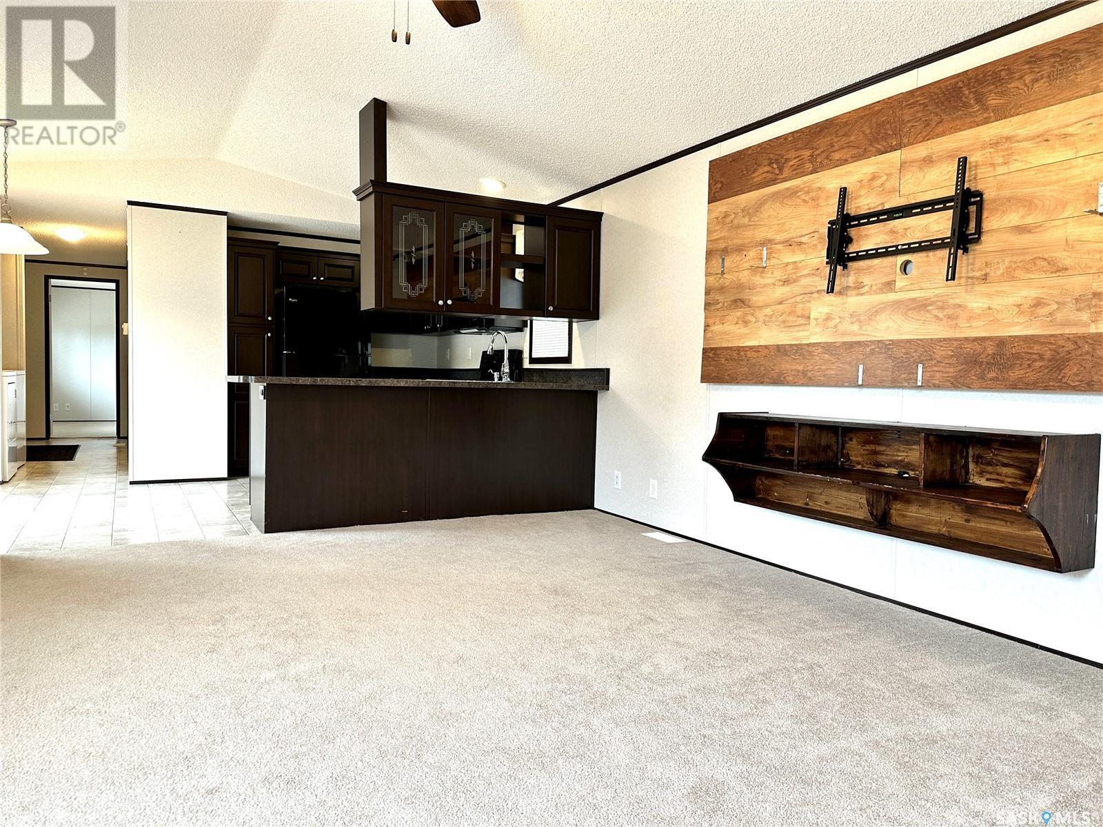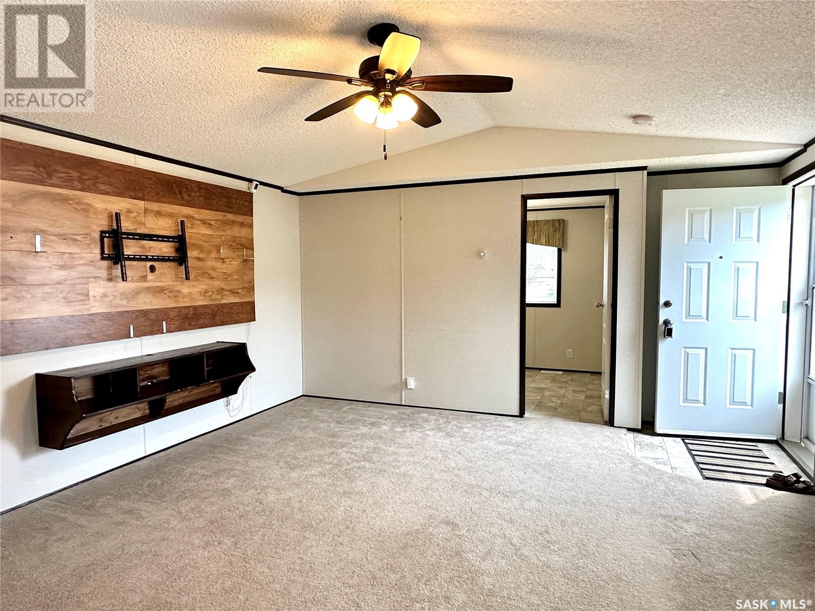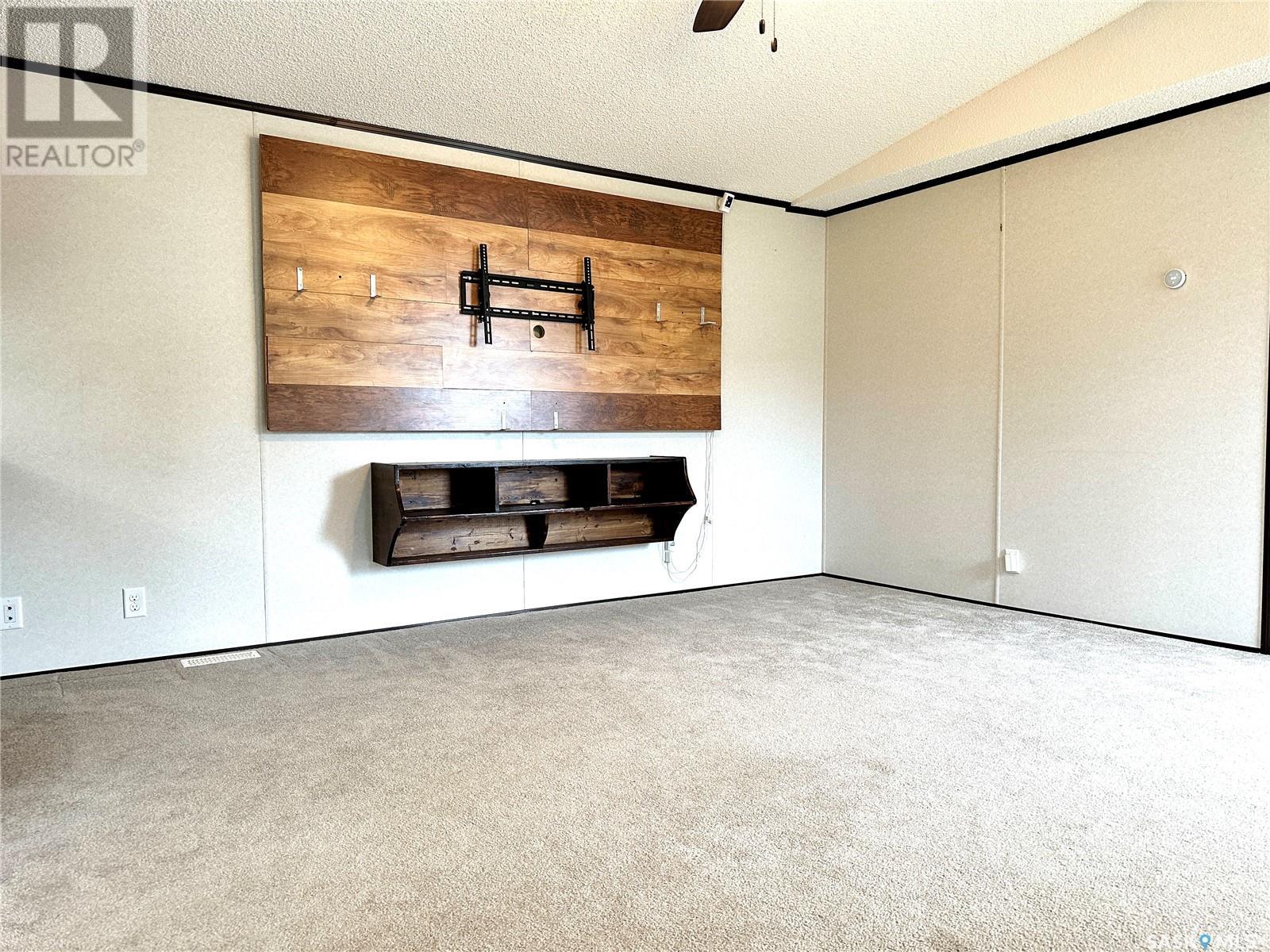 Affordable living in the Town of Battleford!! This 2011 mobile home has been cared for by the same owner from day one! It has a total of 3 bedrooms and one bathroom which comes complete with a spa like shower head. The kitchen and living room are open concept to each other and all appliances will remain. The living room has a gorgeous wooden backdrop for your TV, complete with a TV mount and a floating shelf for all of your entertainment needs. The private yard is mostly fenced and has a deck off the back door. There is room for 2 parking spots out front, but if you need more there could easily be another space off the back alley. This affordable Battleford property could accommodate an immediate possession if needed! Call today for your personal tour. (id:22211)