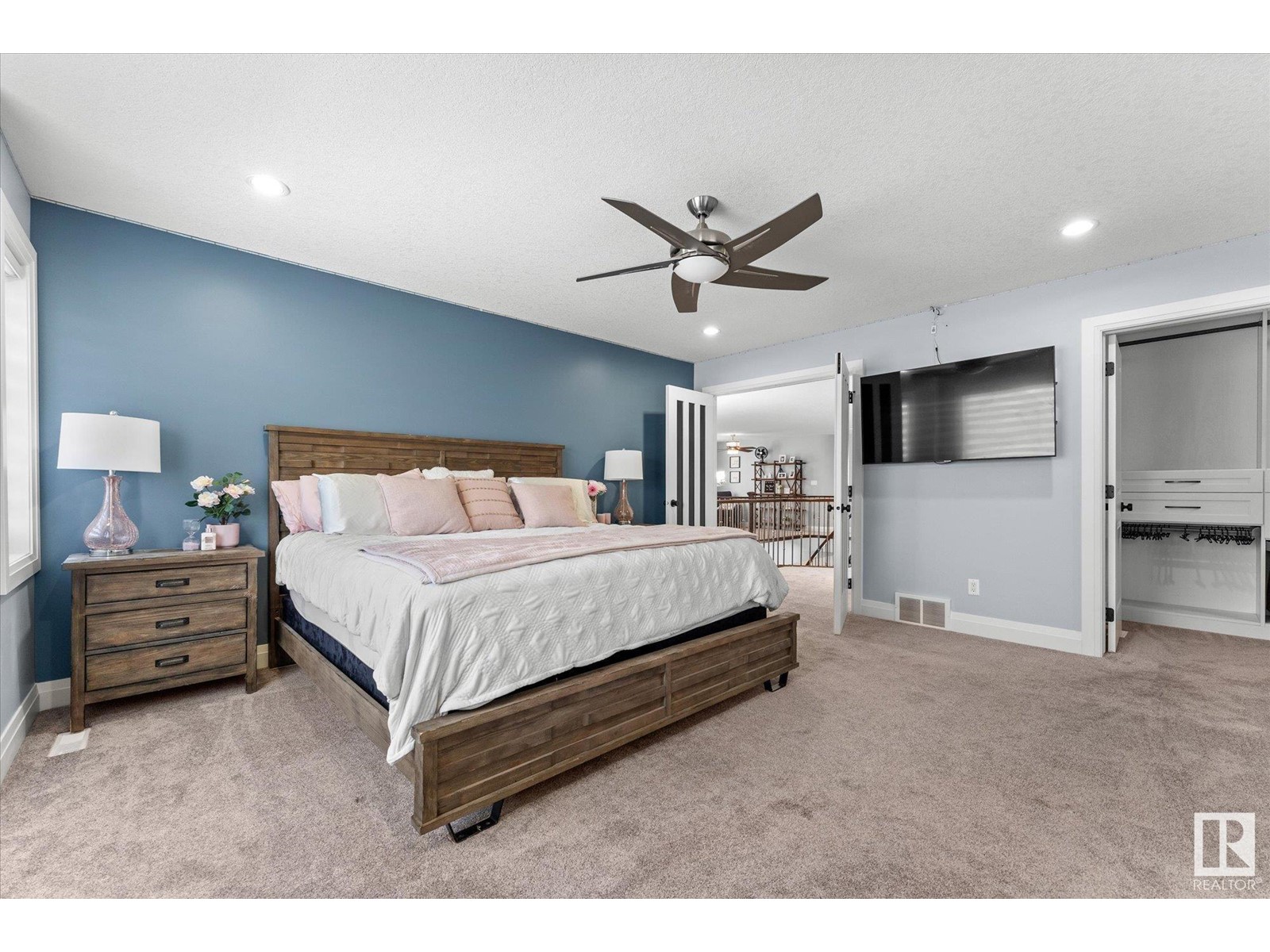 Imagine a beautiful house located on a peaceful street in Beaumont, Alberta. This 3700 sq ft home boasts 6 bdrms and 6 bathrms, offering ample space for a large family or guests. The exterior features a TRIPLE CAR GARAGE, providing plenty of room for vehicles. Upon entering, you're greeted by a grand staircase, leading to the upper level. The main floor presents a cozy living space w/ a fireplace, perfect for gathering and relaxation. The large kitchen is a chef's dream, offering ample counter space and modern appliances. The property features 2 MASTER SUITES, each complete w/ its own bathroom, offering luxurious comfort and privacy. The walkout basement provides additional living space & opens up to the backyard, offering versatility and potential for entertainment or relaxation. The entire house has been freshly painted, exuding a clean and vibrant ambiance. Enjoy the comfort of air conditioning, ensuring a cool & pleasant environment. Additionally, the garage is heated, providing convience & comfort. (id:22211)