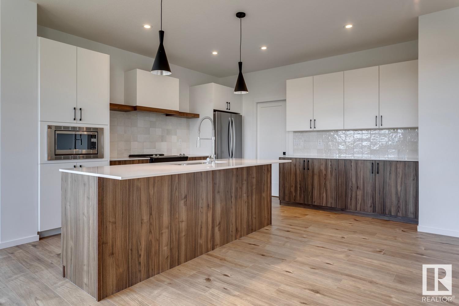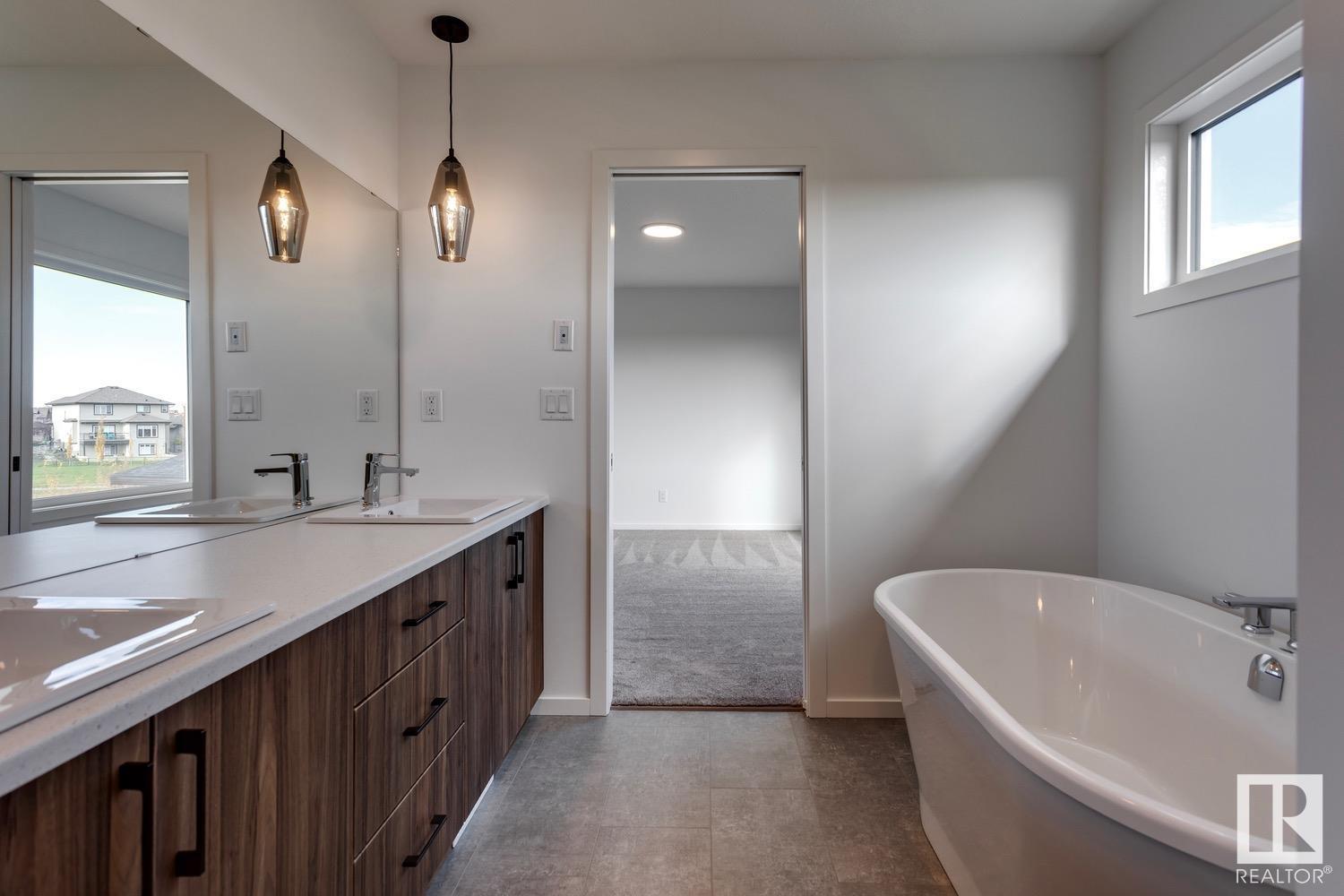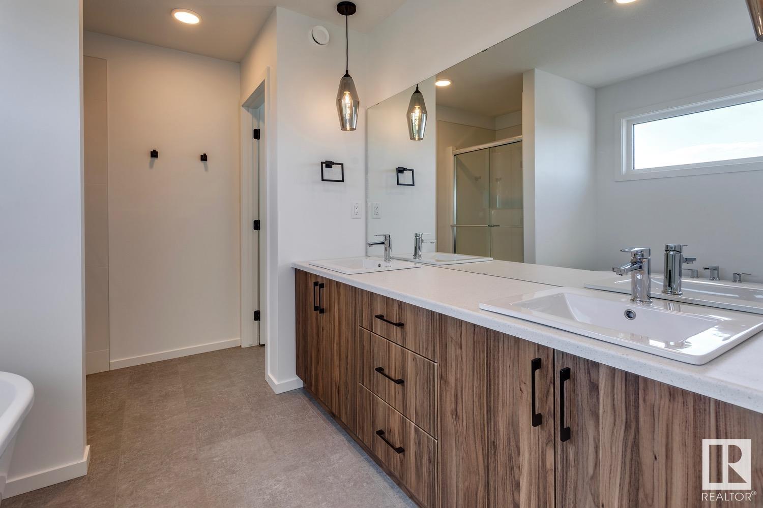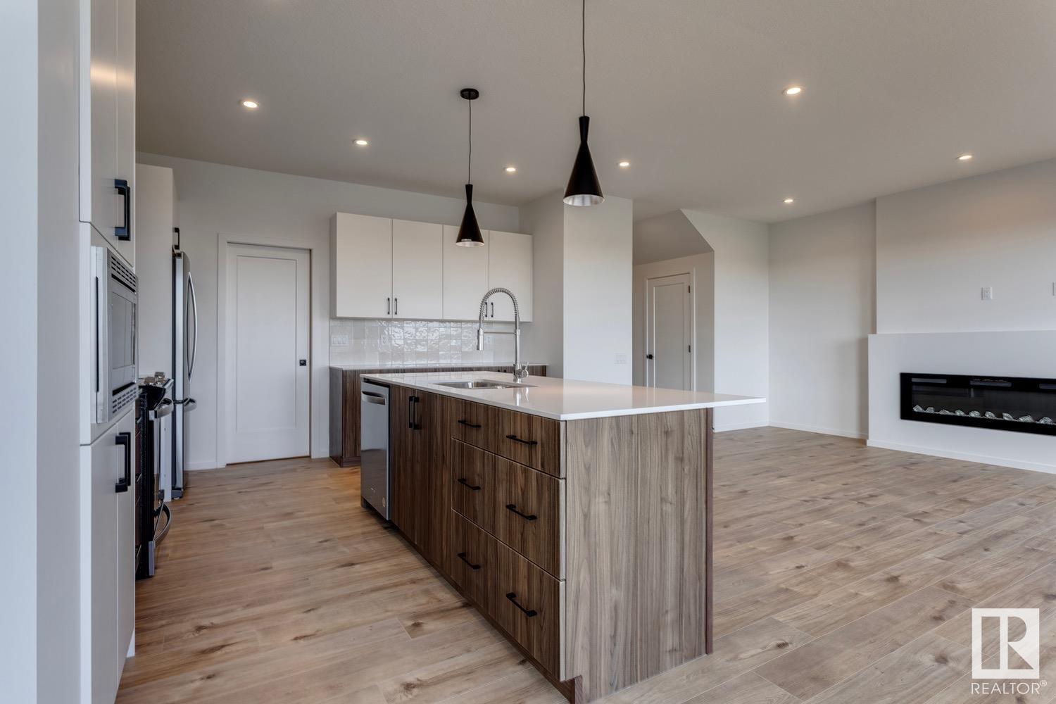 Situated on a HUGE PIE SHAPED LOT sits this stunning, brand new 2 storey crafted by Urbanage Homes. This home is the perfect home for the growing family offering 3 bedrooms, bonus room and den. The main level finishes have been tastefully curated to bring a seamless design with beautiful flooring stretching the entire main level, upgraded plumbing and lighting. The main floor includes a huge living room with an electric fireplace, a nicely situated dining area that sits off the stunning kitchen that features a butlers walkthough pantry, comes fully equipped with stainless steel appliances and complimented with quartz countertops. The upper level is where you will find the generous sized bonus room, a den perfect for the home office and 3 spacious bedrooms. The primary bedroom is absolutely stunning and features large windows, a walk-in closet and a spa-like ensuite fully equipped with a free standing tub, custom shower and his and her sinks. The home includes spacious garage and sits in a quiet CUL-DE-SAC (id:22211)