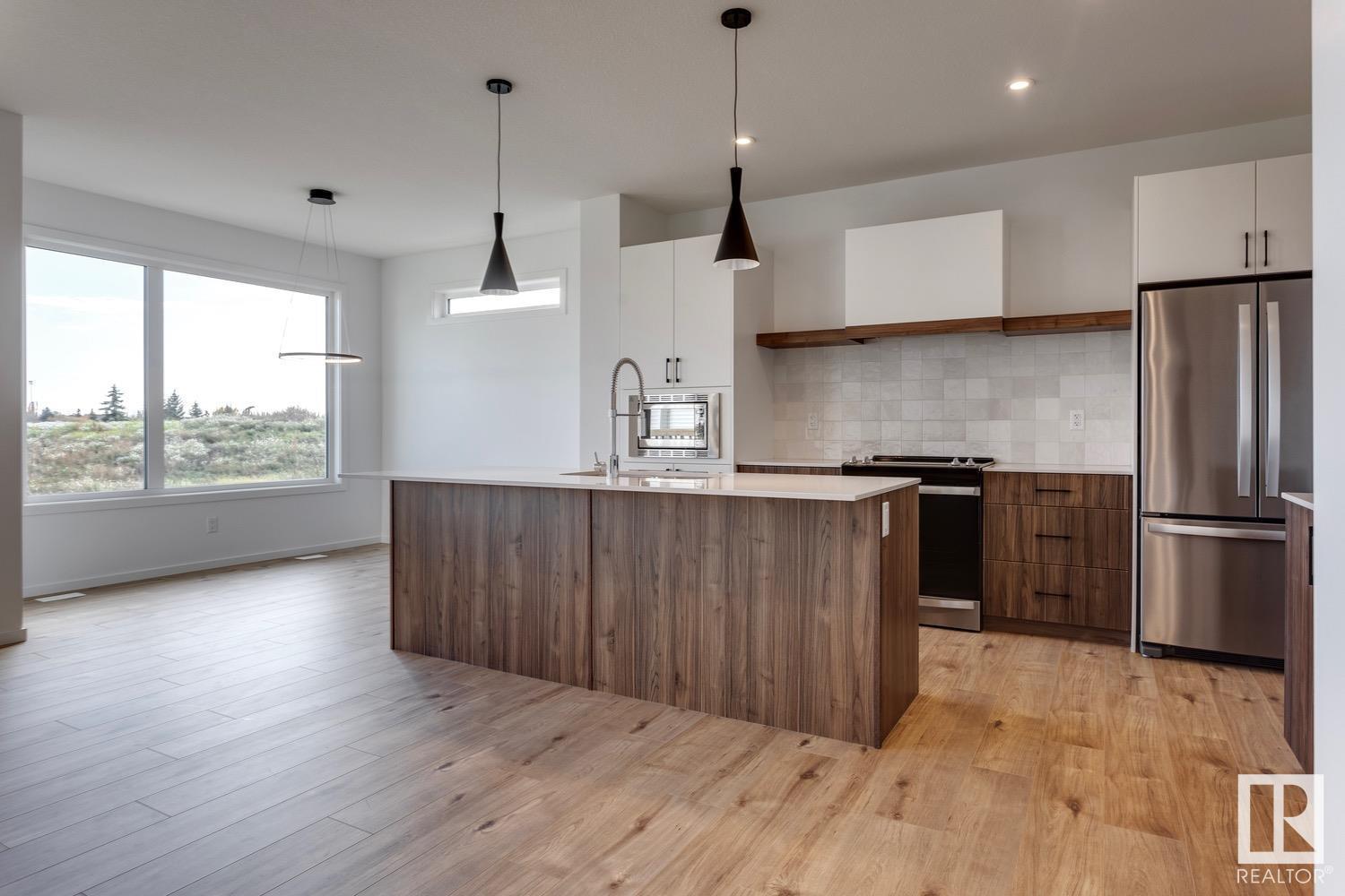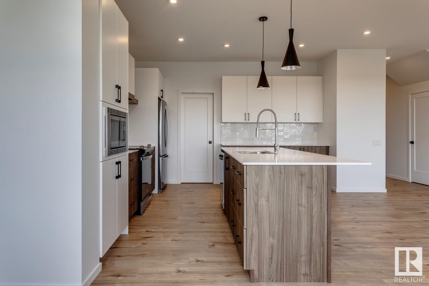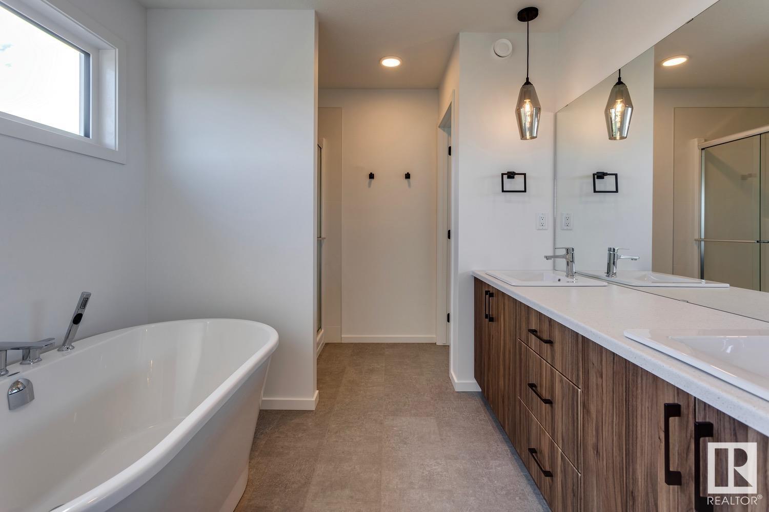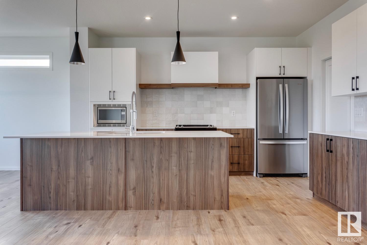 Situated on a HUGE PIE SHAPED LOT sits this stunning, brand new 2 storey crafted by Urbanage Homes. This home is the perfect home for the growing family offering 3 bedrooms, bonus room and den. The main level finishes have been tastefully curated to bring a seamless design with beautiful flooring stretching the entire main level, upgraded plumbing and lighting. The main floor includes a huge living room with an electric fireplace, a nicely situated dining area that sits off the stunning kitchen that features a butlers walkthough pantry, comes fully equipped with stainless steel appliances and complimented with quartz countertops. The upper level is where you will find the generous sized bonus room, a den perfect for the home office and 3 spacious bedrooms. The primary bedroom is absolutely stunning and features large windows, a walk-in closet and a spa-like ensuite fully equipped with a free standing tub, custom shower and his and her sinks. The home includes spacious garage and sits in a quiet CUL-DE-SAC (id:22211)