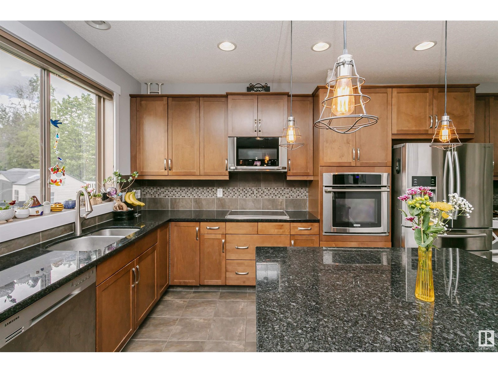 Introducing a perfect two-storey home! This open concept gem spans 2458 sq ft & offers a comfortable living space. Covered front porch. Private front office w/ huge window. The kitchen showcases granite counters, huge island & a large pantry, catering to your culinary needs. With 3 bedrooms & a bonus rm upstairs, everyone has their own retreat. The primary bedroom boasts luxury w/ a double-sided gas fireplace, a soaker tub & a huge walk-in closet, complete w/ built-in shelves. Bedrooms have walk-in closets, providing ample storage. Every floor features a gas fireplace! With the laundry room located upstairs, this chore becomes a breeze. The fully dev. basement features a rec room, 2 bdrms, & a 4 pce bathroom. Stay comfortable year-round w/ air conditioning & heated double garage. Exposed aggregate driveway. Situated in a cul-de-sac on a huge south-facing pie lot, the large back deck is perfect for enjoying outdoor entertaining. Sprinkler system. This home is a true treasure awaiting its lucky owner! (id:22211)