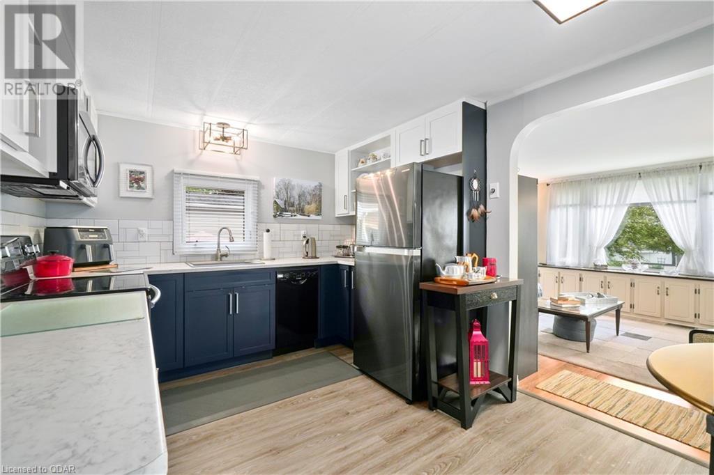 Spectacular 2 bed mobile completely renovated with insulation and drywall. Over 1200 sq ft of living space this mobile feels like a home. Huge foyer and family room, plus living room, custom eat in kitchen and tones of storage. Rebuilt in 2019 with new appliances. Fenced in the yard with 2 sheds, and a gazebo. Lot fees only $200.00 per month including water/sewage. The listing price includes the land ownership share. Kenron has a licensed community center and plenty of social activities. Belong to this safe and impeccably well-maintained park and live life to the fullest. (id:22211)
