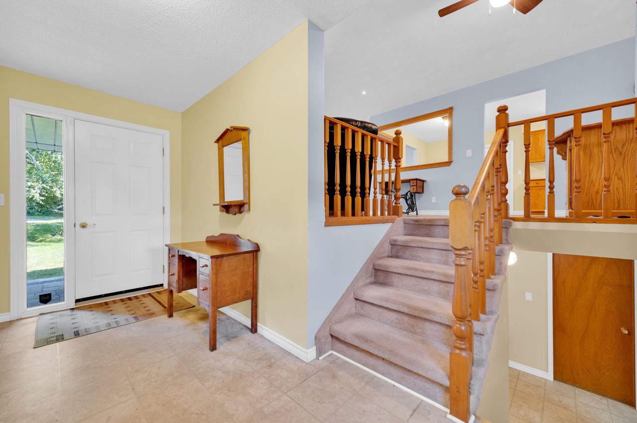 Spacious 3 Bedroom family home in a sought-after area on a 1/2 acre lot just North of 401. Municipal services, nat. gas heat & C/A. Lots of recent updates inside and out. Including flooring, 4-season sunroom, doors, windows, shingles, vinyl siding, soffit & fascia, eavestroughs, front porch, back deck & alarm system. Nat. gas fireplace, HWT & BBQ line. Oak kitchen with pass-through, nat. gas stove & hardwood flooring with garden doors to the 4-season sunroom encased in windows with direct access to the BBQ and backyard. A perfect space for entertaining. The main bath has a jacuzzi tub. The basement consists of a den & family room with nat. gas fireplace plus a large unfinished laundry/utility area with a roughed-in bath and ample space to create another bedroom. Enjoy the massive partially fenced backyard from the rear deck with its own permanent gazebo. Fruit trees, horseshoe pits, and space for a pool. Great location in a sought-out established residential neighborhood.Double garage with inside entry and lots of additional parking. Minutes from town but the lot has a true country feel. 401 access, Quinte Mall, and many amenities are all right there. Easy to show. Quick closing is possible.