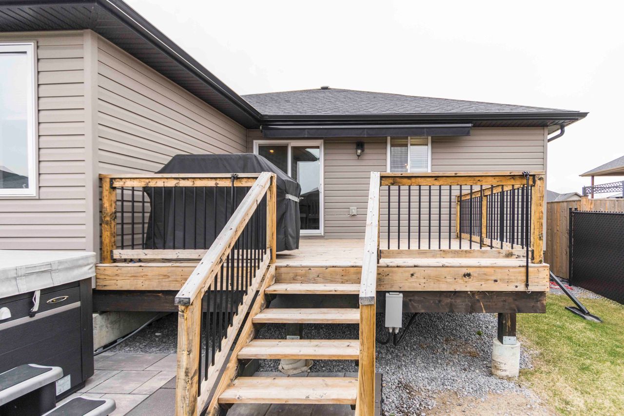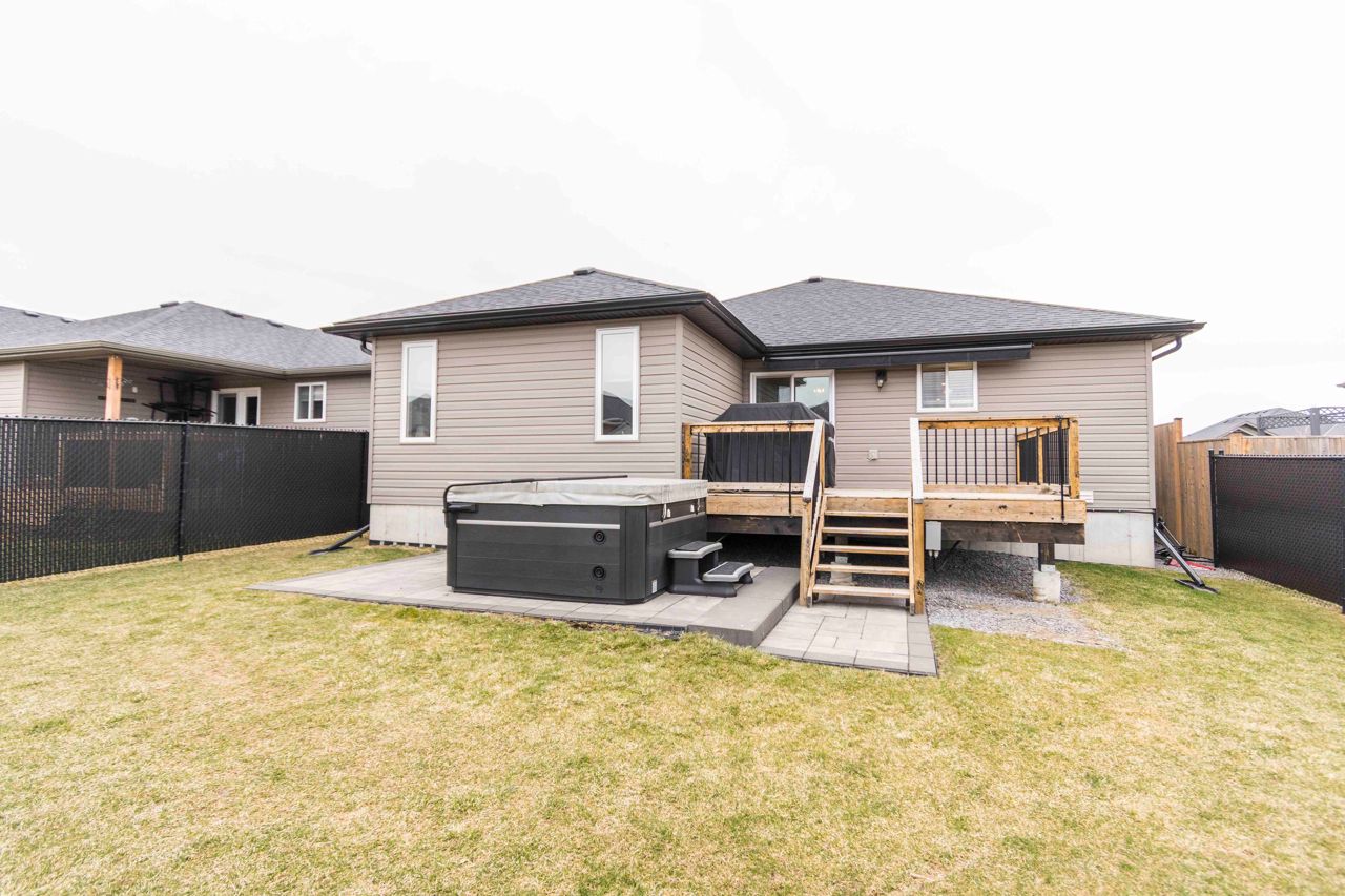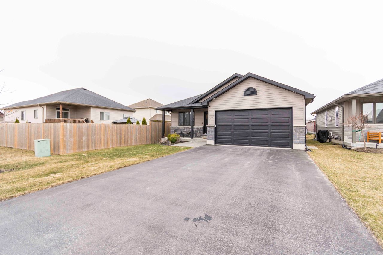 Turn key affordable bungalow in the very desirable Potters Creek Development. Fully finished up and down with 4 bdrms, and 3 full baths this open concept home is the one you have been waiting for. Bright kitchen boasts cabinets to the ceiling with crown moulding, quartz counter tops, soft close doors, pot drawers, backsplash, island with over hang for bar stools, additional beverage centre/built-in wine rack, plus corner pantry! Other popular features include carpet free main floor, primary bedroom with walk-in closet, private ensuite with glass and tile shower and quartz counter tops. Lower level complete with spacious rec room, 2 additional bedrooms (one requires door has a walk in closet), full bath, and laundry area. Outside you will find paved driveway, with ample parking, interlocking front walkway, covered front porch, fully fenced rear yard with a shed, deck, wired for hot tub and interlocking pad. Attached double car garage with inside entry. Economical forced air gas, central air, HRV, on demand water heater, roughed in central vac. Perfectly located 10 minutes or less to CFB Trenton, 401, Loyalist College, Quinte Mall. Walking distance to schools, parks and pickleball. Add this to your list today! Check out the video walk through for more details!
