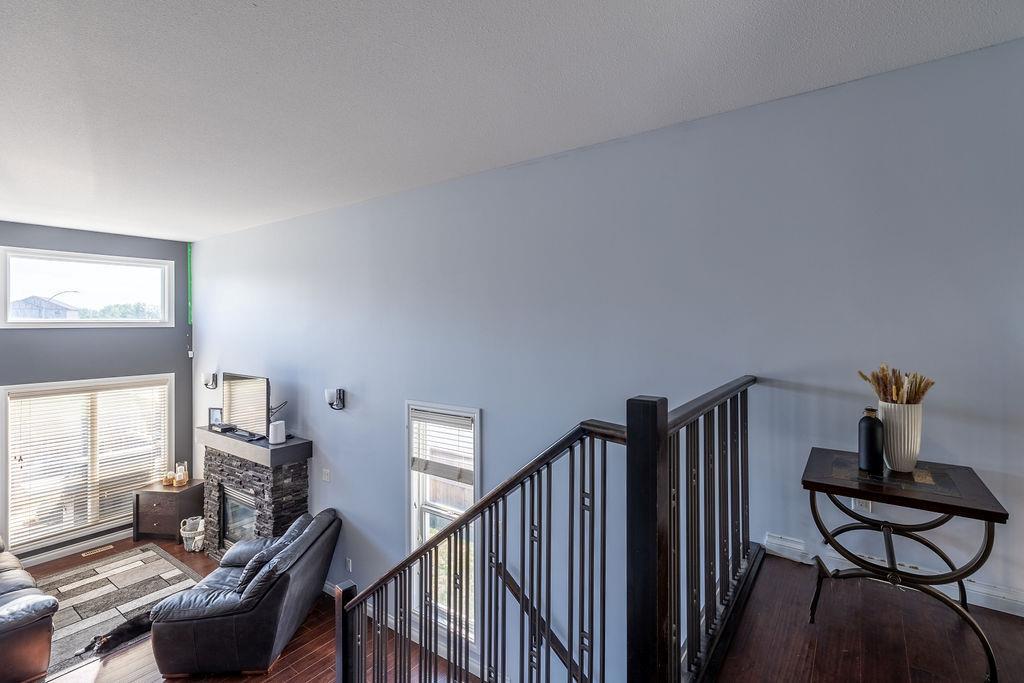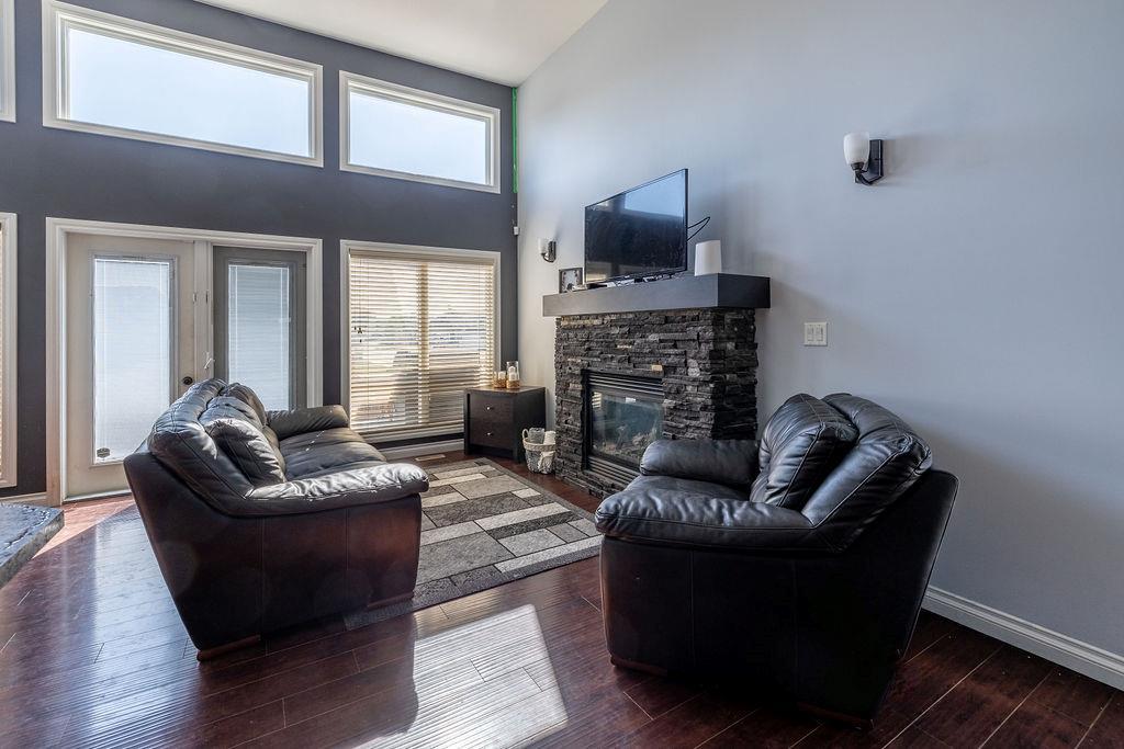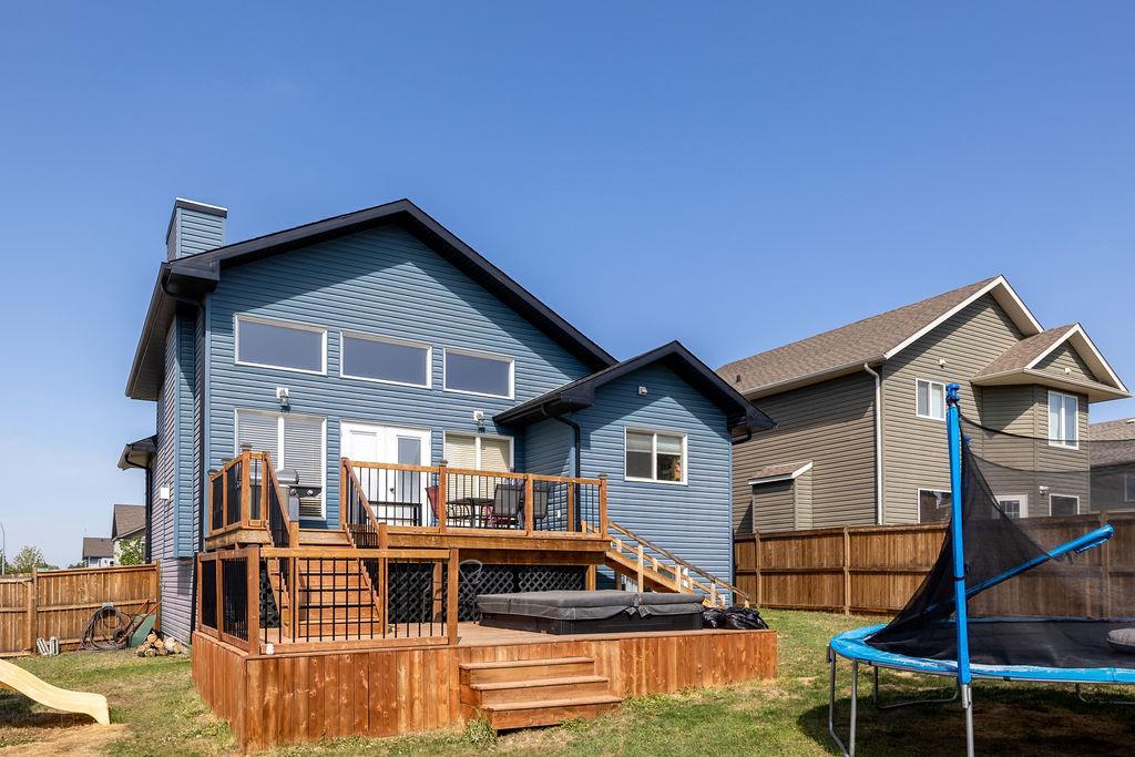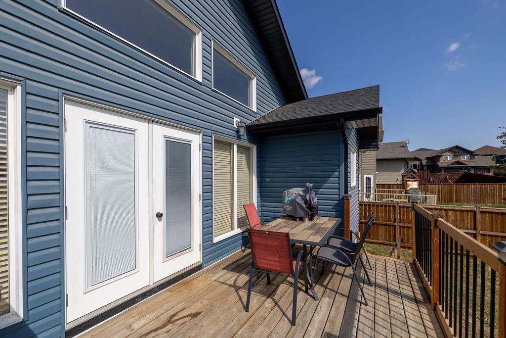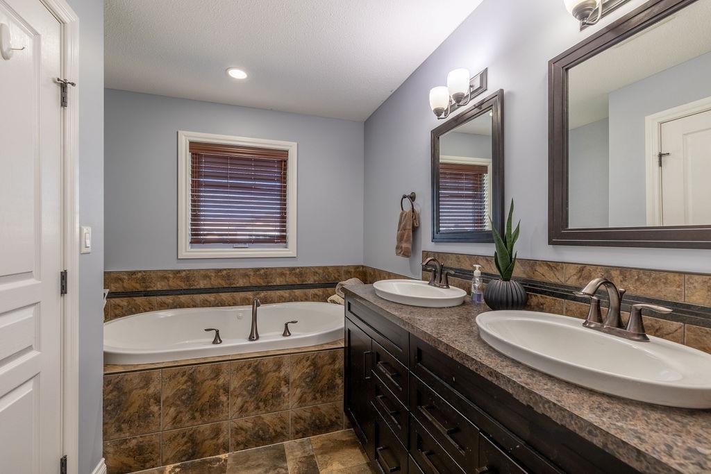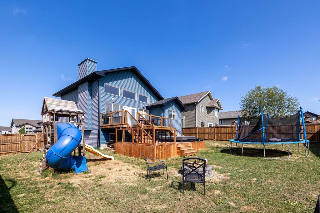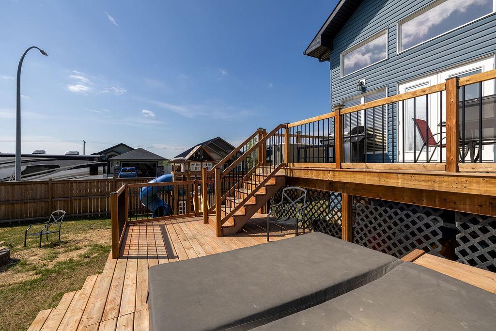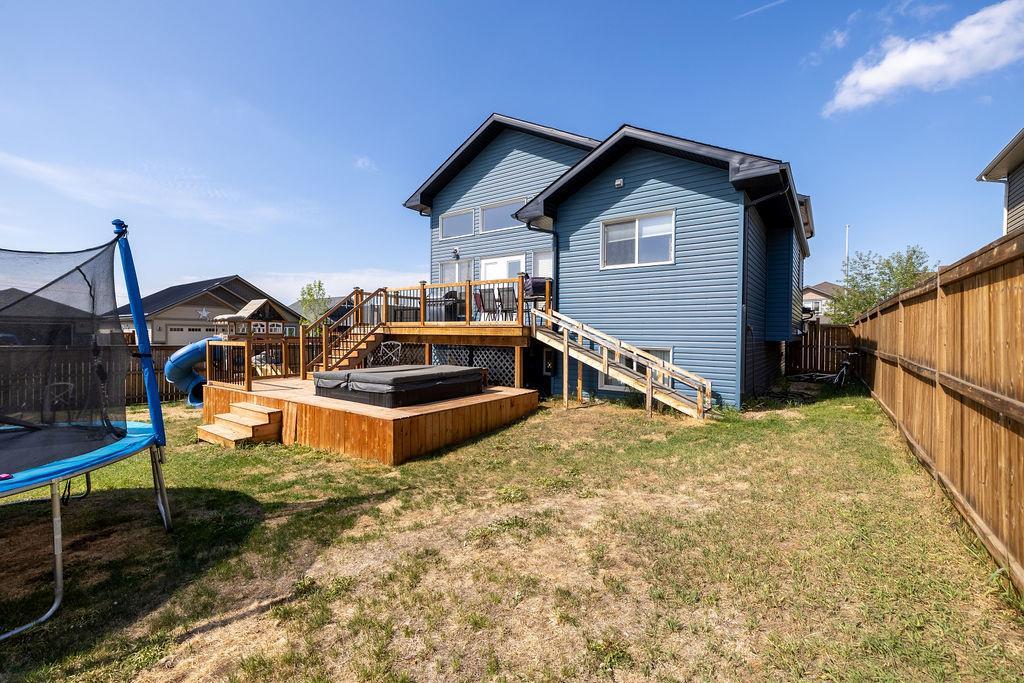 FULLY DEVELOPED 4 BDRM, 3 BATH MODIFIED BI-LEVEL ~ CORNER LOT ~ LANDSCAPED BACKYARD WITH ROOM FOR BOAT OR RV ~ HEATED DOUBLE ATTACHED GARAGE ~ Pride of ownership is evident in this well cared for home ~ Tile foyer that opens to the upper level welcomes you ~ Open concept main floor layout complemented by soaring vaulted ceilings offers a feeling of spaciousness ~ Huge windows with custom wood blinds flood the home with sunlight ~ The living room features a modern fireplace and large windows offering natural light ~ The kitchen offers a functional layout with plenty of dark stained maple cabinets and counter space including an island with an eating bar, full tile backsplash ~ The dining room offers tons of space to host a large family gathering and has garden door access to the tiered deck with a hot tub and BBQ area with a gas line ~ 2 main floor bedrooms are both a generous size and are separated by the 4 piece main bath ~ Open staircase leads to a loft area overlooking the lower level, this is a great place for a home office or reading area ~ the private master bedroom located on this level has a large walk in closet, a 4 piece ensuite with custom tiled shower and jacuzzi soaker tub and more than enough space for a king size bed plus multiple pieces of furniture ~ The newly fully finished basement with large above grade windows features a great entertainment area or TV space with built in surround sound, a 4th bedroom, 3 piece bathroom and laundry ~ Other great features and upgrades in this well cared for home include; Central air conditioning, central vacuum, roughed in-in floor heating, water softener, all walls and trim freshly painted ~ The backyard is fully fenced and landscaped, a lower deck with a hot tub (included with the home sale), children’s play structure will stay if wanted ~ The home backs onto green space ~ The heated 21 x 23 attached garage is insulated & drywalled, built in cabinets ~ Excellent location; close to multiple parks, playgrounds, walking trails and schools with easy access to shopping and the highway. (id:22211)